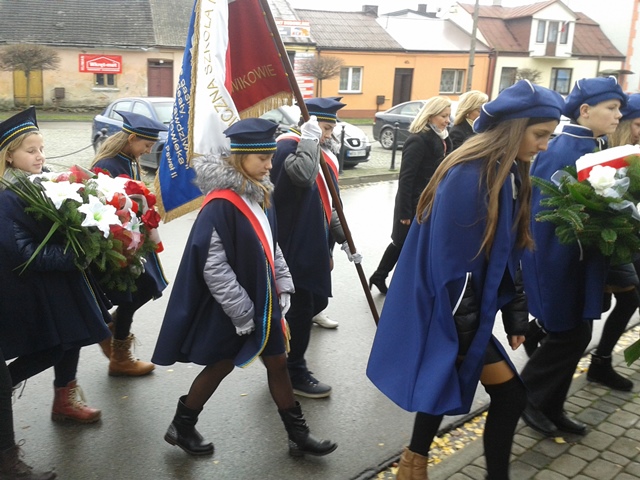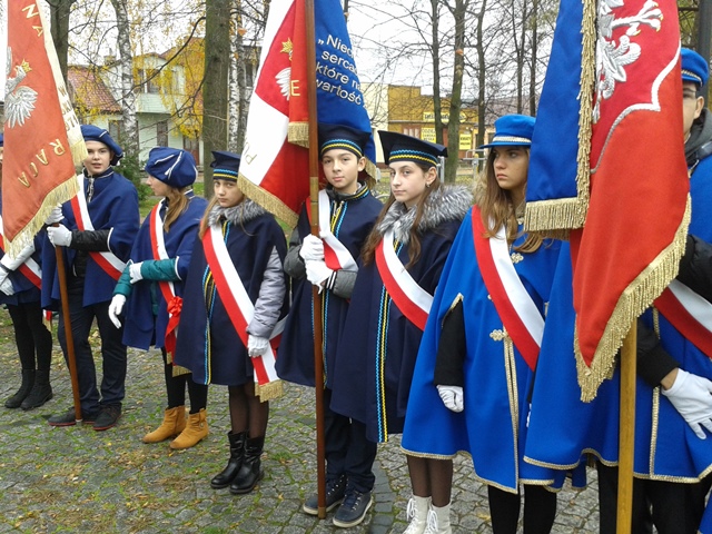 11 listopada poczet sztandarowy i delegacja uczniów naszej szkoły pod opieką pani dyrektor M. Sobień oraz pani E. Skrzypczyńskiej - Hernik uczestniczyli w Gminnych Obchodach Święta Niepodległości. Uroczystości w kościele parafialnym w Jedlińsku rozpoczął program artystyczny "Pamiętamy o bohaterach" przygotowany przez uczniów PSP im. T. Kościuszki w Jedlińsku. Po mszy św. w intencji Ojczyzny uczestnicy uroczystości złożyli wieńce i zapalili znicze pod pomnikiem ku czci pomordowanych w czasie okupacji hitlerowskiej. Następnie wszyscy obecni udali się pod pomnik ku czci żołnierzy AK poległych i pomordowanych w latach 1939-1956, gdzie złożono wieńce. Obchody w Jedlińsku zakończył koncert orkiestry dętej Ochotniczej Straży Pożarnej w Jedlińsku.