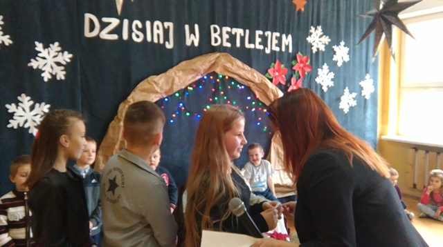 Dzieci w przepięknych strojach występowały przed swoimi rodzicami oraz uczniami, nauczycielami i pracownikami szkoły. Salę zdobiła piękna dekoracja. Publiczność po raz kolejny mogła przeżyć historię Maryi i Józefa. Scenki z życia nowonarodzonego Dzieciątka, pasterzy, mędrców, dzieci oraz aniołów przeplatane były kolędami i pastorałkami. Gra małych aktorów była pełna szczerości, prostoty i ciepła. Za swój występ otrzymały gorące brawa. Oglądając przedstawienie, czuło się nastrój świąt Bożego Narodzenia.