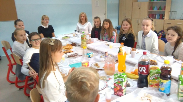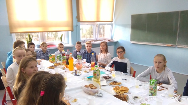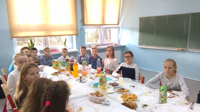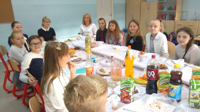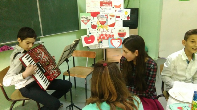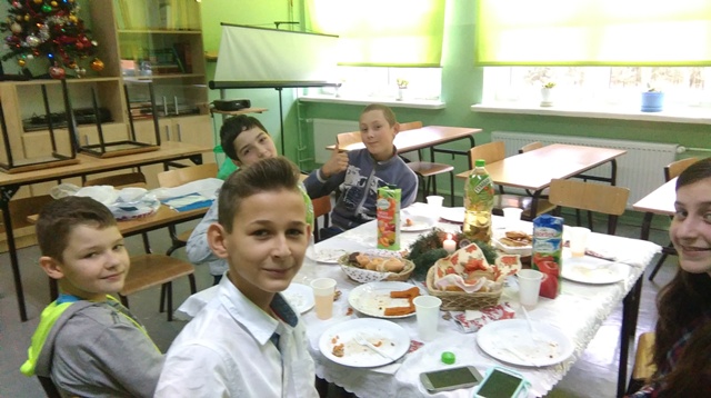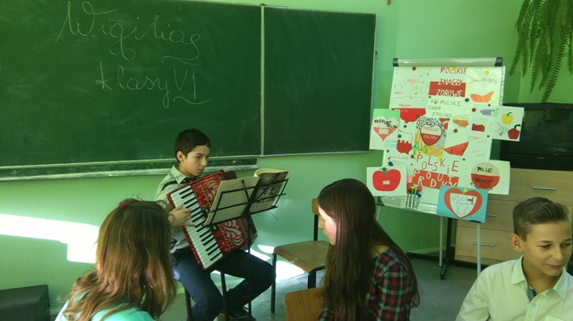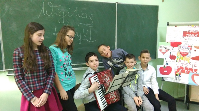 Na zakończenie tej przepięknej i bardzo wzruszającej uroczystości wszyscy zgromadzeni wspólnie kolędowali, a na akordeonie akompaniował uczeń klasy VI Damian Szczęsny.