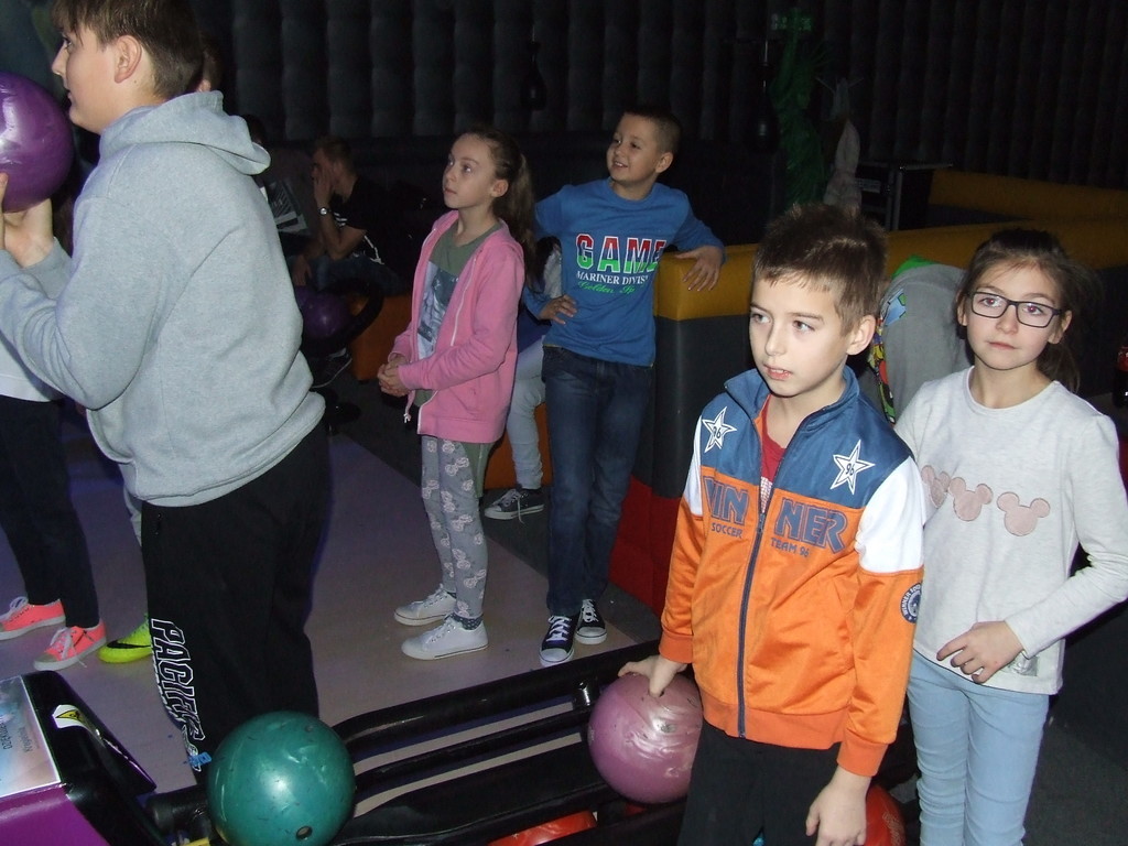 We wtorek uczniowie klas IV-VI wraz z wychowawcami uczestniczyli w mikołajkowym wyjeździe na kręgle do kręgielni "Platinium" w Radomiu. To już kolejne mikołajki, które uczniowie naszej szkoły spędzają aktywnie. Dzieci doskonaliły umiejętność gry w kręgle oraz umiejętności społeczne, czyli wzorce zachowań społecznych, które nadają jednostkom kompetencje społeczne - zdolność wywierania pożądanego wpływu na innych ludzi. W drodze powrotnej odwiedziliśmy ulubioną przez dzieci restaurację MacDonalds.