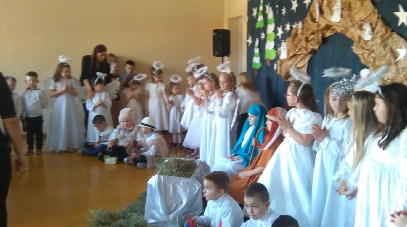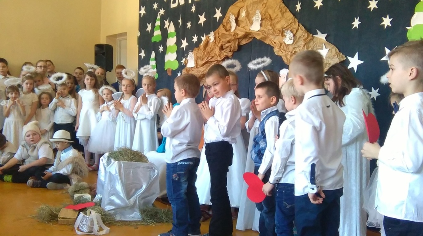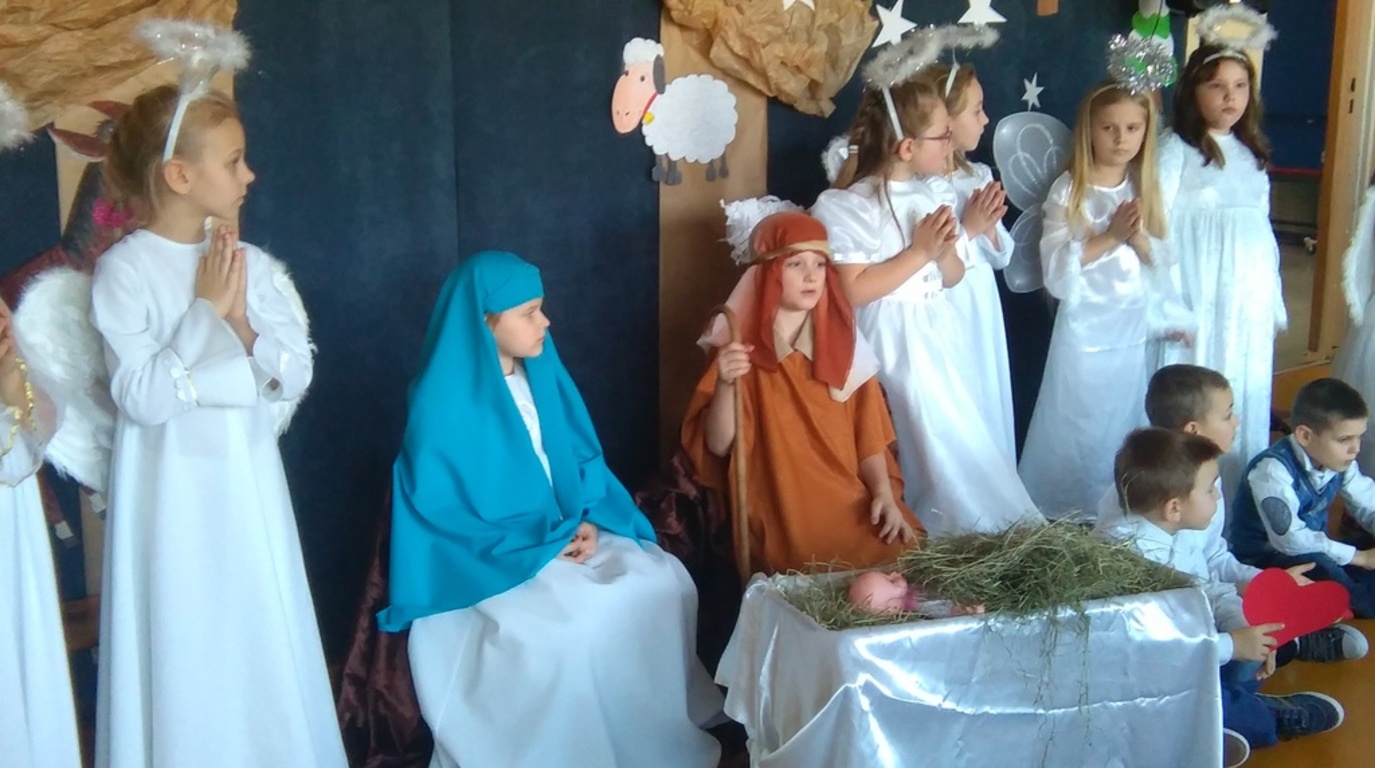 Zgodnie z tradycją w ostatnim dniu nauki przed przerwą świąteczną społeczność szkolna oraz zaproszeni goście obejrzeli przedstawienie o Bożym Narodzeniu wzorowane na średniowiecznych misteriach franciszkańskich, czyli jasełka. Nazwa jasełka wywodzi się od staropolskiego słowa jasło oznaczającego żłób. W bieżącym roku przedstawienie przygotowały dzieci z OP wraz z wychowawczynią p. Magdaleną Postek oraz uczniowie klasy II z wychowawczynią p. Katarzyną Konopką.