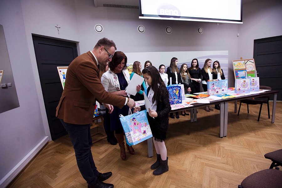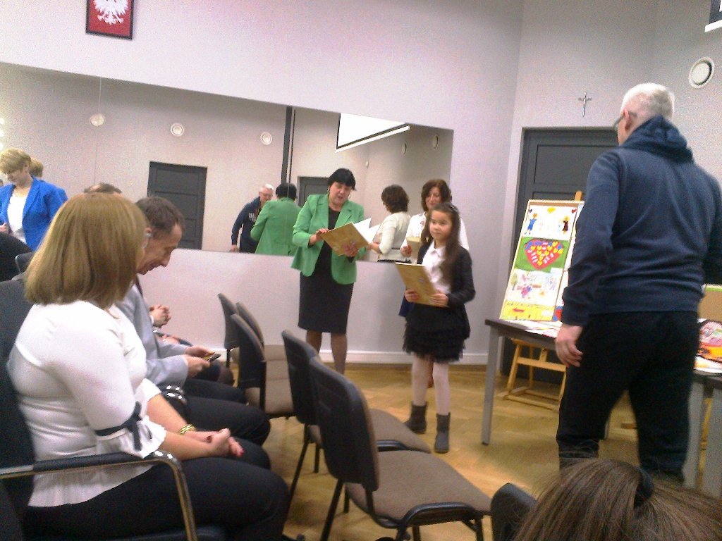 W celu promowania prawidłowych postaw prospołecznych oraz zdrowego stylu życia w rodzinie, uczniowie naszej szkoły wzięli udział w I Gminnym Konkursie Plastycznym zorganizowanym przez Zespół Interdyscyplinarny ds Przeciwdziałania Przemocy w Rodzinie Gminy Jedlińsk. W dniu 27 stycznia 2017 r. w Gminnej Bibliotece Publicznej odbyła się uroczystość wręczenia nagród wyróżnionym uczniom. I miejsce w konkursie w kategorii klas IV - VI zajęła Kinga Boczek - uczennica klasy IV, wyróżnienie otrzymała Wiktoria Ofiara również uczennica klasy IV.