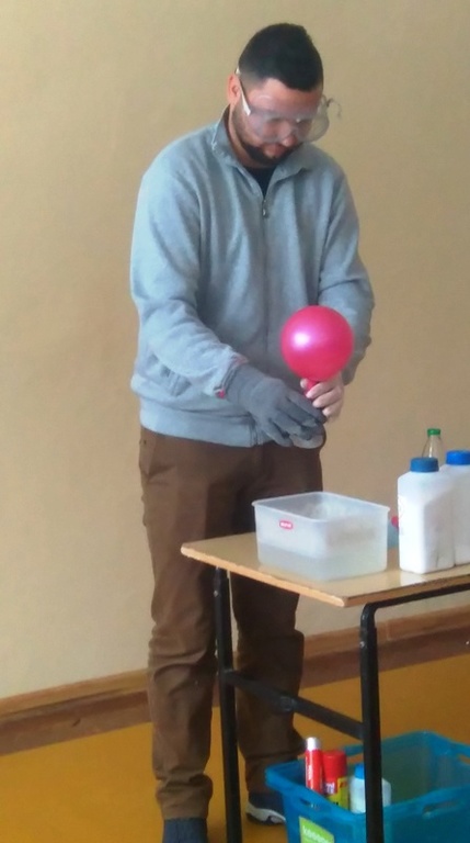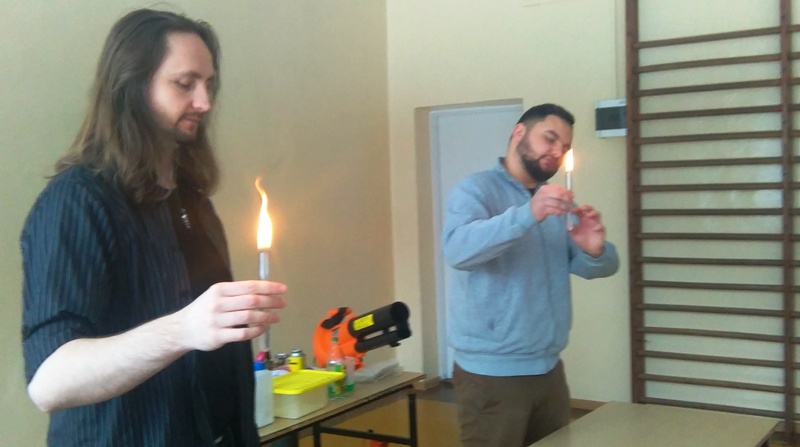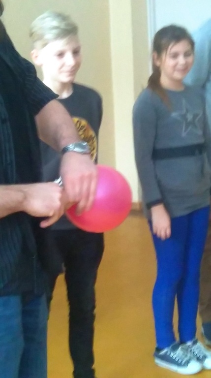 W dniu dzisiejszym uczniowie naszej szkoły uczestniczyli w niezwykłej lekcji przyrody. Pokazy fizyczno - chemiczne przeprowadziła grupa "Zaelektryzowani", której członkami są studenci UMCS w Lublinie. Dzieci miały możliwość asystowania w niektórych eksperymentach, dowiedziały się jakie jest praktyczne wykorzystanie znanych praw fizycznych i chemicznych. Nawet najmłodsi z uwagą śledzili przebieg pokazu i chętnie odpowiadali na pytania prowadzących. Dzięki takim "żywym" lekcjom uczniowie szybciej zapamiętują informacje, a zdobyta przez nich wiedza jest trwalsza.