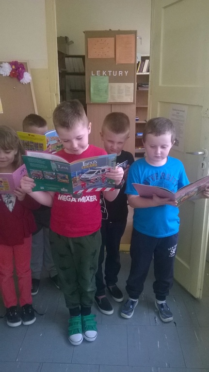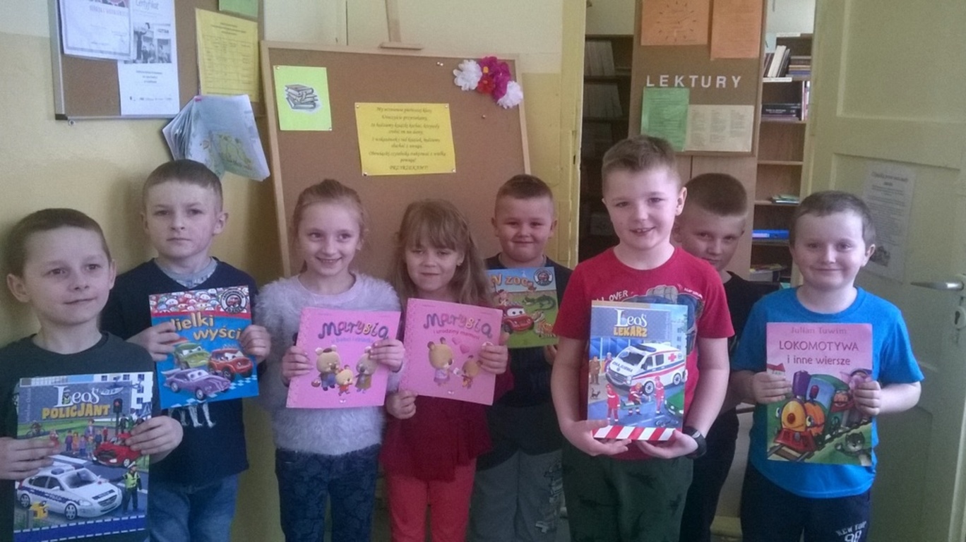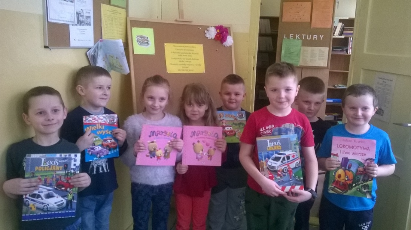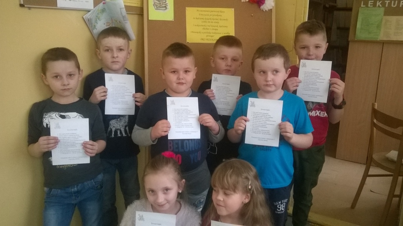 Jak co roku biblioteka szkolna powitała w swoich progach nowych czytelników. Każda klasa pierwsza wraz z wychowawcą odwiedza bibliotekę, gdzie dzieci dowiadują się jak wybrać sobie książkę, kiedy należy ją zwrócić i jak traktować powierzonych ich opiece drukowanych przyjaciół. W tym roku pierwszaki w świat książek wprowadziły pouczające wierszyki, krótkie zagadki o bohaterach książek oraz na temat zasad poszanowania książek. Mali czytelnicy bez trudności odpowiedzieli na zadawane pytania. Na zakończenie nowi czytelnicy złożyli przyrzeczenie, że będą kochać i szanować książki. Wszyscy zostali pasowani na czytelników. Każdy pierwszak otrzymał ręcznie wykonaną zakładką przez uczniów klasy II i III oraz wypożyczył swoją pierwszą książkę.
