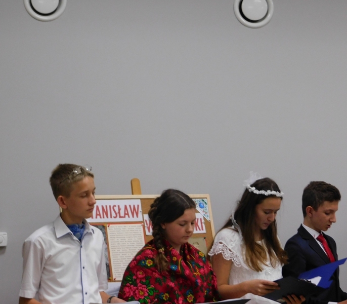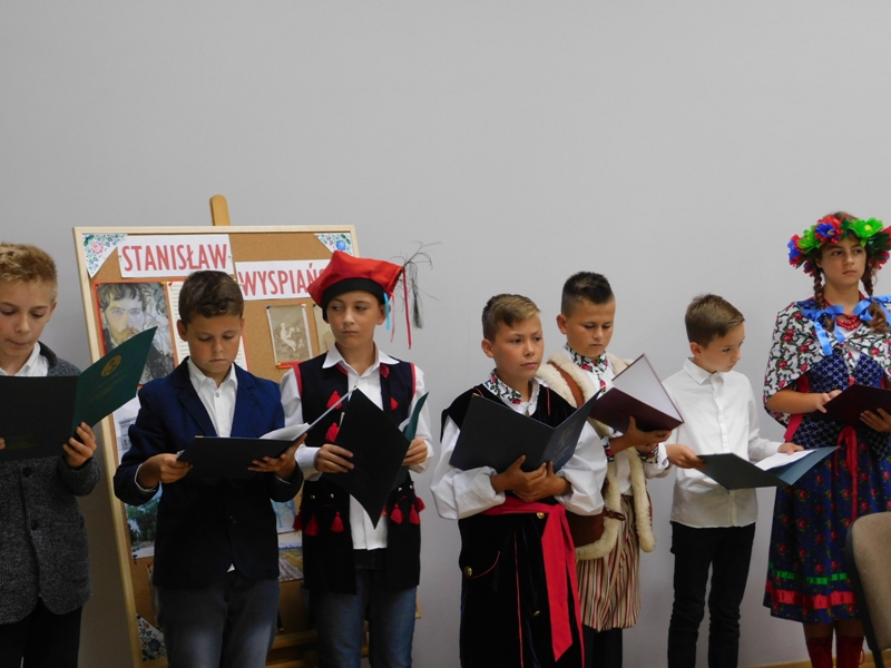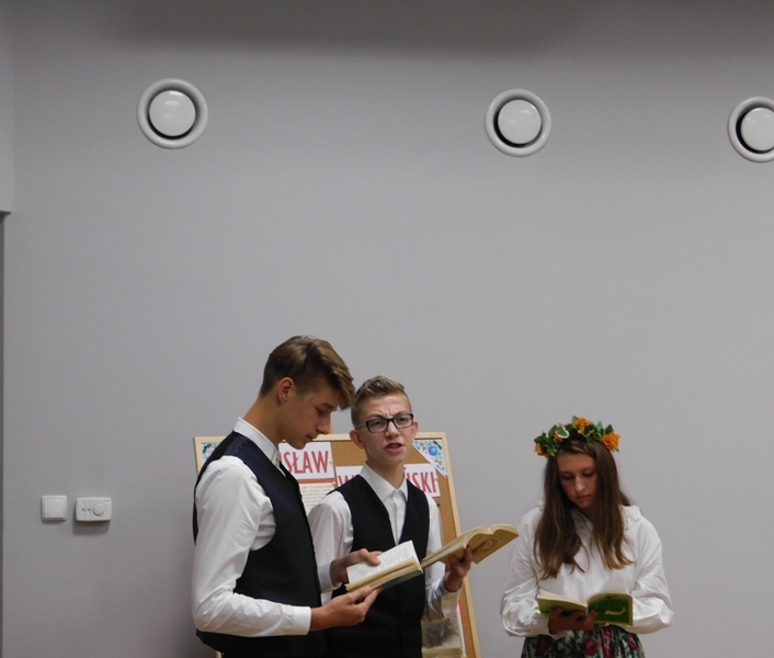 Zgromadzeni z przyjemnością wysłuchali znanych i mniej znanych fragmentów dramatu w interpretacji uczniów, reprezentujących wszystkie szkoły z terenu gminy. Barwne stroje, rekwizyty oraz nastrojowa muzyka współtworzyły niepowtarzalną atmosferę dzisiejszego spotkania. PSP im. Jana Pawła II w Ludwikowie reprezentowali uczniowie klasy VII: Jakub Chojnacki (Czepiec), Weronika Szczęsna (Zosia), Dawid Wójcik (Dziennikarz). Niełatwy tekst nie nastręczył naszym zdolnym uczniom zbyt wielu trudności.