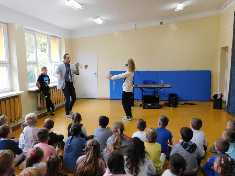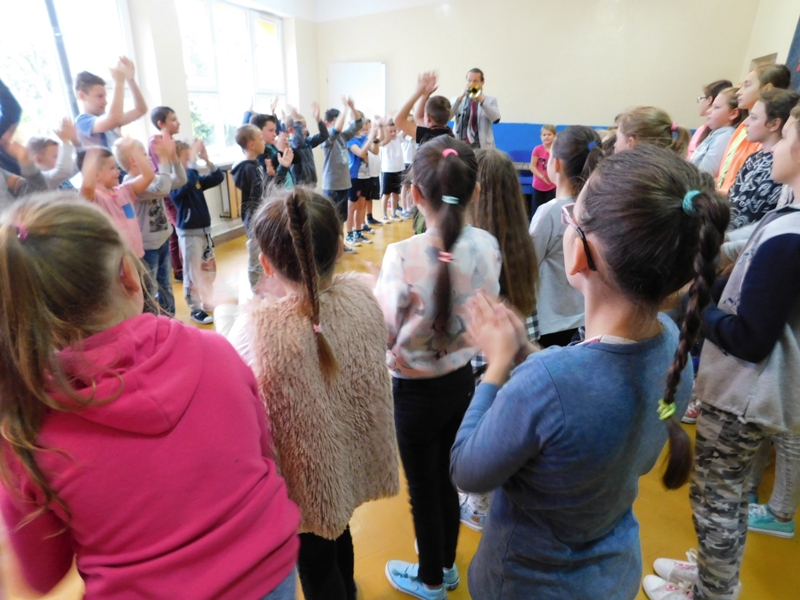 W ramach obchodów "Roku Rzeki Wisły" gościliśmy dzisiaj pana Marcina Jóźwika, który zaprosił uczniów naszej szkoły na muzyczny spływ Wisłą. Zajęcia umuzykalniające prowadzone przez "Pana Filharmonię" - żartobliwy przydomek nadany przez dzieci - cieszą się dużym powodzeniem. Uczniowie "przepłynęli" Wisłą przez całą Polskę - od Baraniej Góry, tam gdzie biją źródła rzeki, aż do Morza Bałtyckiego. W takt znanych wszystkim utworów ("Płynie Wisła, płynie", "Ach jak przyjemnie", "Córka rybaka", "Monika, dziewczyna ratownika"...) spławiali most dla wojsk Władysława Jagiełły zdążających pod Grunwald, ratowali rozbitków ze statku handlowego, plażowali.