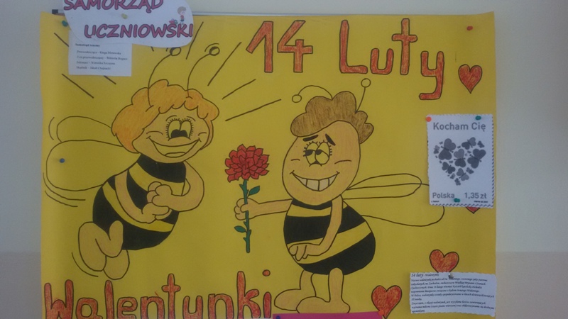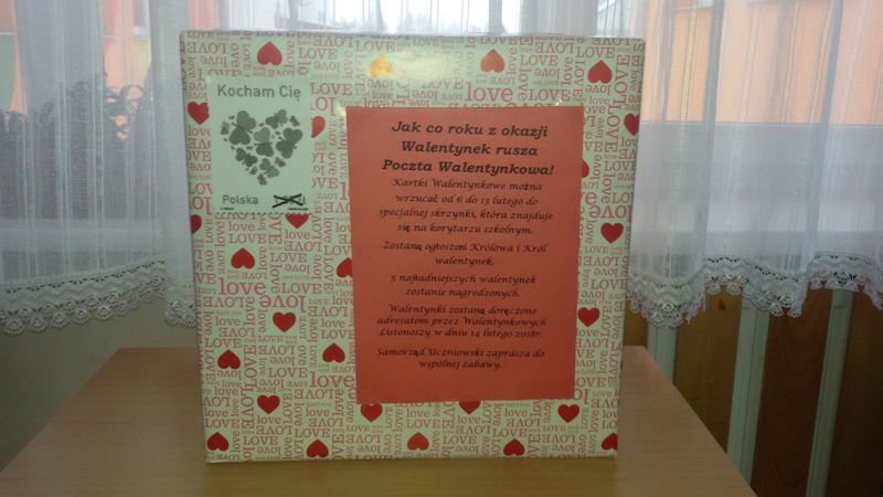 Pierwszym sygnałem zbliżającego się święta był plakat wykonany przez uczniów klasy VI – Michała Lipca i Klaudiusza Piwowarczyka, umieszczony 1 lutego na tablicy Samorządu Uczniowskiego. Od 6 lutego do 12 lutego włącznie była czynna ,,Poczta Walentynkowa”. W ciągu tych dni skrzynka zapełniła się po brzegi. Samorządowcy musieli wykonać ogromną pracę, by posortować wszystkie listy.