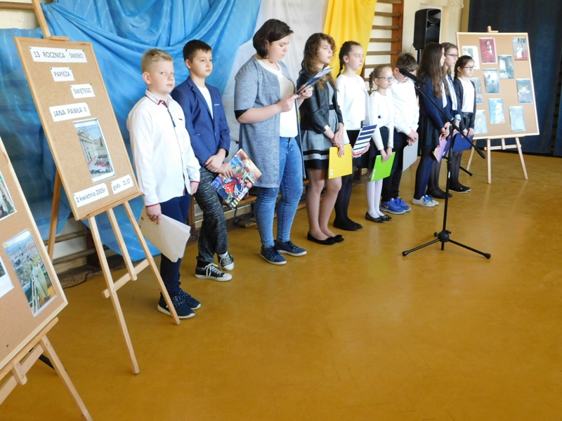 Akademię poświęconą Patronowi Szkoły przygotowali uczniowie klasy V pod kierunkiem pani B. Piaseckiej oraz pana P. Zegarka. Po odśpiewaniu hymnu szkoły autorstwa ks. Marka Jagodzińskiego, dzieci przypomniały najważniejsze fakty biografii Papieża, przytoczyły również kilka anegdot związanych z Jego działalnością duszpasterską i podróżami.