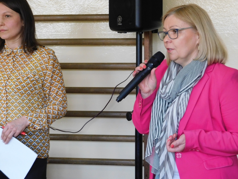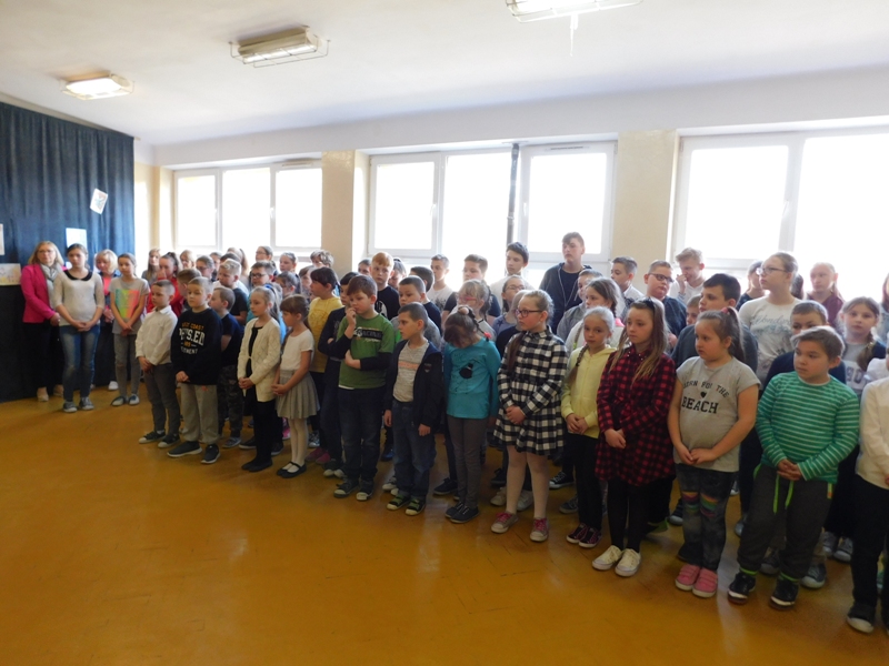 Uczestników i zgromadzoną w sali gimnastycznej publiczność powitała Dyrektor Szkoły pani Małgorzata Sobień. Uroczystość prowadziła przewodnicząca SU Kinga Morawska z klasy VII.