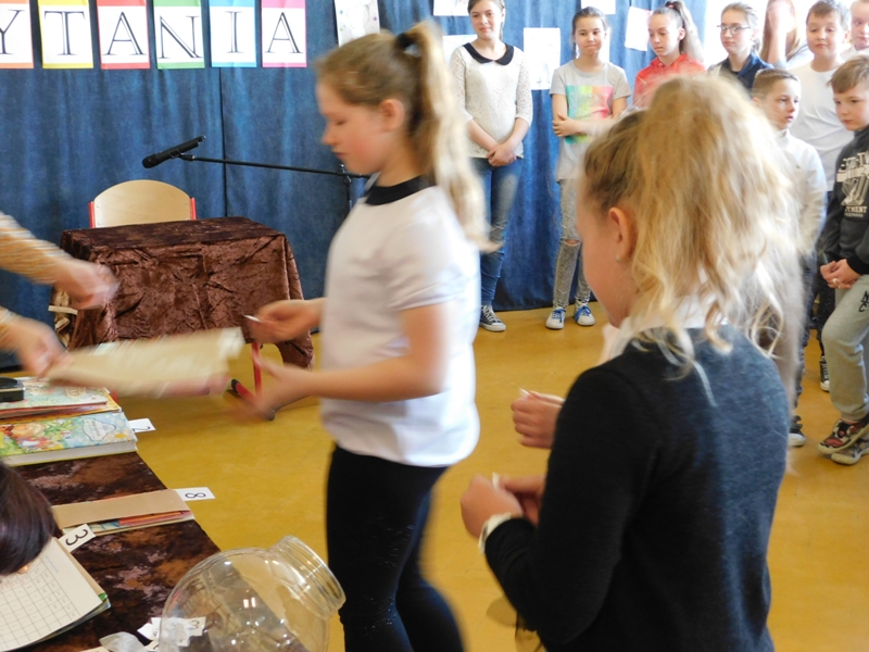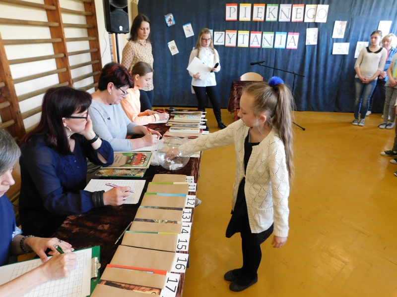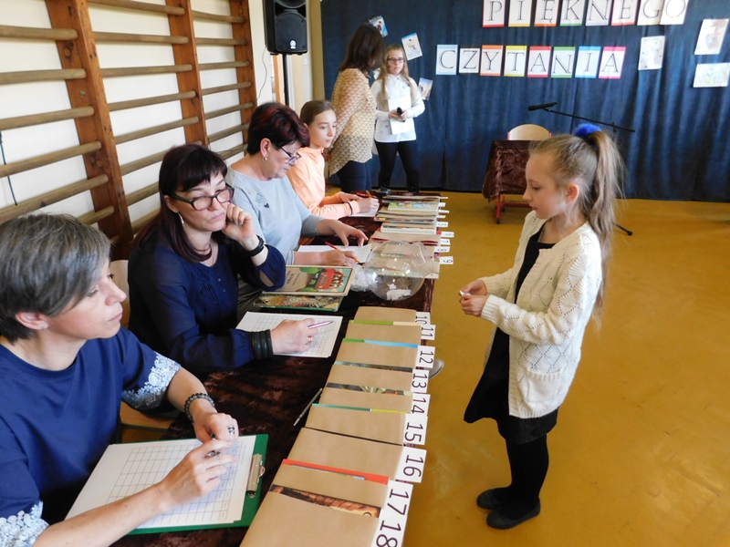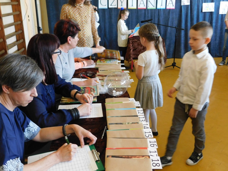 Finaliści rywalizowali w dwóch grupach wiekowych – uczniowie klas II – IV oraz V – VII . Poprawność, wyrazistość, płynność i intonację czytania oceniało jury w składzie: pani Barbara Barańska, pani Hanna Barcikowska, Dorota Molenda – Mokosa oraz przedstawicielka SU – Weronika Szczęsna.