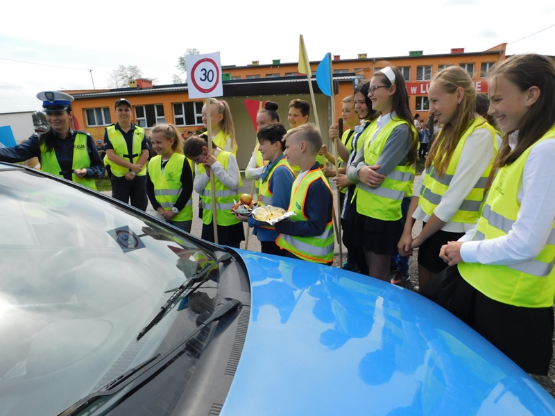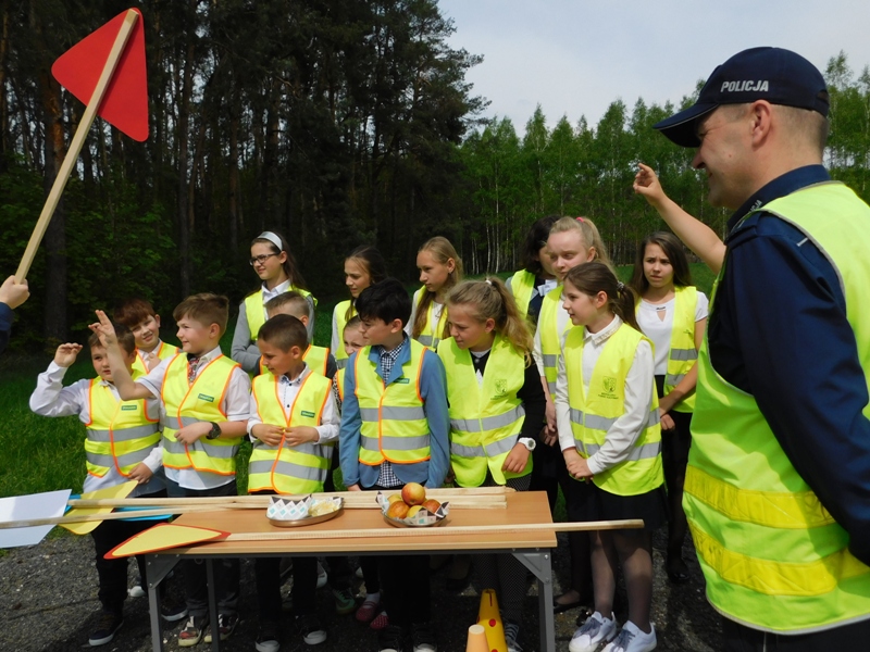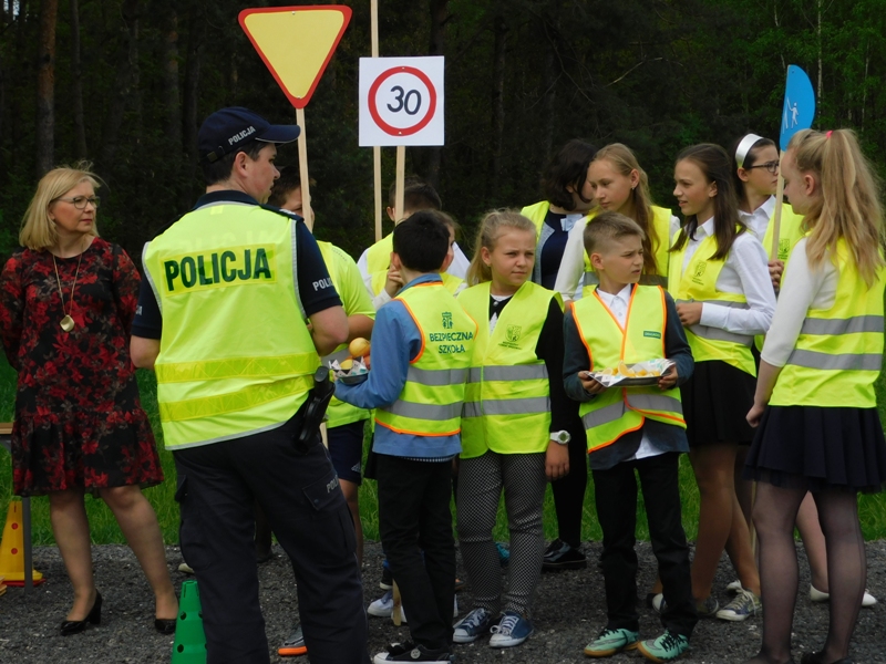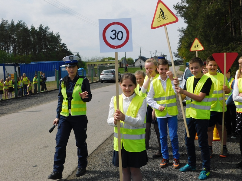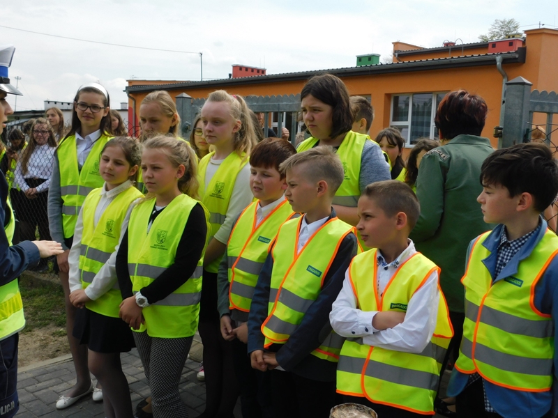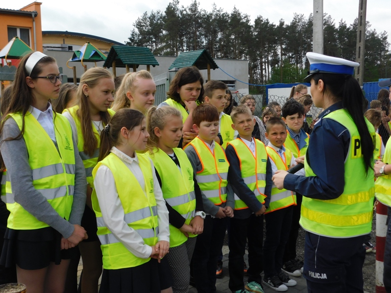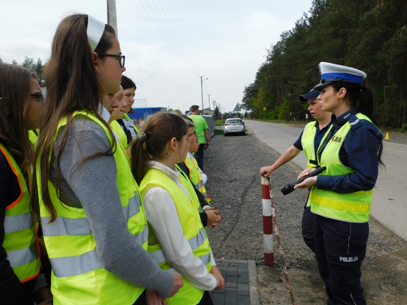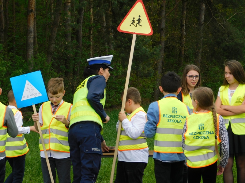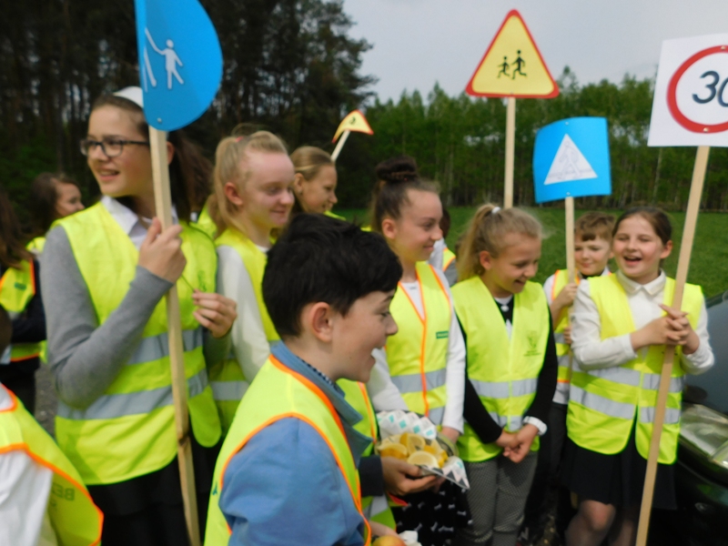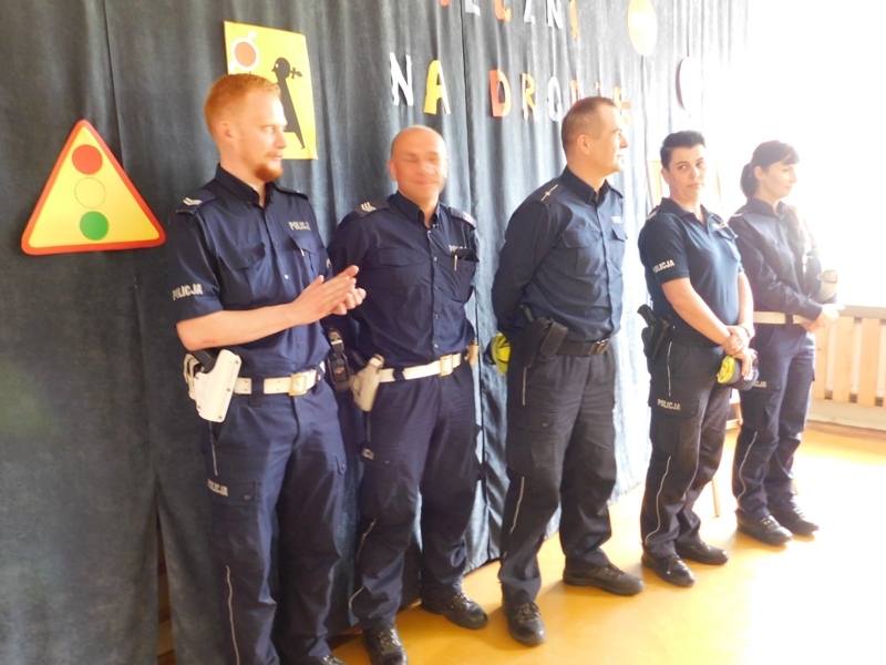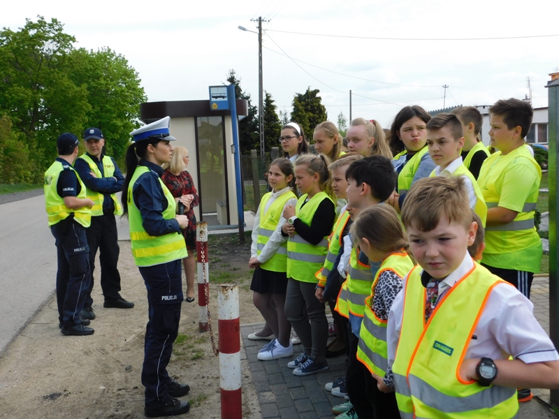 Dzieci utrwaliły wiadomości dotyczące znaków drogowych i zasad bezpiecznego poruszania się po drodze, a następnie uczestniczyły w „akcji terenowej”. Pod kierunkiem st. sierż. Renaty Gawryś brały udział w kontroli zatrzymywanych pojazdów. Niestety, wszyscy zatrzymani dzisiaj kierowcy popełnili większe lub mniejsze wykroczenia (przekroczenie prędkości, brak dokumentów, brak świateł) i zostali pouczeni oraz surowo ukarani… zjedzeniem cytryny.