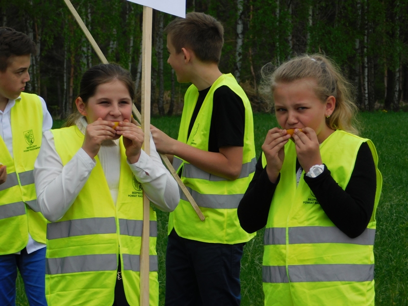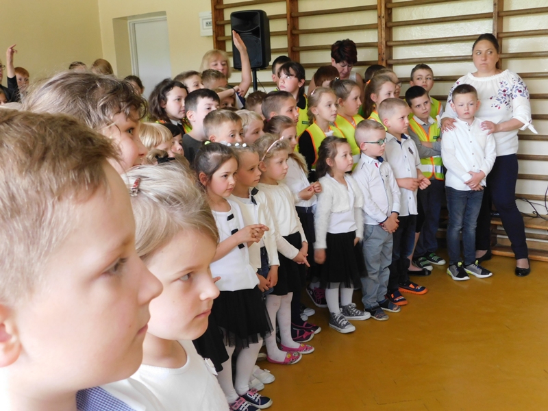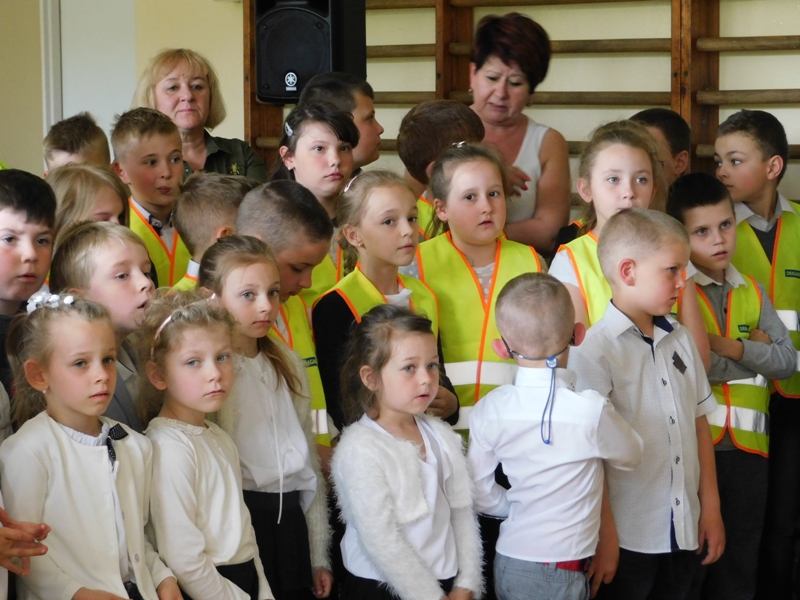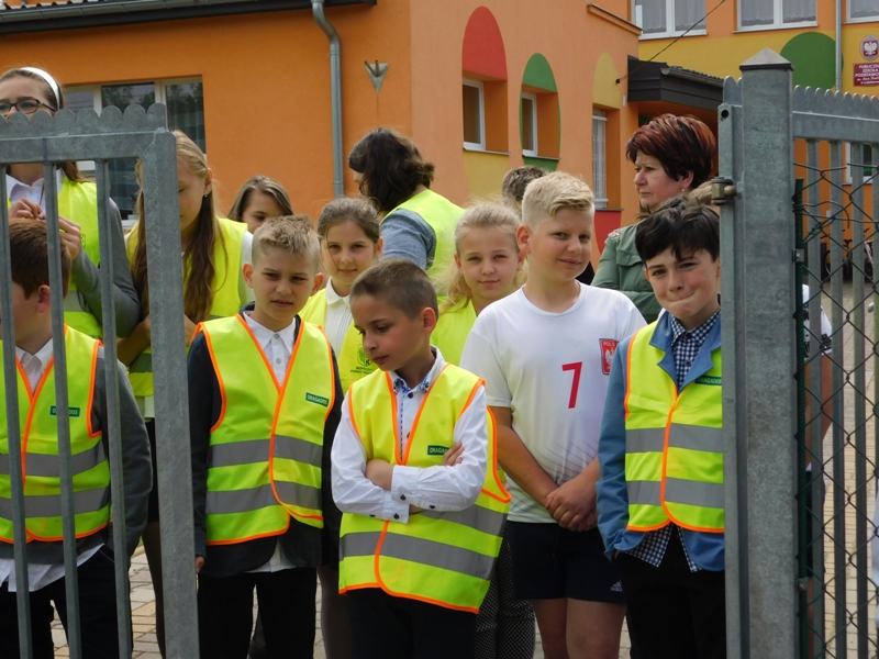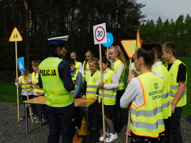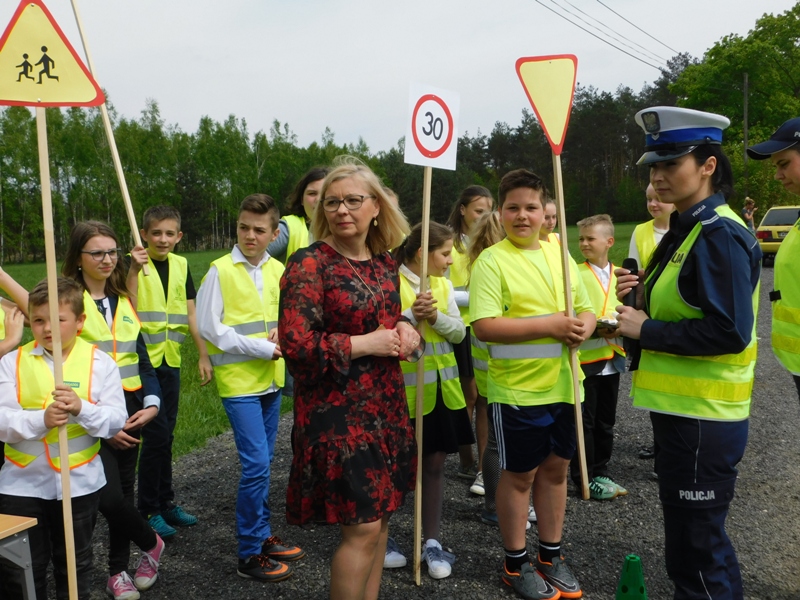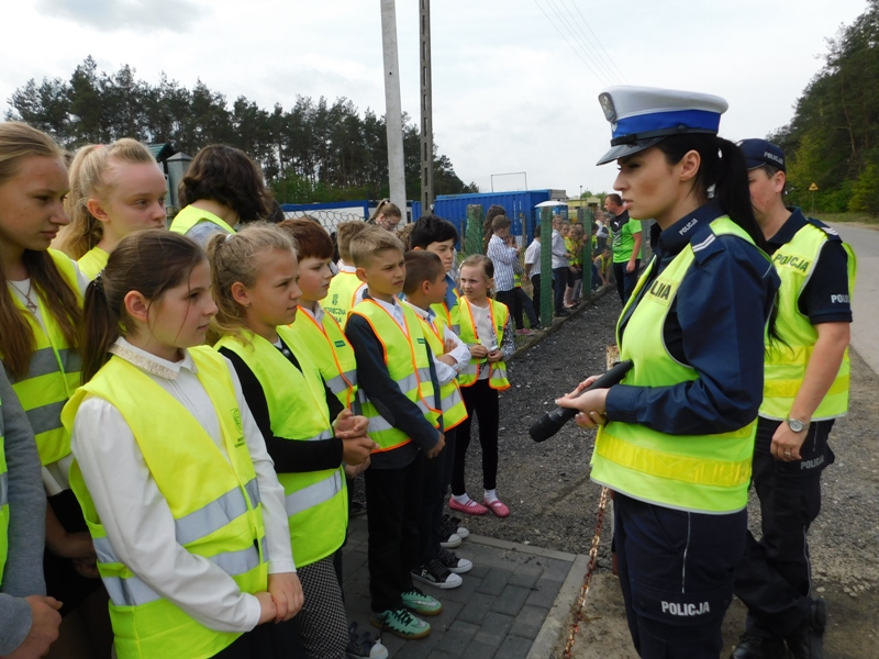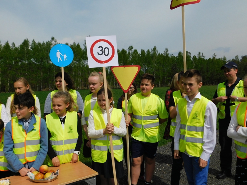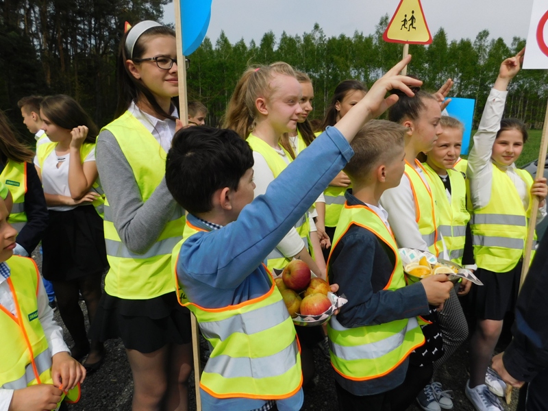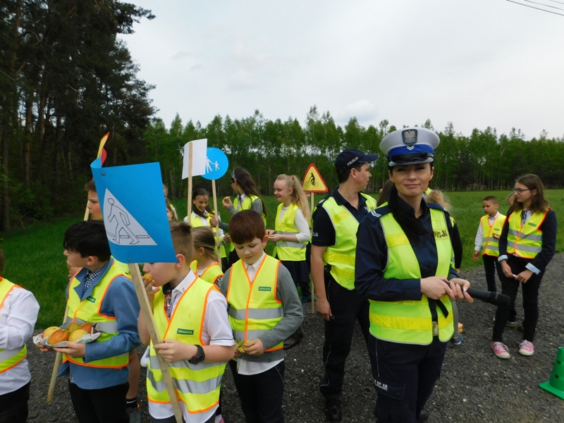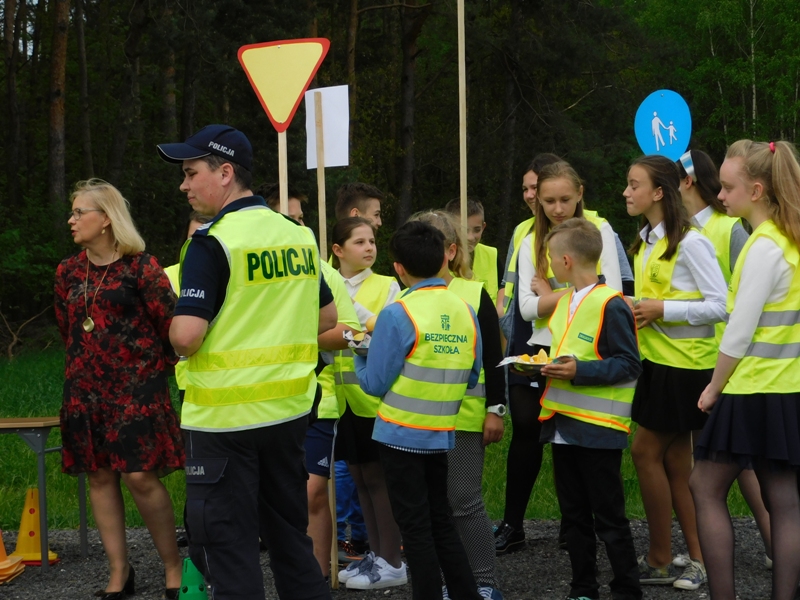 Dzieci utrwaliły wiadomości dotyczące znaków drogowych i zasad bezpiecznego poruszania się po drodze, a następnie uczestniczyły w „akcji terenowej”. Pod kierunkiem st. sierż. Renaty Gawryś brały udział w kontroli zatrzymywanych pojazdów. Niestety, wszyscy zatrzymani dzisiaj kierowcy popełnili większe lub mniejsze wykroczenia (przekroczenie prędkości, brak dokumentów, brak świateł) i zostali pouczeni oraz surowo ukarani… zjedzeniem cytryny.