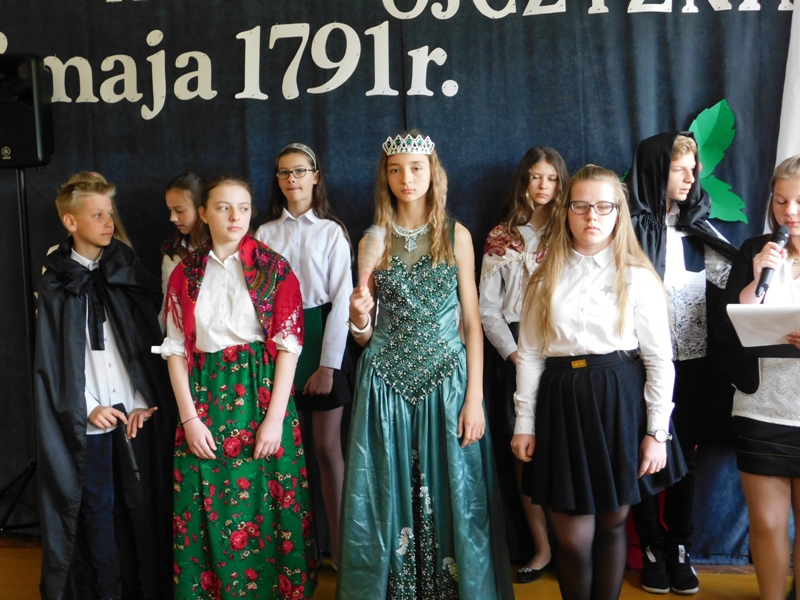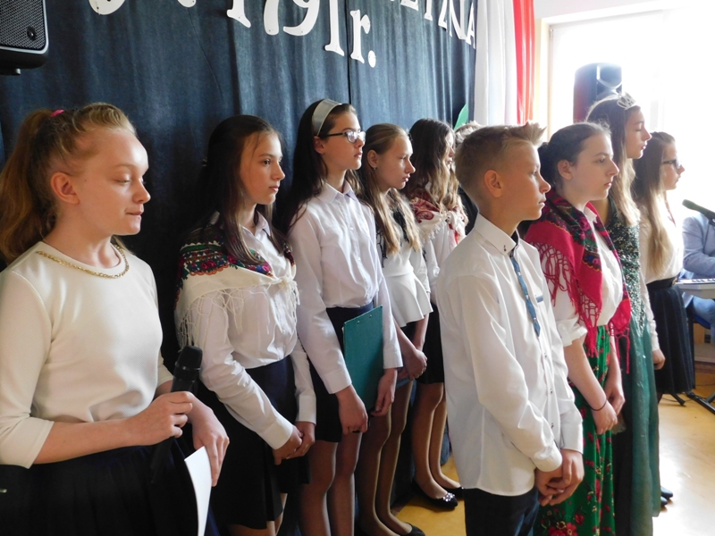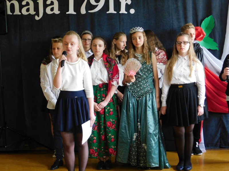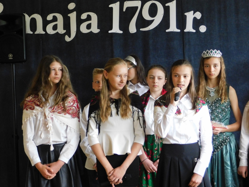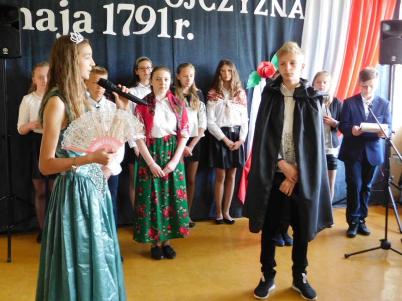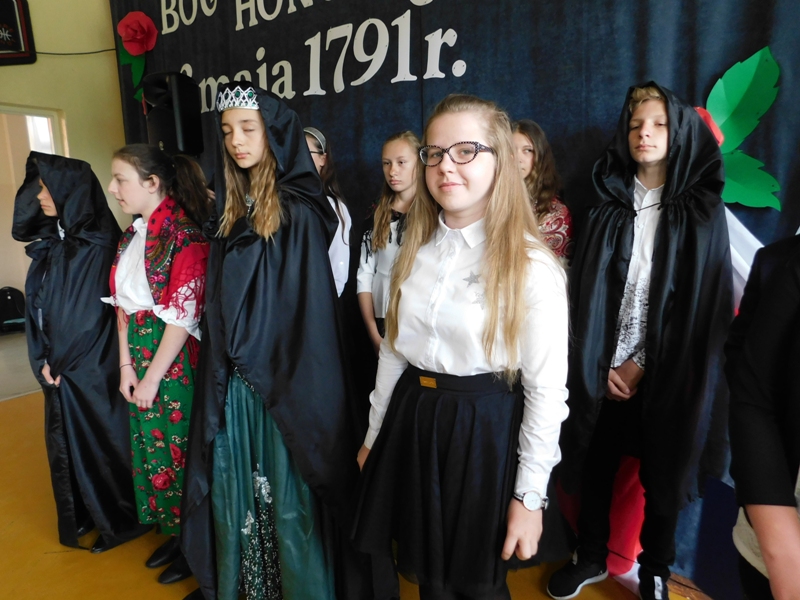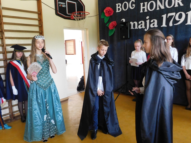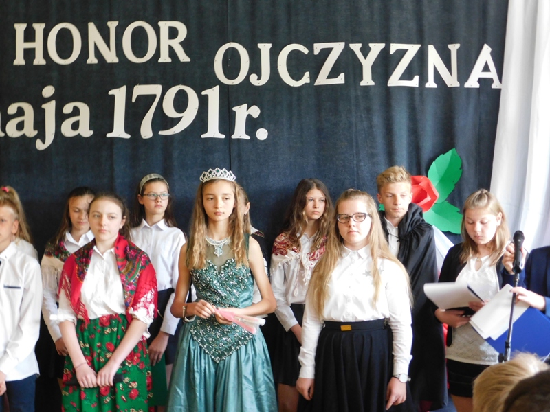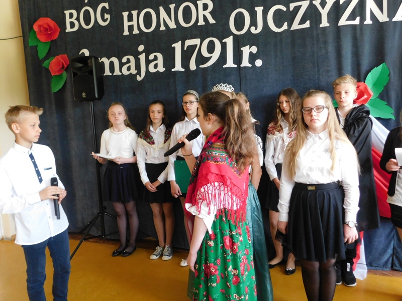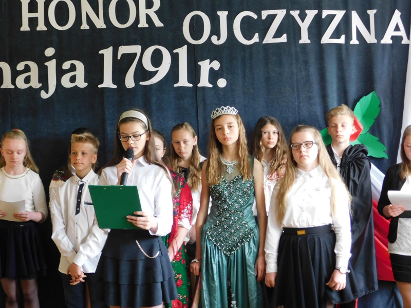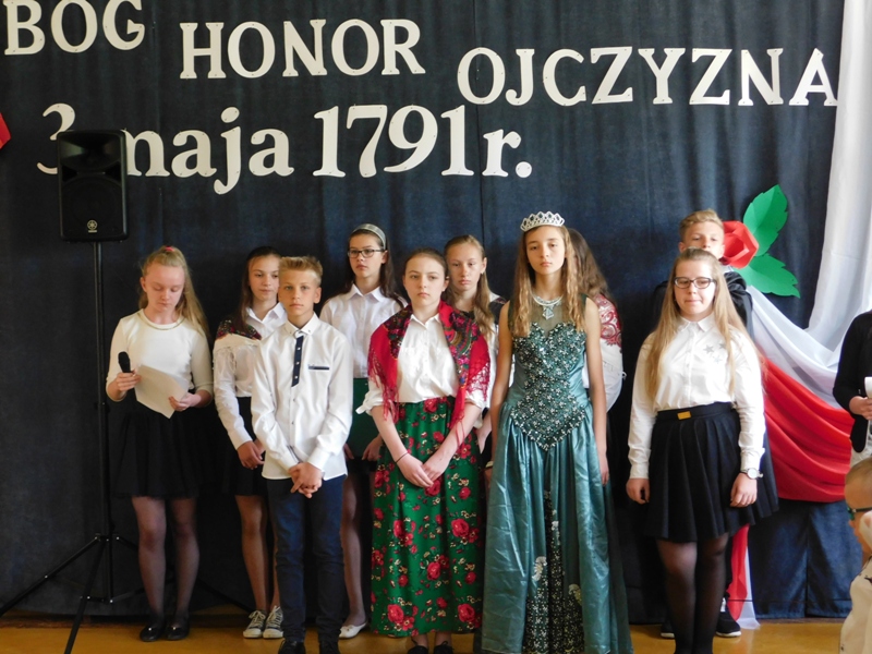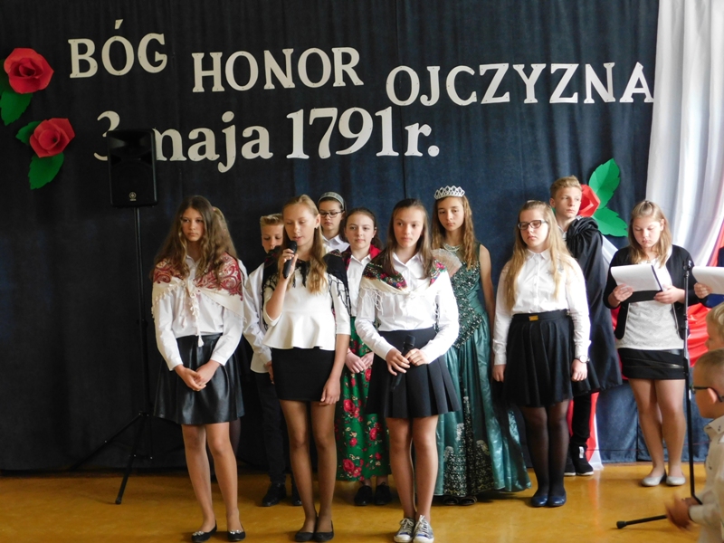 W dniu 24 kwietnia 2018r. obchodziliśmy w naszej szkole akademię z okazji rocznicy uchwalenia Konstytucji 3 maja. Mottem uroczystości było hasło: „Bóg, honor, ojczyzna”. Uczniowie zaprezentowali montaż słowno-muzyczny przybliżający tamte odległe , ale jakże ważne dla nas – Polaków, czasy. Akademię uświetniły scenki ukazujące przebiegłość zaborców oraz radość rodaków, którzy wiązali wielkie nadzieje w związku z uchwaleniem nowoczesnej konstytucji. Wydarzenia te uczą nas, jak ważna jest narodowa zgoda i zdolność do porozumienia się ponad podziałami, o czym świadczą słowa: