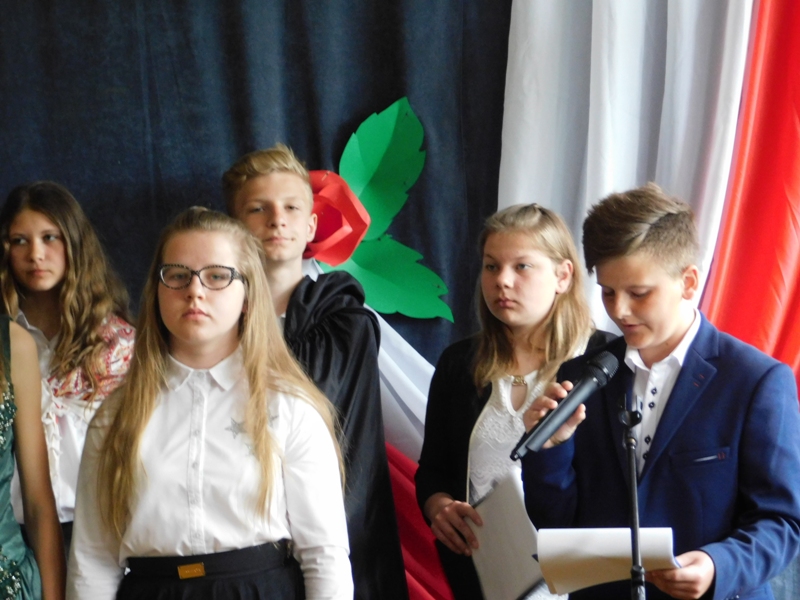 W akademii wystąpili uczniowie klasy VII pod kierunkiem p. Katarzyny Walczak, zaś oprawę muzyczną przygotował p. Dariusz Makarewicz z uczennicami klasy IV.