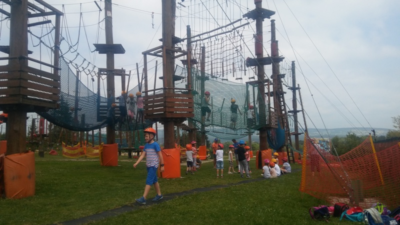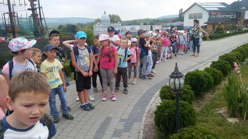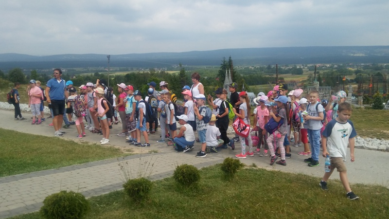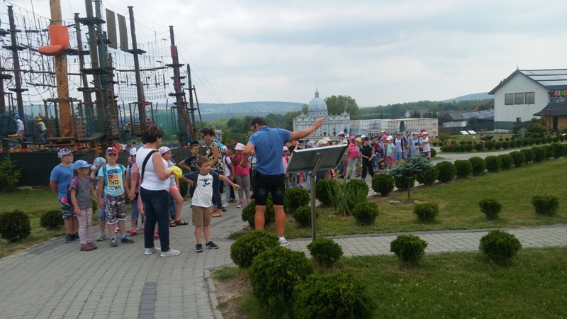 11 czerwca 2018 r. dzieci z oddziału przedszkolnego i uczniowie klas I-III wraz z wychowawcami wybrali się na wycieczkę do Sabat Krajno - Park Rozrywki i Miniatur, który znajduje się u stóp najwyższego szczytu Gór Świętokrzyskich – Łysicy. Pierwszym punktem naszej wizyty był spacer z przewodnikiem Aleją Miniatur. Jest to wyjątkowe miejsce, w którym w ciągu jednego dnia możliwa była podróż dookoła świata. Dzieci miały okazję podziwiać miniatury najsławniejszych cudów architektonicznych m.in.: Bazylikę św. Piotra, Akropol, Koloseum, Krzywą Wieżę w Pizie, Statuę Wolności, Mur Chiński, Wieżę Eiffla, Łuk Triumfalny, Big Ben, Biały Dom, wodospad Niagara, Świątynię Lotosu, cerkiew w Moskwie, wieże World Trade Center. Następnie dzieci udały się do parku linowego, w którym mogły sprawdzić swoje umiejętności zręcznościowe. Bardzo duże wrażenie wywarł na dzieciach pobyt w kinie 6D, w którym film mogły poczuć wszystkimi zmysłami. Kolejnym punktem naszego pobytu był tak bardzo oczekiwany Lunapark, gdzie czekało na nas wiele atrakcji np.: Zorbing, Eurobungee, Autodroom, karuzela Crazy Yacht, Stacja Kosmiczna, Łódeczki czy Dmuchańce. Po tak atrakcyjnie spędzonym dniu, pełni niezapomnianych wrażeń, wróciliśmy do domu.