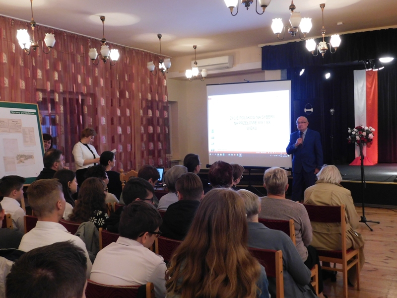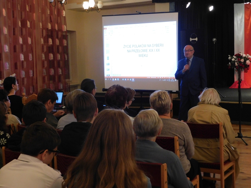 Następnie zgromadzeni wysłuchali fascynującej opowieści dr Krzysztofa Sadurskiego o życiu Polaków na przełomie XIX i XX wieku na Syberii. Na zakończenie wystąpił chór „Jedynka”, który zaprezentował doskonale znane pieśni i piosenki patriotyczne.
