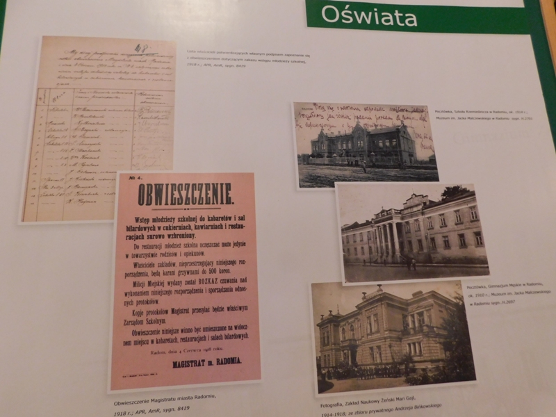 Druga część ekspozycji poświęcona została różnym sferom życia radomian, począwszy od aprowizacji, spraw porządkowych, bezpieczeństwa, zdrowia czy pomocy społecznej po budzące się życie narodowe na przykładzie rozwijającej się oświaty i kultury.