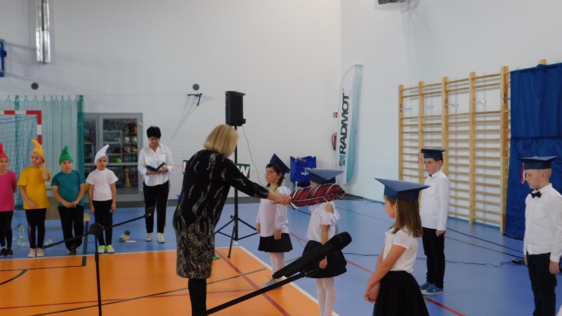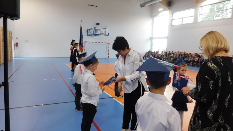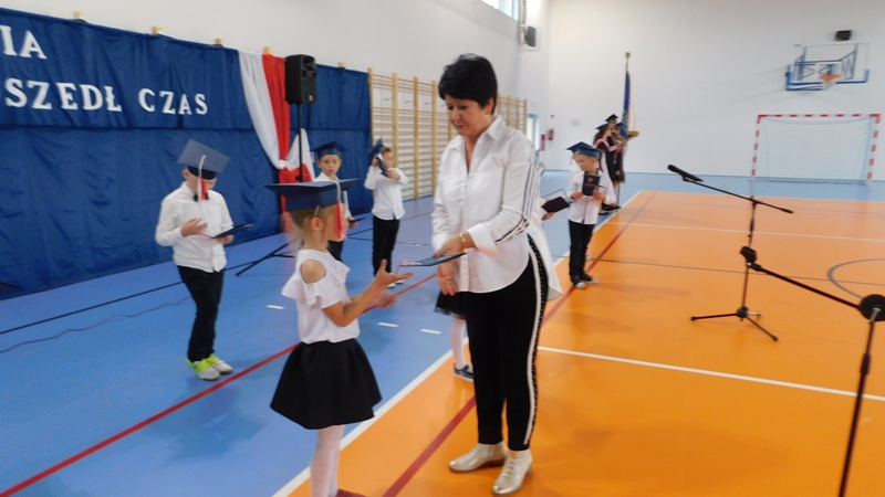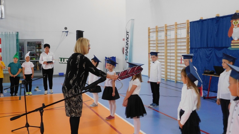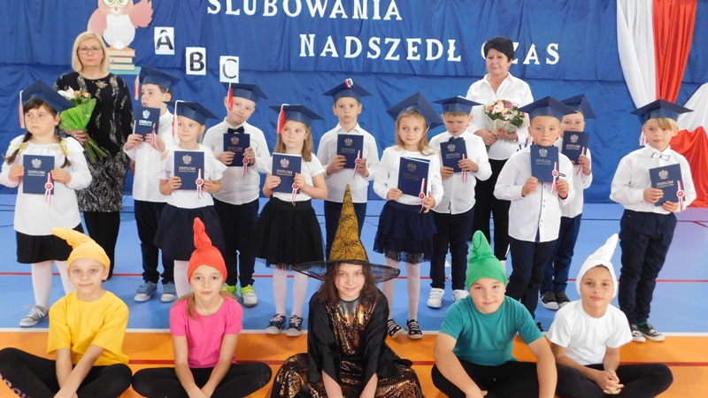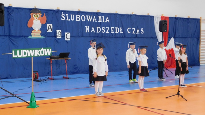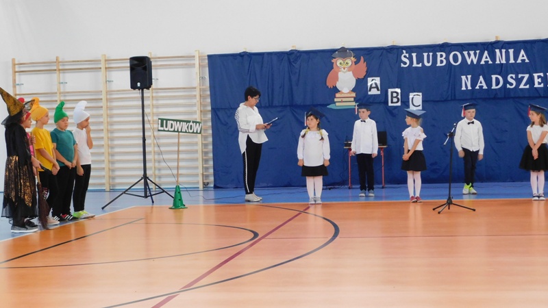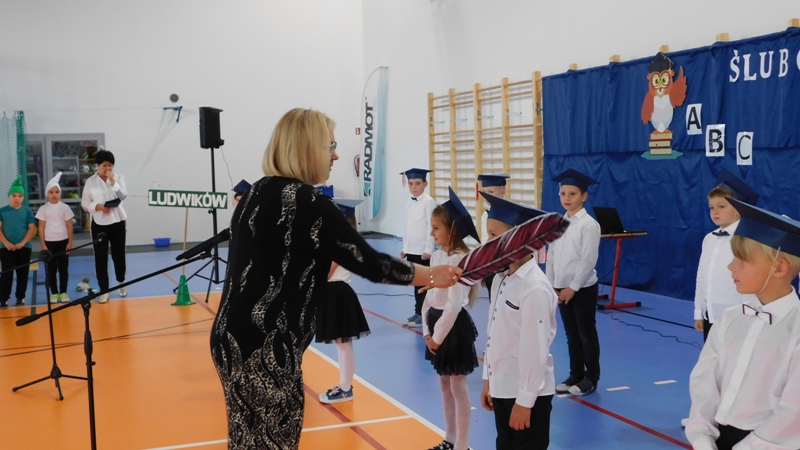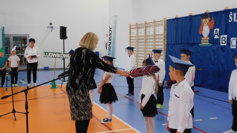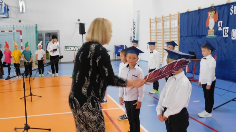 Program artystyczny, który uświetnił dzisiejszą uroczystość, przygotowali uczniowie klasy I i klasy IV pod kierunkiem pani Hanny Barcikowskiej - wychowawczyni klasy I. Przemiłe Smurfy i Dobra Wiedźma sprawdzili przygotowanie pierwszaków do bycia uczniami naszej szkoły. Sprawdzian przebiegł pomyślnie, a bohaterowie dnia wykazali się wieloma talentami i umiejętnościami. Na zakończenie pani dyrektor pasowała dzieci na uczniów Publicznej Szkoły Podstawowej im. Jana Pawła II w Ludwikowie. Na pamiątkę tego wydarzenia uczniowie klasy I otrzymali "Dyplom Pierwszaka".