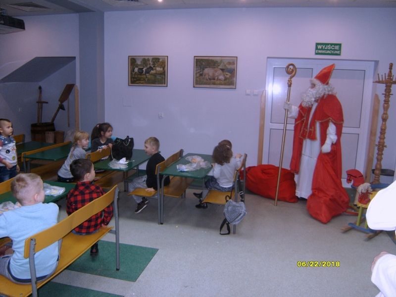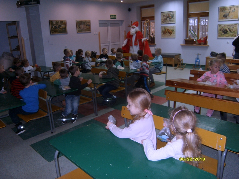 W dniu 14.12.2018r dzieci z oddziałów przedszkolnych pod opieką wychowawczyń udały się na wycieczkę do Muzeum Wsi Radomskiej. Na miejscu panie zorganizowały warsztaty, na których uczniowie robili ozdoby świąteczne. Podczas zajęć dzieci zapoznały się z tradycjami bożonarodzeniowymi. Jednak największą radość sprawiła dzieciom wizyta Mikołaja. Przedszkolaki przywitały Gościa śpiewając mu piosenki i recytując wiersze. Mikołaj wszystkie dzieci obdarzył prezentami.