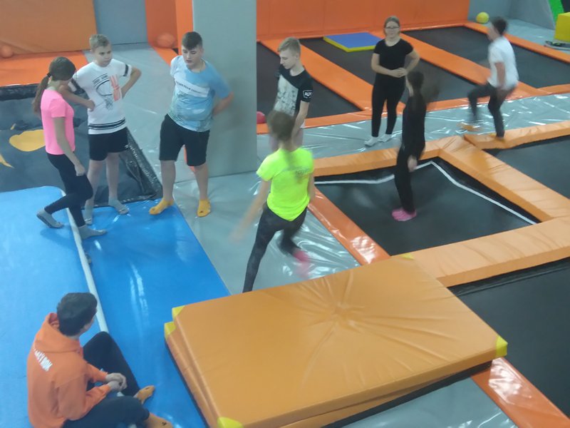 Wycieczka uczniów klasy VIII do parku trampolin "Sky Jump" w Radomiu.