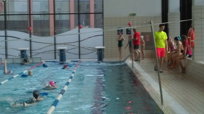 W II okresie br. szkolnego uczniowie klas IV - VIII uczestniczą w zajęciach na pływalni "Słoneczna" w Radomiu. Naukę pływania pod kierunkiem radomskich instruktorów rozpoczęło lub kontynuuje 25 osób. Zajęcia odbywają się w każdą środę w godzinach 16 - 17. Nad organizacją z ramienia szkoły czuwa pani W. Kaleta, a dodatkowo opiekę nad dziećmi sprawują nauczyciele.