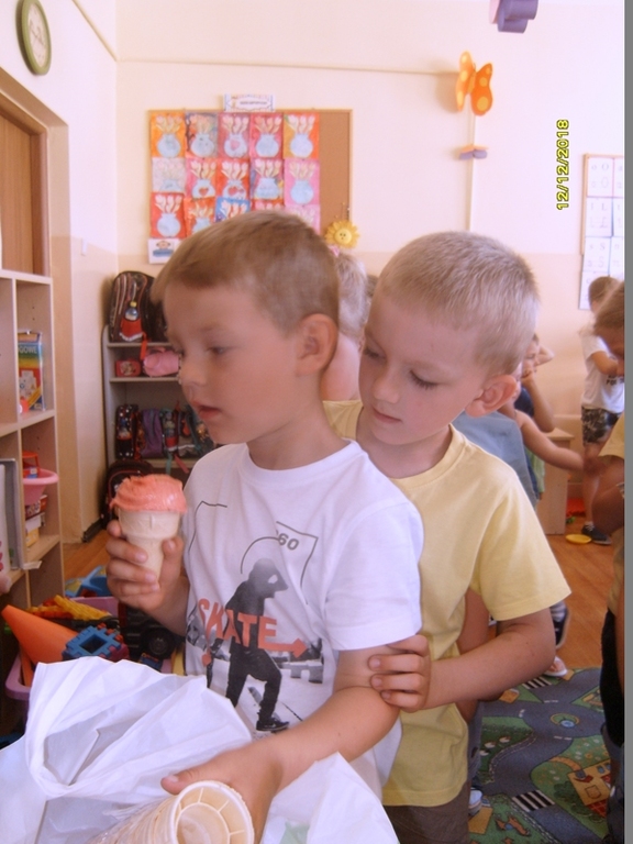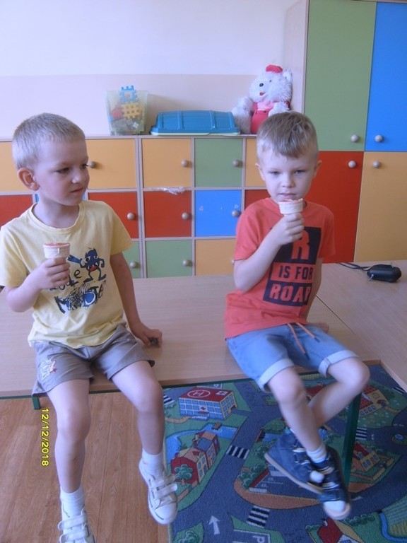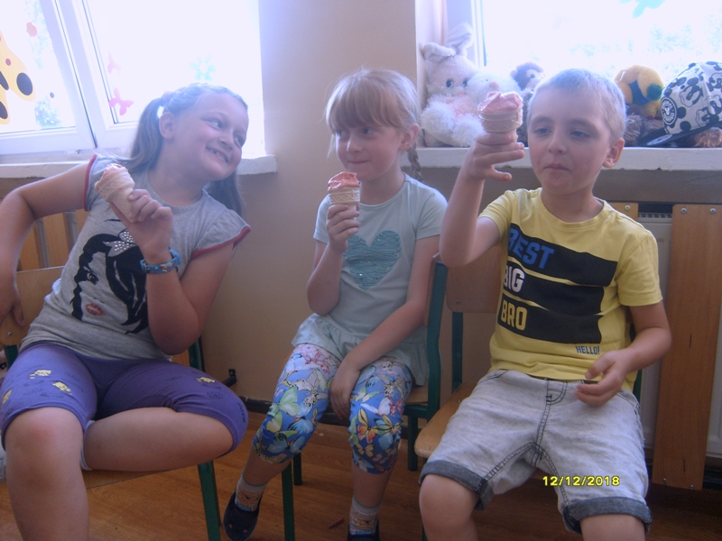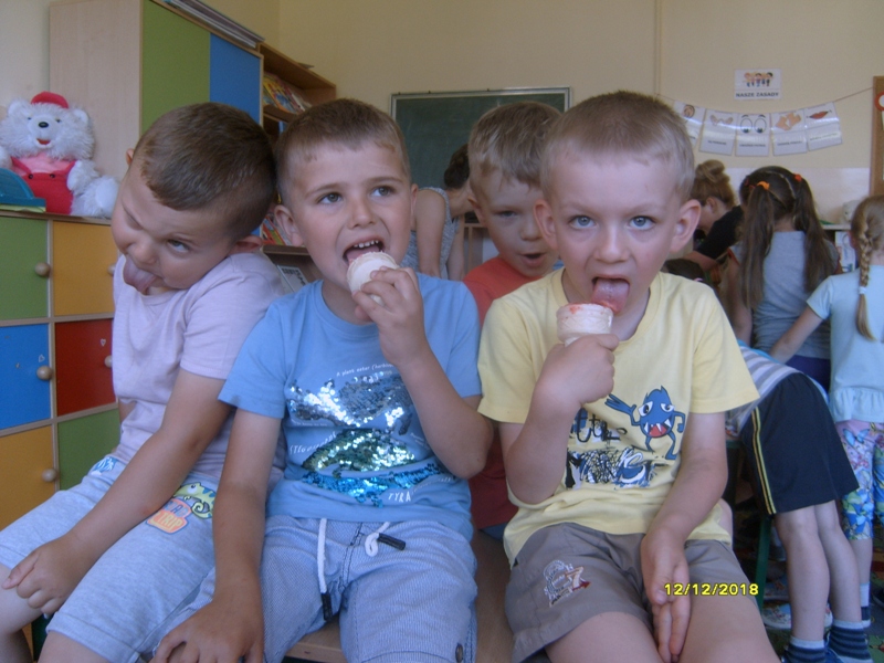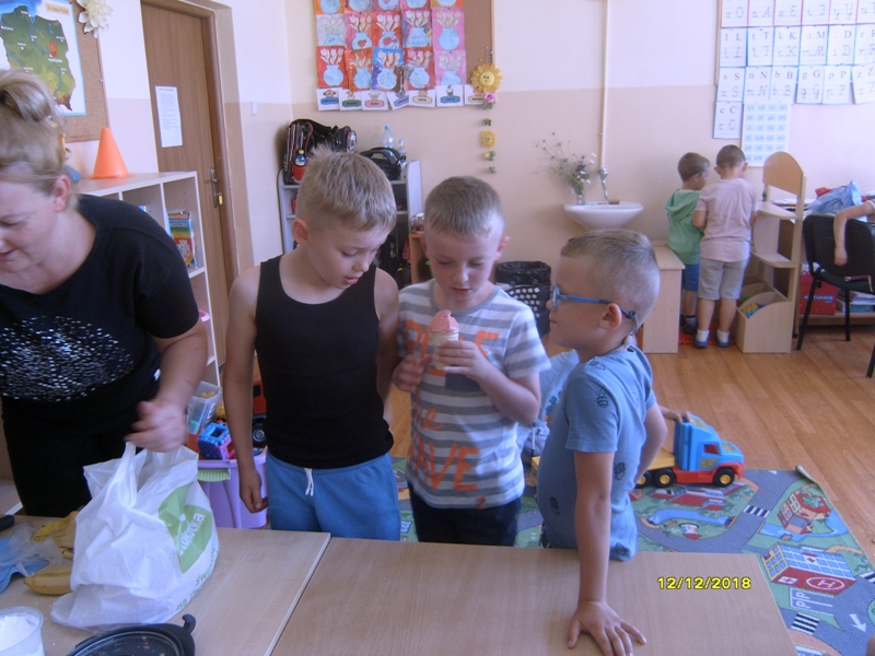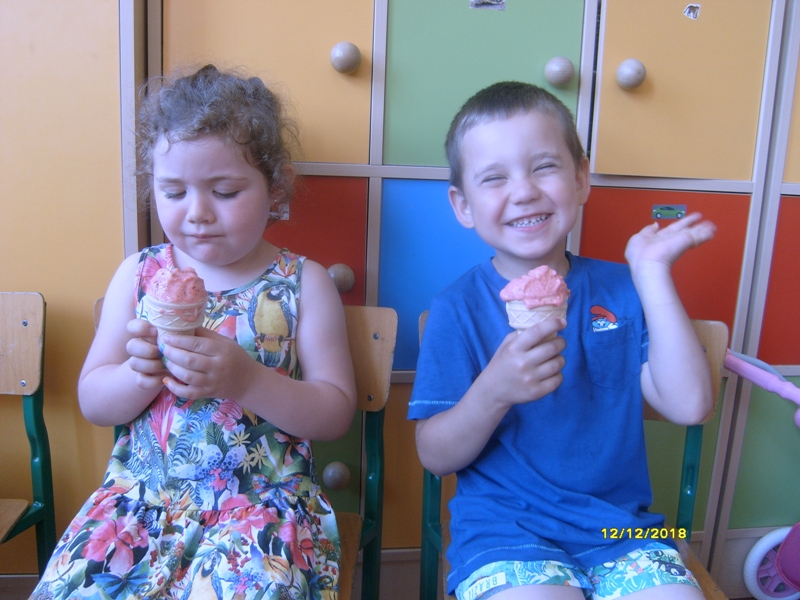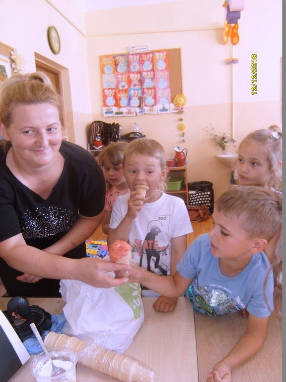 Lody to prawdziwie letni deser, który uwielbiają wszyscy. 5 maja dzieci z naszych grup przedszkolnych miały okazję przekonać się jak robi się domowe smakołyki. Dzieci dowiedziały się jakie są rodzaje lodów, jak powstają i skąd się bierze ich smak. Przed zrobieniem pysznego deseru dzieci umyły ręce i z pomocą pani Emilii Popiel, mamy Franka, odmierzały składniki potrzebne do przygotowania lodów. Deser powstał bardzo szybko i zachwycił swoim smakiem i kolorem. Po chwili po lodach nie było już śladu. Wykonane smakołyki były nie tylko smaczne, ale przede wszystkim zdrowe.