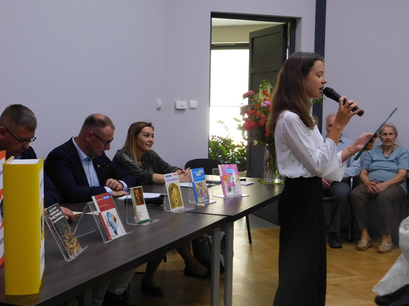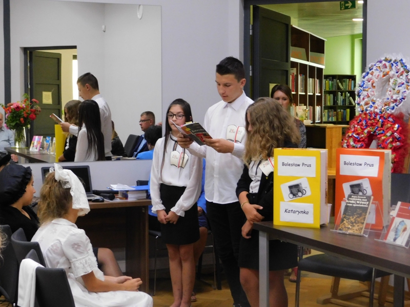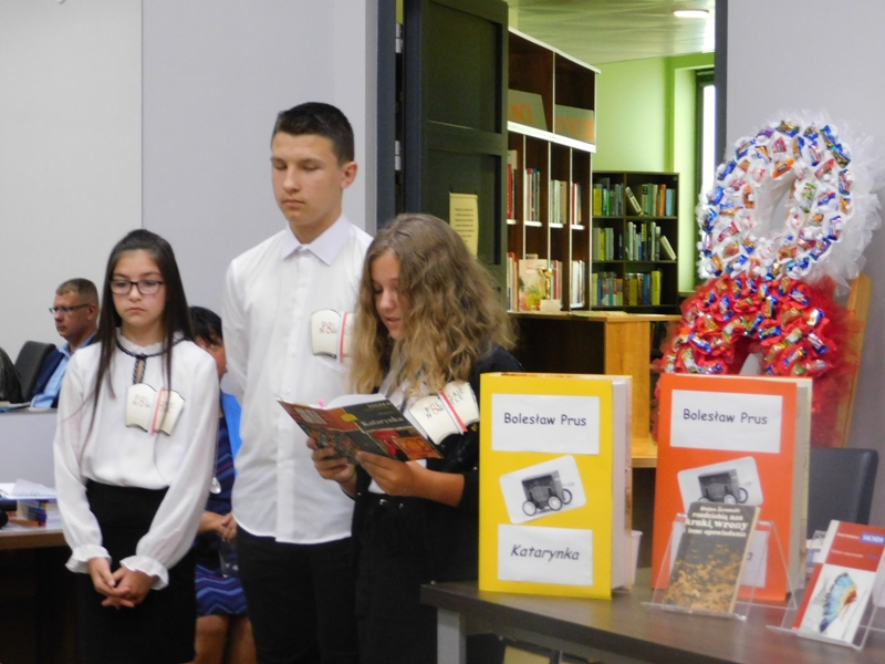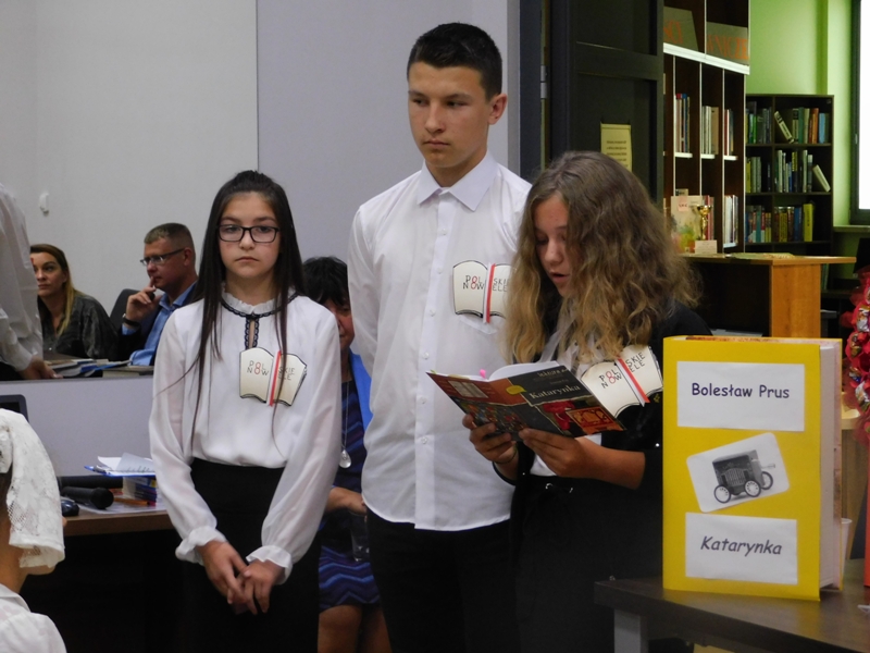 6 września br. uczniowie szkół z terenu gminy wzięli udział w akcji Narodowe Czytanie, która odbyła się w Gminnej Bibliotece Publicznej w Jedlińsku. Na zaproszenie pani dyrektor Bożeny Starzyńskiej do akcji włączyli się przedstawiciele władz Gminy Jedlińsk, tj. Wójt Gminy Jedlińsk pan Kamil Dziewierz, Przewodniczący Rady Gminy Jedlińsk pan Łukasz Kurek, Przewodnicząca Komisji Polityki Socjalnej pani Magdalena Trzmiel-Wieteska oraz pan Henryk Krzak. PSP im. Jana Pawła II w Ludwikowie reprezentowali: Karolina Michałowska (klasa VI), Wiktoria Ofiara (klasa VII), Mateusz Kowalczyk (klasa VIII). Uczniowie przeczytali trzy fragmenty jednej z najbardziej znanych nowel Bolesława Prusa – Katarynka. Do wystąpienia przygotowała ich pani Beata Nowak – nauczyciel języka polskiego.