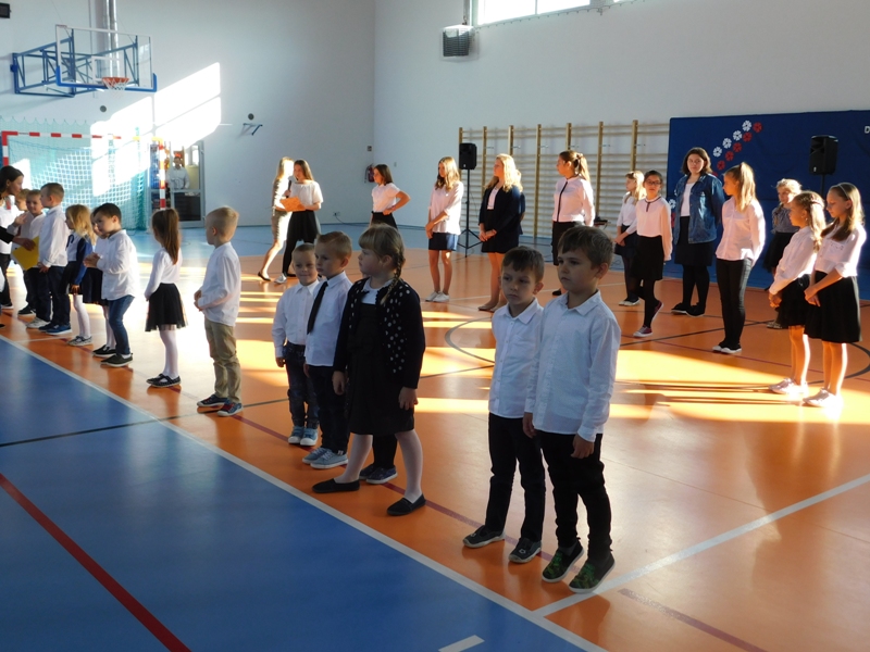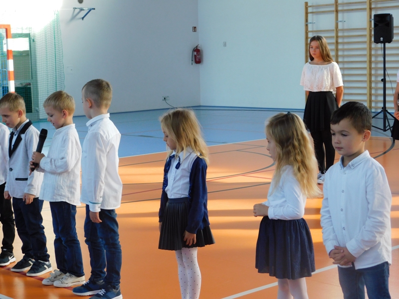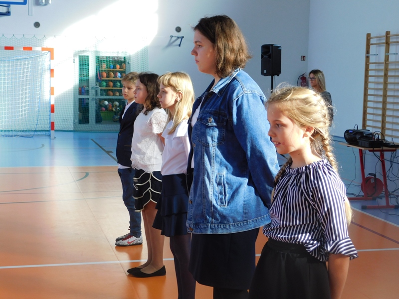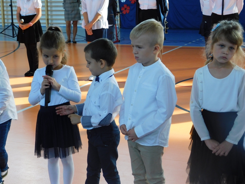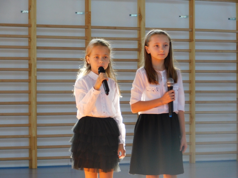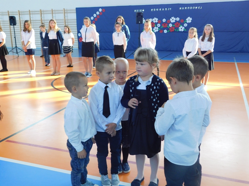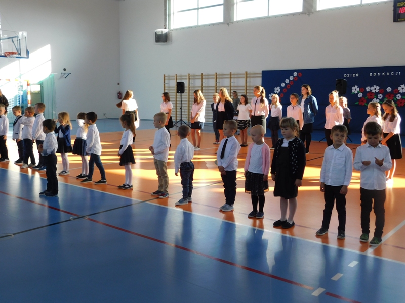 Życzenia dla pracowników pedagogicznych i niepedagogicznych szkoły złożyła Dyrektor Szkoły pani Małgorzata Sobień i przewodnicząca Rady SU Zuzanna Dudzik. Następnie uczniowie przybliżyli zgromadzonym genezę DEN. Dzień Edukacji Narodowej - zwany potocznie Dniem Nauczyciela - obchodzony jest w rocznicę powstania 14 października 1773 r. Komisji Edukacji Narodowej, pierwszego w Europie ministerstwa oświaty, która zajęła się reformowaniem szkolnictwa w Polsce.