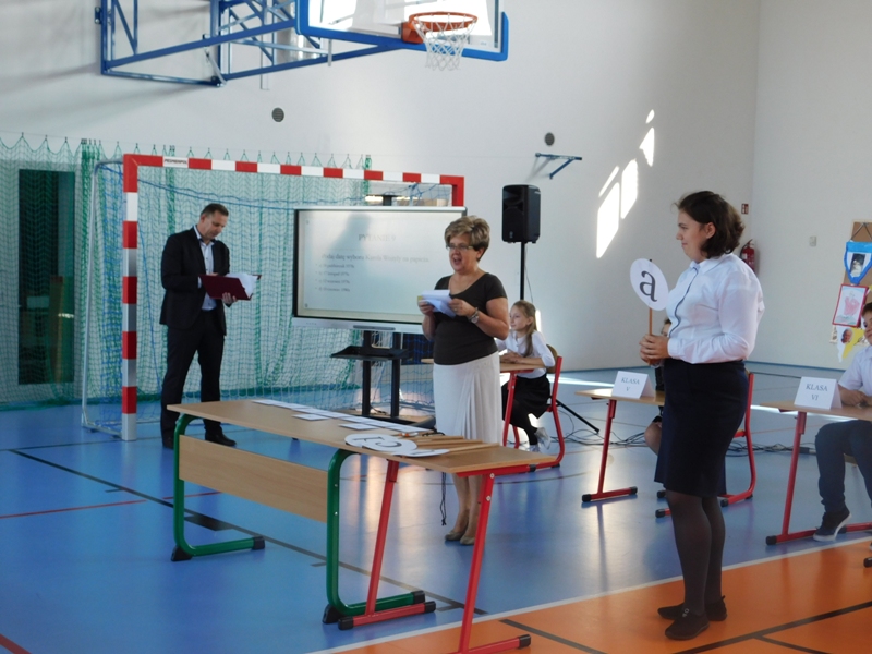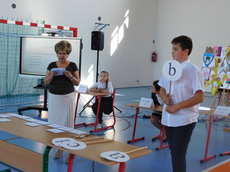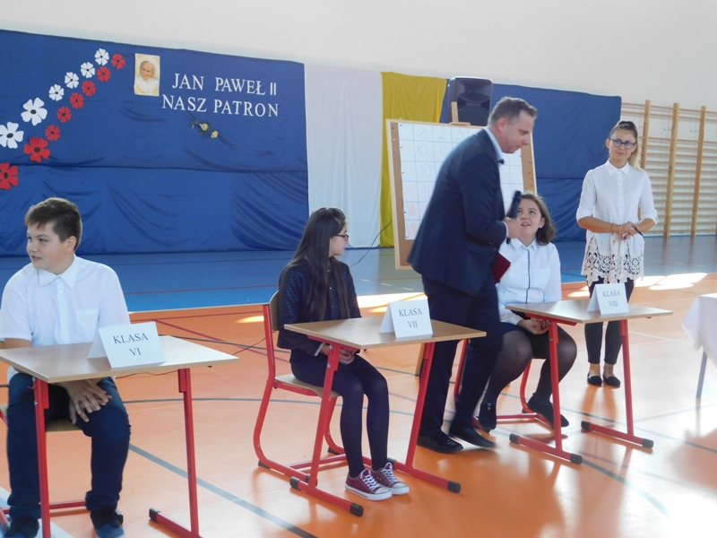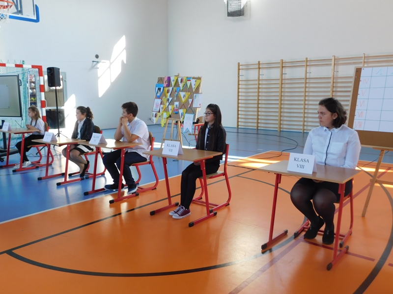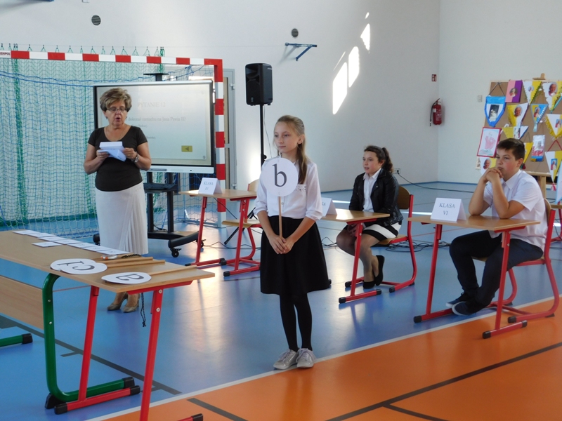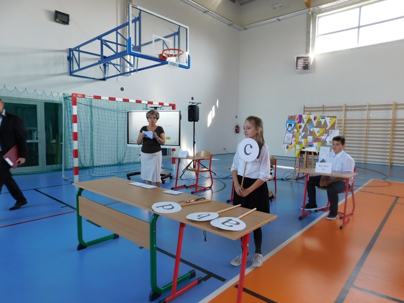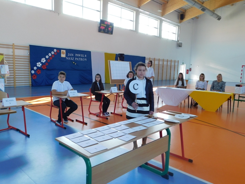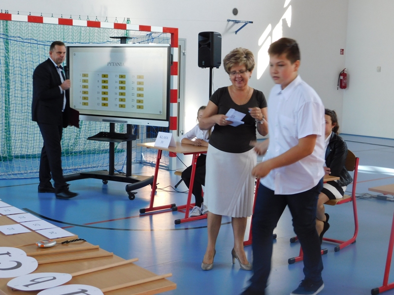 Na pytania konkursowe odpowiadali uczniowie, po jednym przedstawiciele klas IV-VIII.