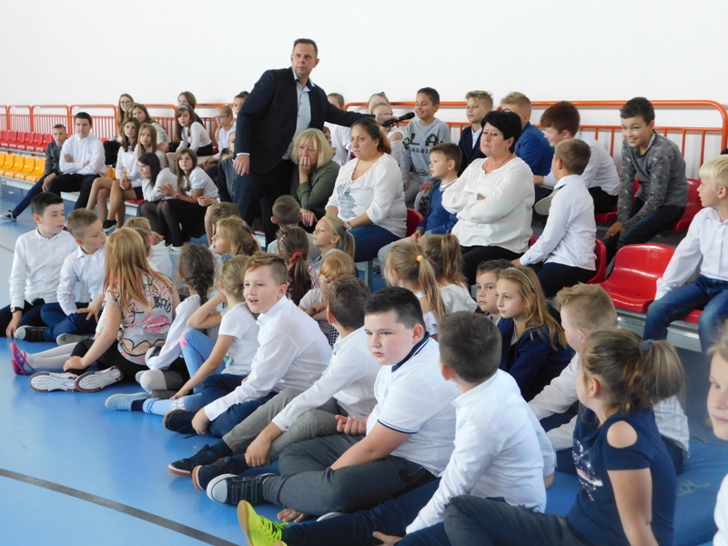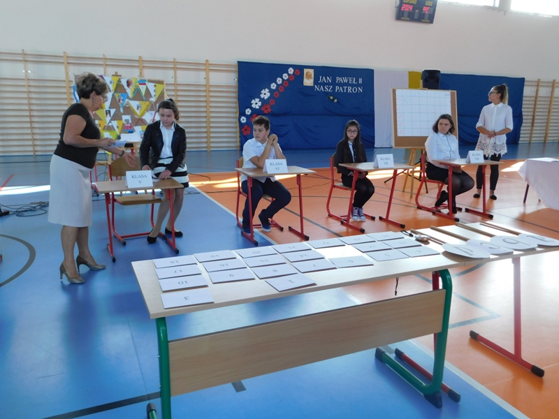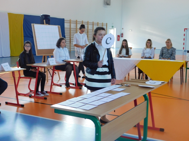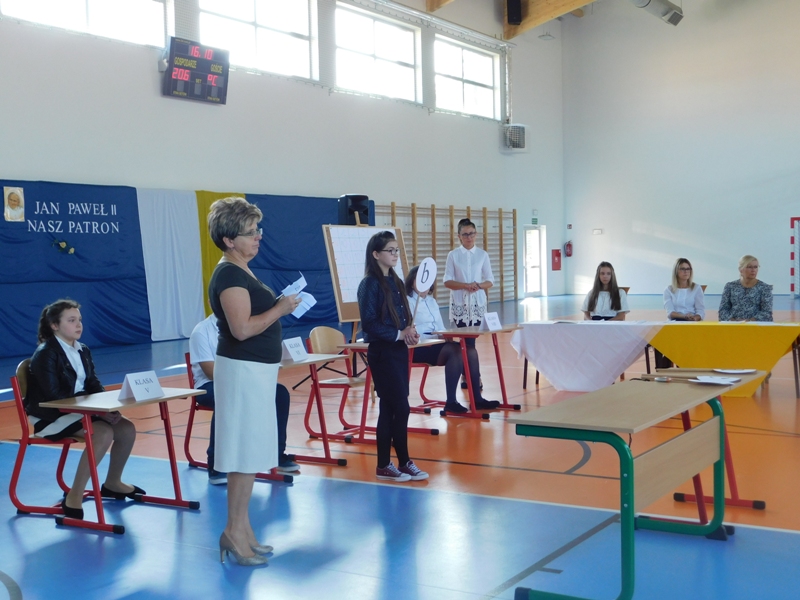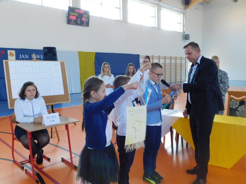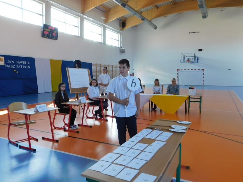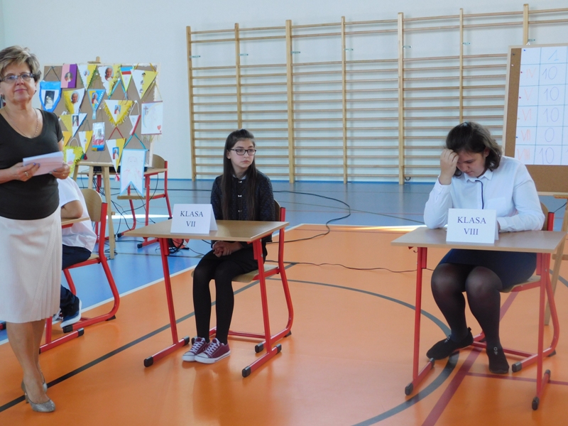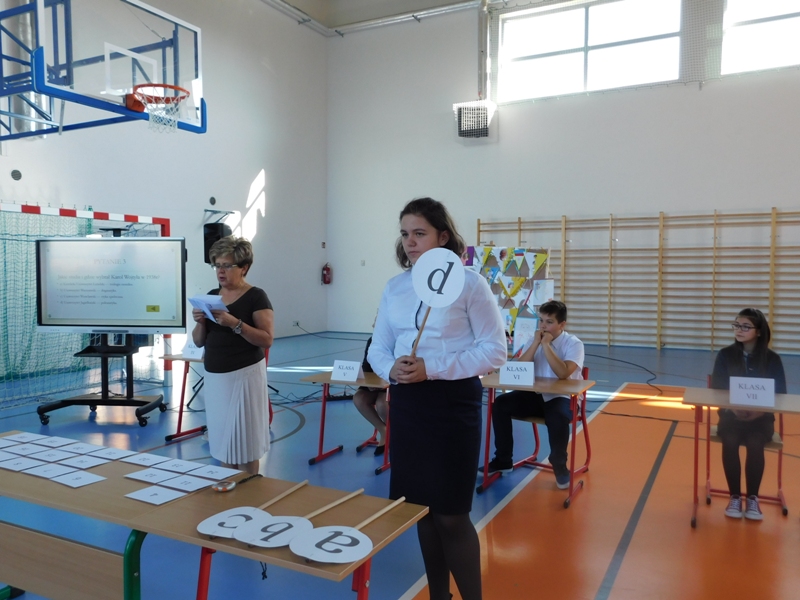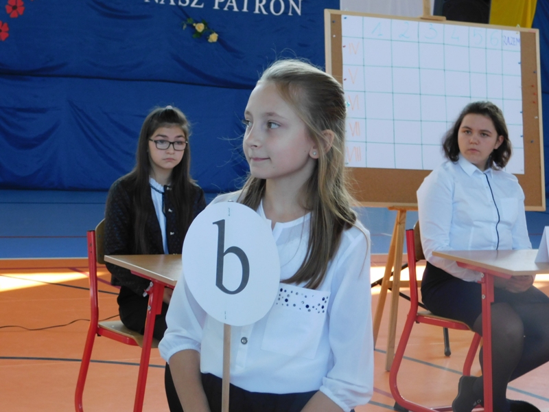 Na pytania konkursowe odpowiadali uczniowie, po jednym przedstawiciele klas IV-VIII.