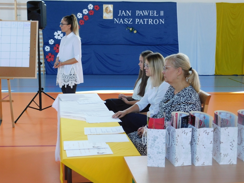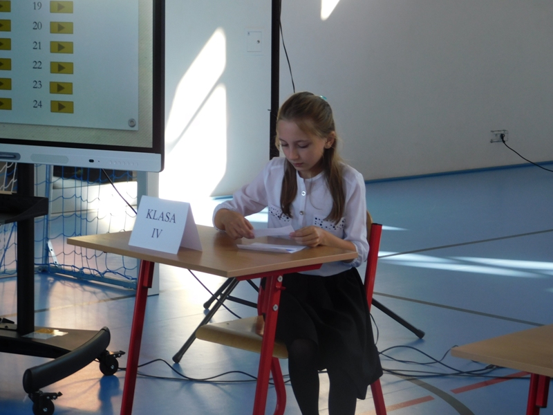 Pierwsze miejsce zdobyła uczennica klasy VIII – Wiktoria Bogacz; drugie miejsce uczennica klasy V – Antonina Tkaczyk; trzecie miejsce ex aequo uczennica klasy IV – Julia Walczak i uczeń klasy VI – Jakub Cieślak; czwarte miejsce uczennica klasy VII- Wiktoria Ofiara.