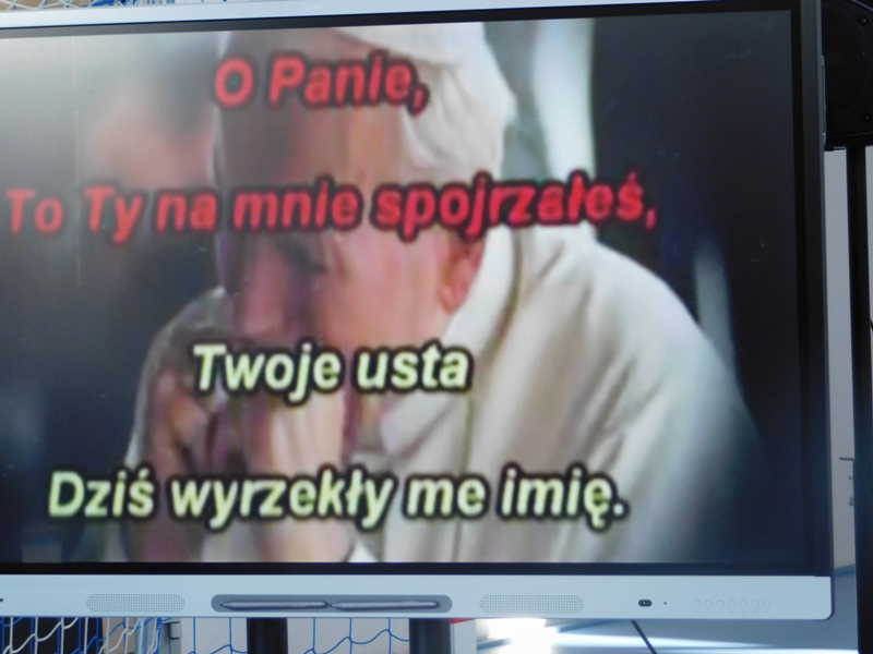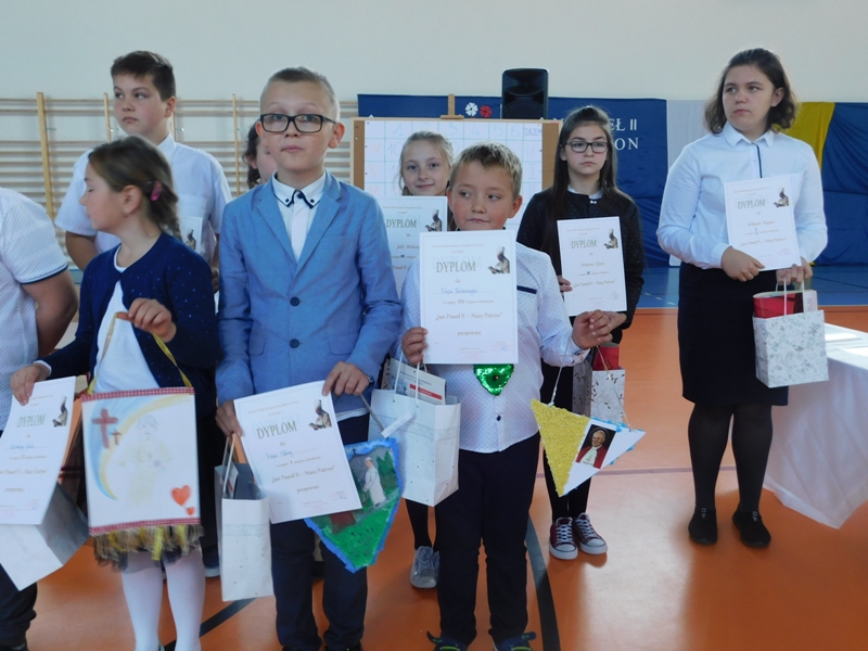 W czasie, gdy Komisja pracowała nad sumowaniem wyników konkursu wiedzy o Janie Pawle II, rodzeństwo Wiktoria i Kacper Bujanowicz oraz wszyscy uczniowie i nauczyciele, na stojąco, zaśpiewali ulubioną pieśń Jana Pawła II ,,Barkę”.