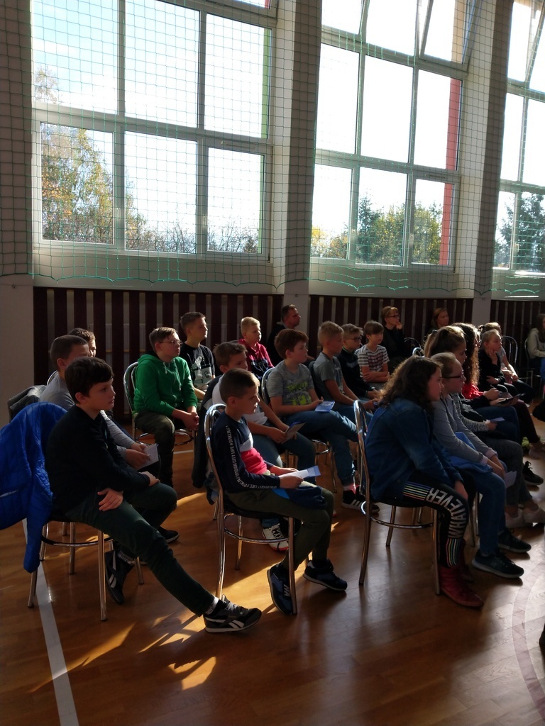 W dniu 17 października 2019r. uczniowie klas V i VII wzięli udział w Artystycznym Programie Profilaktyki Uzależnień pt. „Bądź sobą. Nie daj się wysterować na minę” przedstawionym przez grupę ANTYMINA w Zespole Szkolno-Przedszkolnym w Jedlińsku. Używając przekazu słowno-muzycznego panowie- terapeuci opowiedzieli o konsekwencjach uzależnień oraz podali kilka czynników, które pozwolą nam się przed nimi chronić. Między innymi są to: właściwa więź emocjonalna z rodzicami; rozwijanie zainteresowań, pasji; przynależność do pozytywnej grupy rówieśniczej; regularne praktyki religijne.