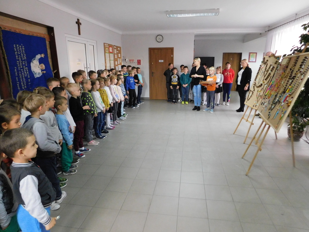 Dnia 7 listopada 2019 r. odbyło się uroczyste podsumowanie Szkolnego Konkursu Plastycznego pt :,, Różaniec’’. W konkursie wzięło udział 20 uczniów, którzy wykonali swe prace z przeróżnych materiałów. Organizator konkursu pani Katarzyną Pękacką wręczyła zwycięzcom pamiątkowe dyplomy oraz słodkie upominki ufundowane przez ks. Andrzeja Dwojakowskiego - proboszcza parafii w Jankowicach. Na zakończenie Dyrektor Szkoły pani Małgorzata Sobień pogratulowała nagrodzonym i wyróżnionym dzieciom życząc dalszych sukcesów.