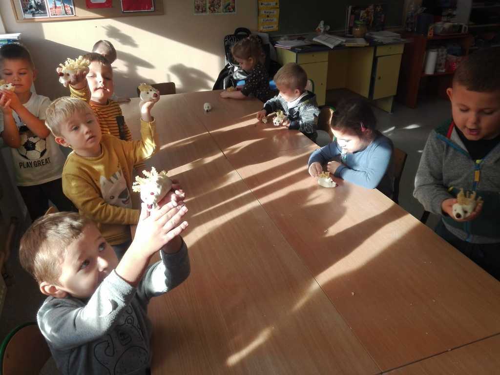 W naszym oddziale przedszkolnym odbyły się zajęcia z okazji Dnia Jeża. Dzieci poznały zwyczaje tego zwierzątka. Dowiedziały się, jakie są jego przysmaki, co robi, jak się czegoś boi i jakie jest jego środowisko przyrodnicze. Następnie wykonaliśmy jeże z masy solnej i makaronu. Dzieci z zachwytem i zaangażowaniem mieszały masę solną. Maluszki świetnie poradziły sobie z odzwierciedleniem kształtu jeżyka. Przy wykonywaniu takiej pracy było dużo świetnej zabawy.