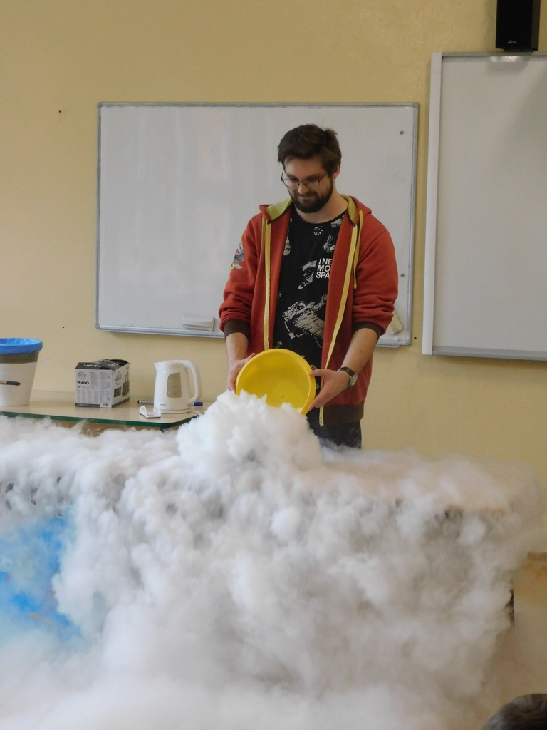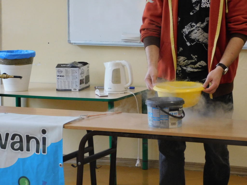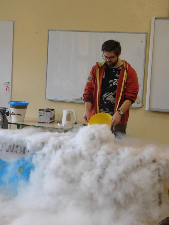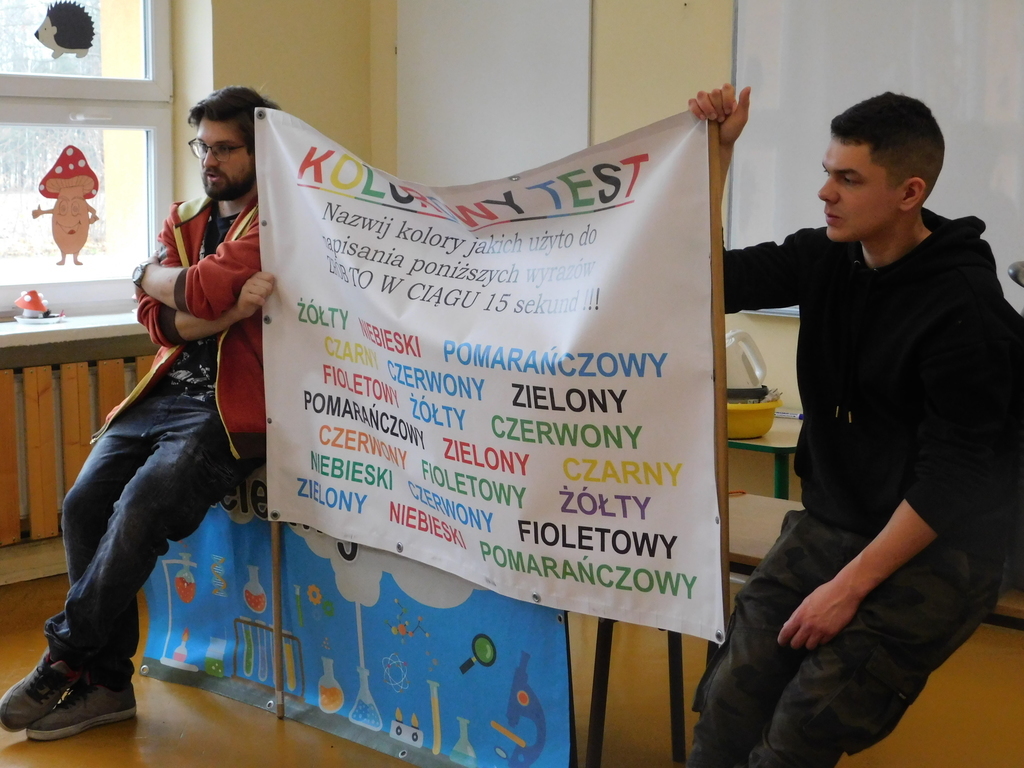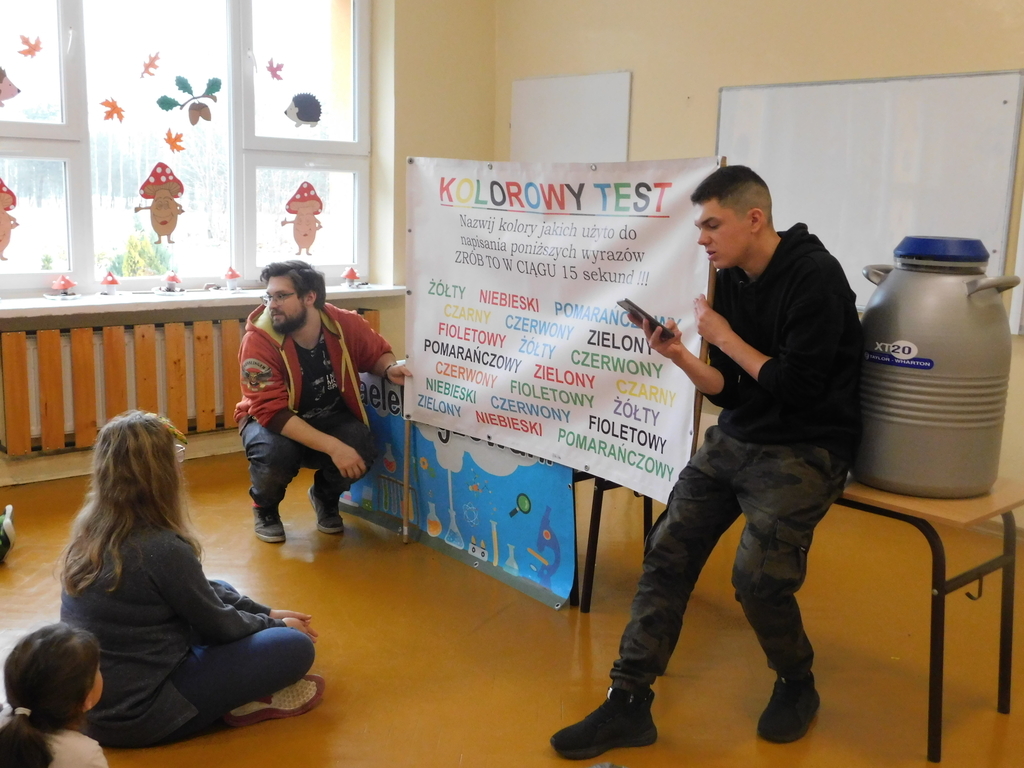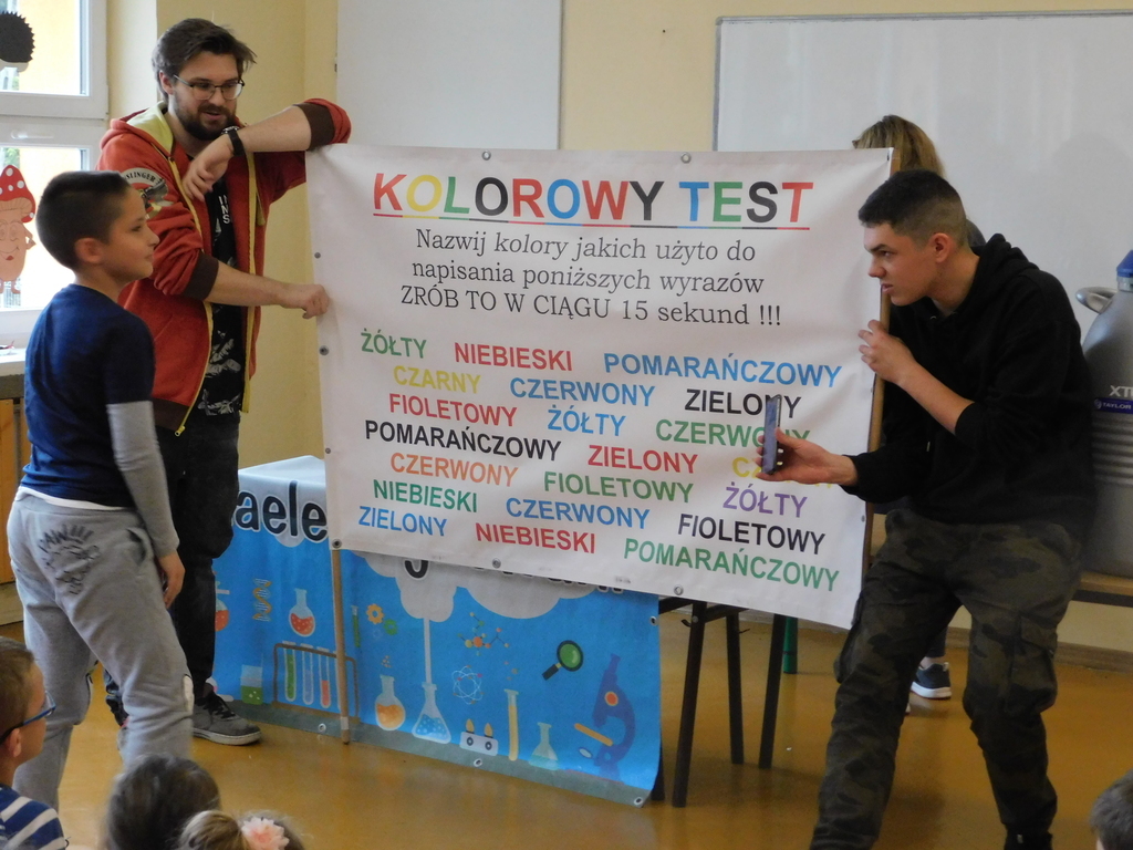 Podczas tej niecodziennej lekcji nasi goście zaprezentowali widowiskowe eksperymenty i doświadczenia związane z naukami przyrodniczymi. Wśród nich znalazły się: wybuchowa zabawa z wodorem, oddziaływanie helu na nasz głos, kolorowy test .