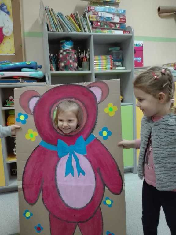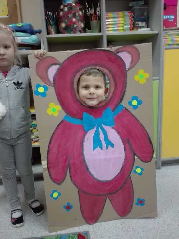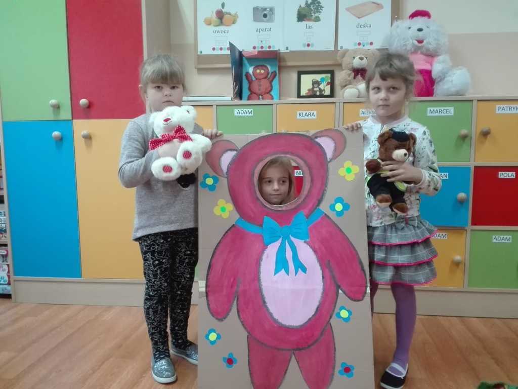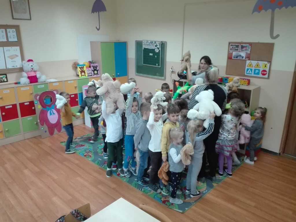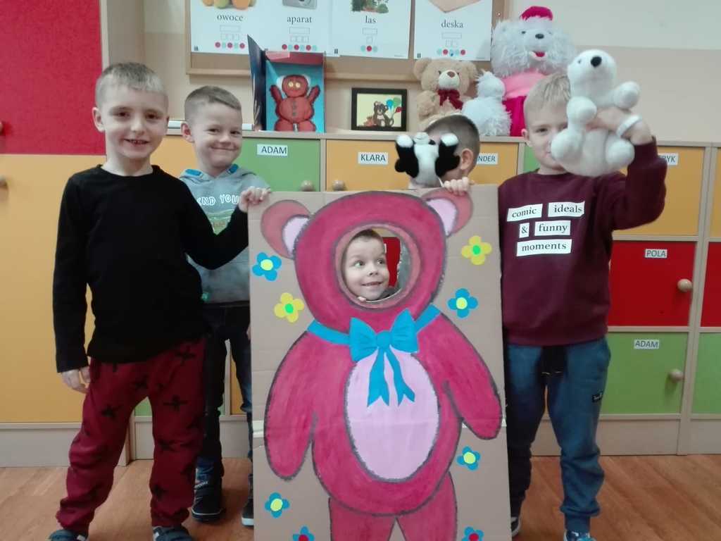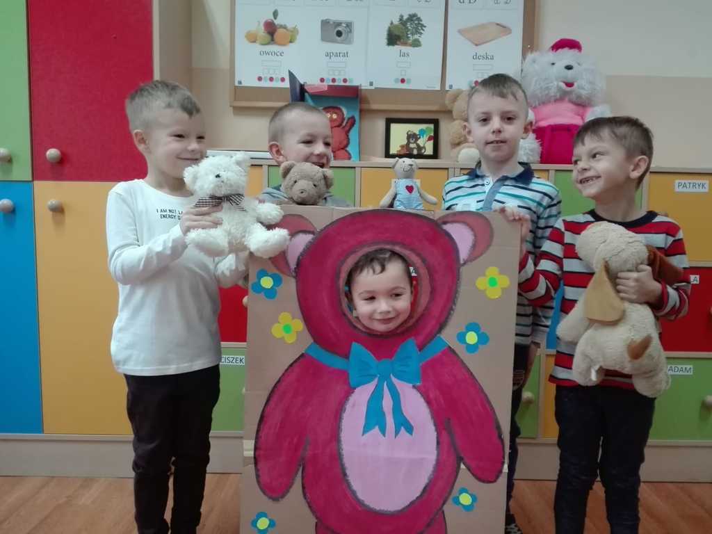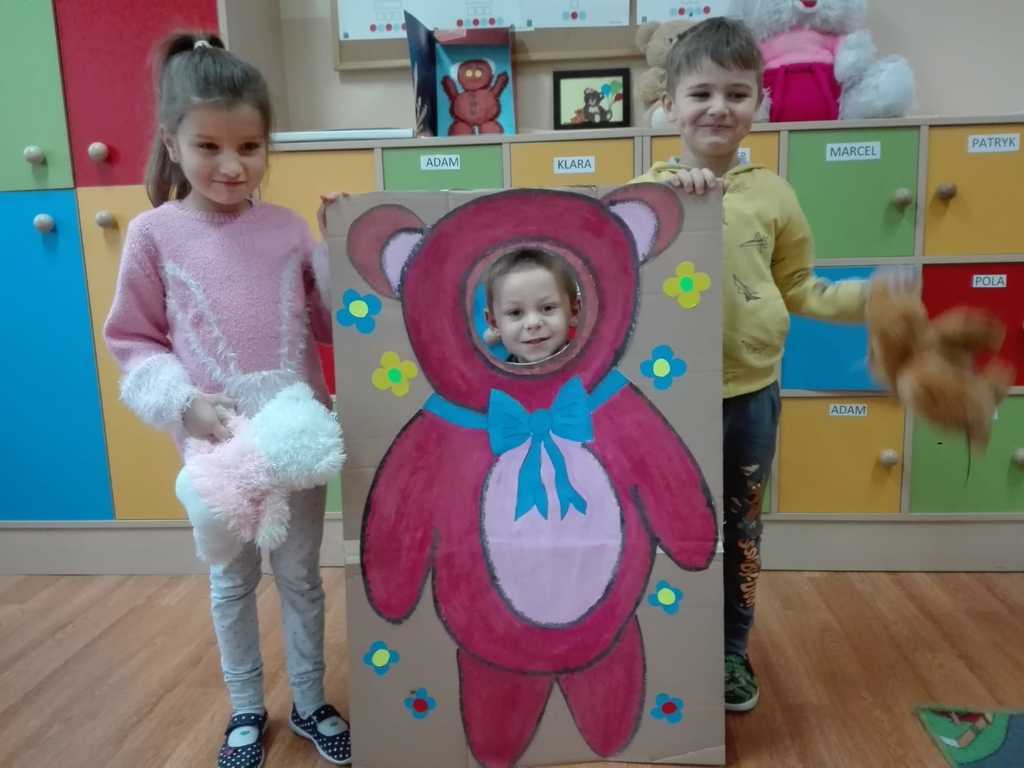 Z tej okazji dzieci przyszły w towarzystwie swoich przytulanek.Wesołą zabawę rozpoczęliśmy od przywitania przybyłych dzieci z ich przyjaciółmi – misiami. Tego dnia „Misie” i „Wesołe Żuczki” poznały historię święta, pojawiła się misiowa fotobudka, były tańce z maskotkami. Dzieci wysłuchały również opowiadania o misiu.
