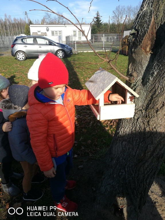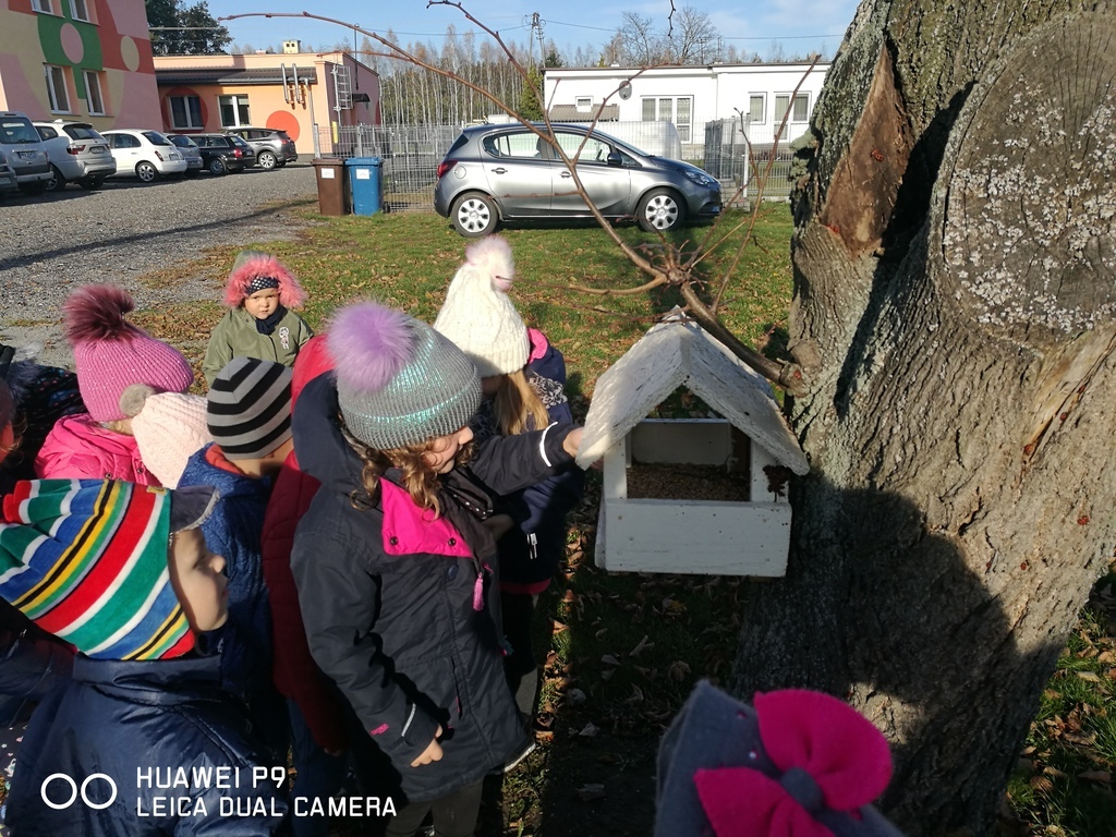 Zbliżająca się zima to trudny czas dla ptaków. O skrzydlatych przyjaciołach co roku pamiętają nasze przedszkolaki. Dzieci zawiesiły na drzewie słoninę dla sikorek i wrzuciły różne ziarenka do karmnika. Dzięki takiemu doświadczeniu dzieci uwrażliwiają się na przyrodę oraz odczuwają potrzebę pomagania.
