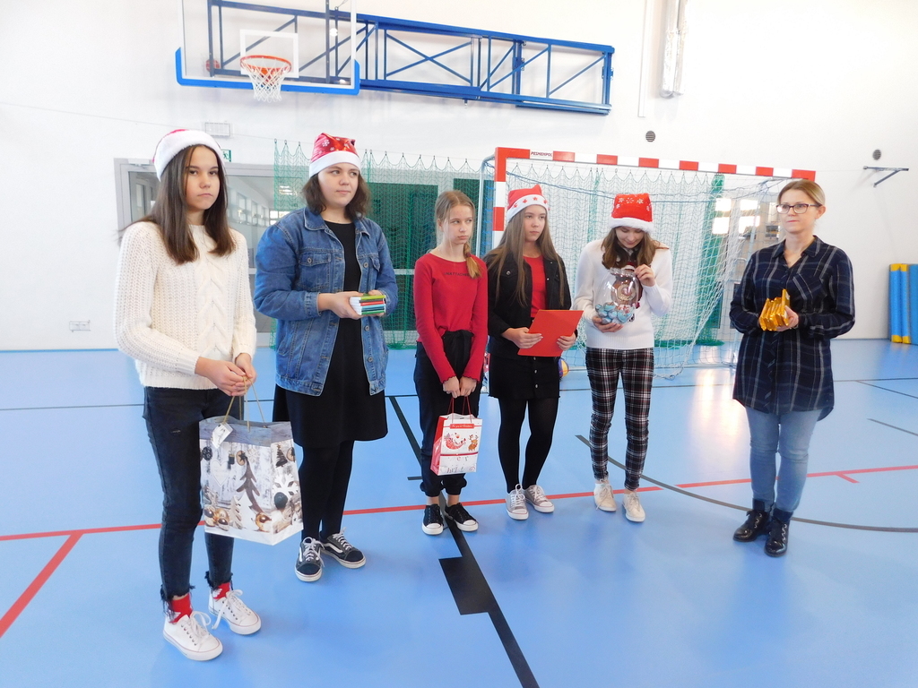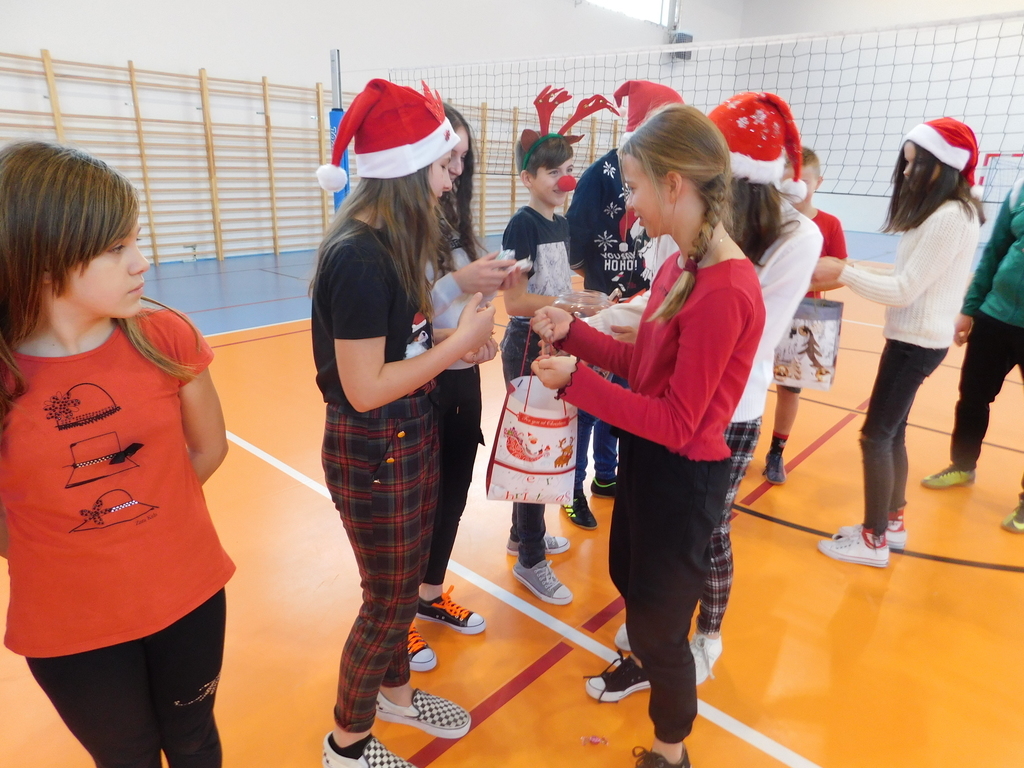 Mikołajki to, niewątpliwie, najbardziej lubiane przez dzieci (małe i duże) święto. W naszej szkole za organizację tego niezwykłego dnia odpowiedzialny jest SU. Zgodnie z tradycją uczniowie przychodzą do szkoły w czerwonych strojach ze świątecznymi motywami. W tym roku szczególnie modne były spektakularne nakrycia głowy – migoczące czapki, rogi, a nawet świąteczne stroiki. Wszyscy uczniowie otrzymali słodkie podarunki od Rady Rodziców, której składamy serdeczne podziękowania. Niektóre klasy zorganizowały losowanie, aby obdarzyć swoje koleżanki i kolegów mikołajkowymi prezentami. Jedną z największych atrakcji dnia był Szkolny Turniej Mikołajkowy Piłki Siatkowej. Rywalizowały w nim trzy drużyny mieszane z klas V – VIII: