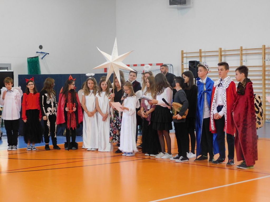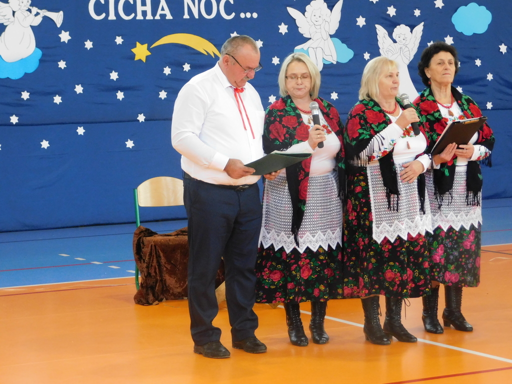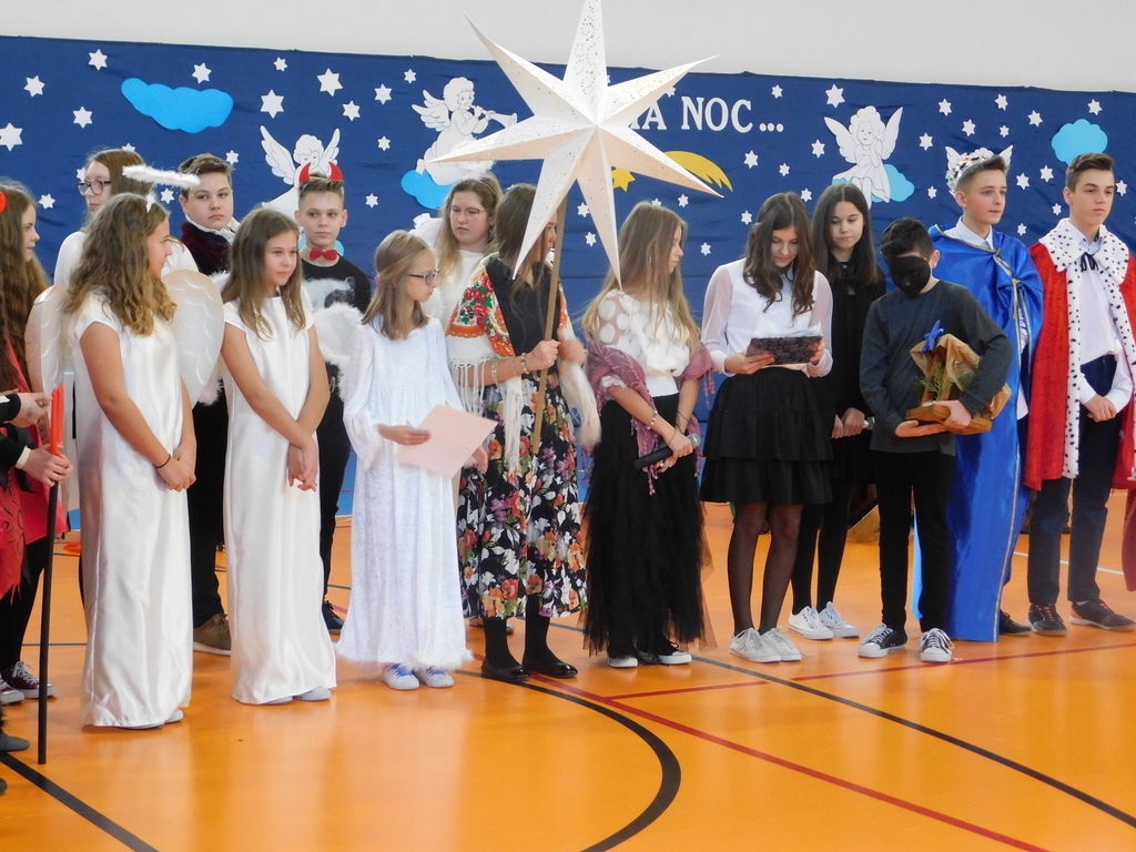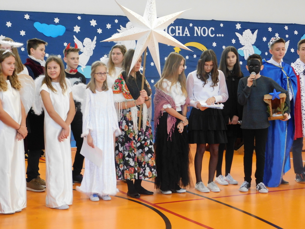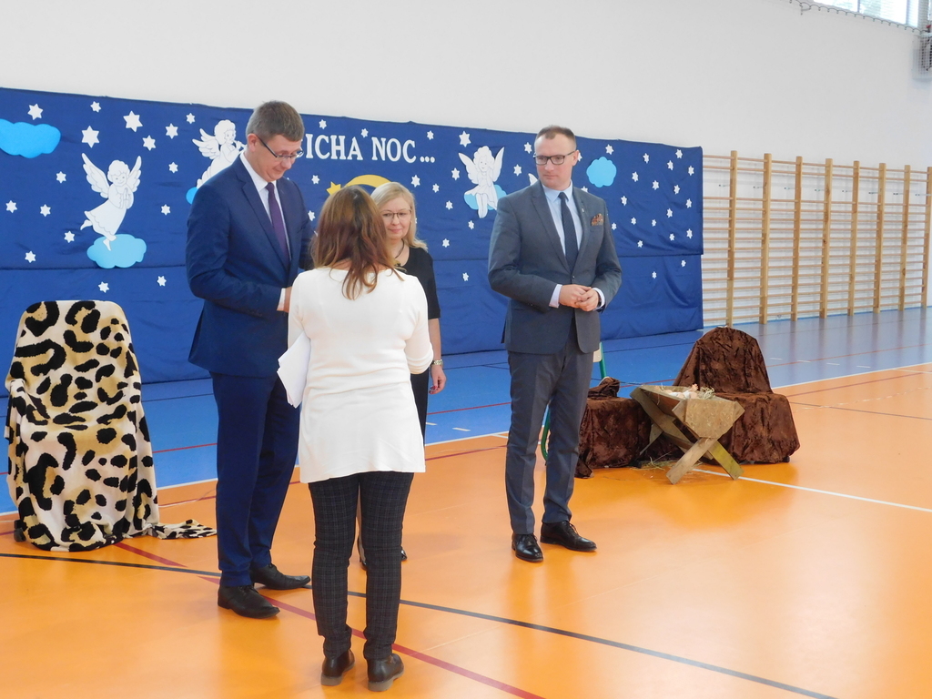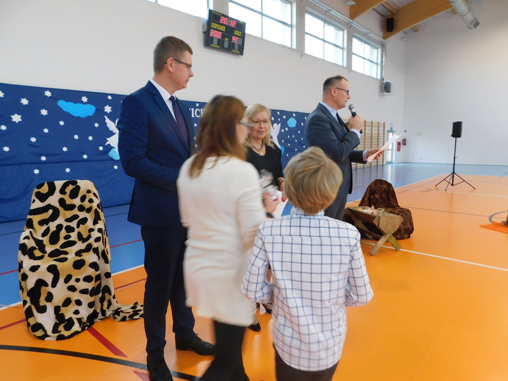 Zgodnie z tradycją naszej szkoły, ostatniego dnia przed zimową przerwą świąteczną, odbyły się Wigilie klasowe oraz przedstawienie jasełkowe. W bieżącym roku na nasze szkolne uroczystości przybyli wyjątkowi goście: pan Kamil Dziewierz Wójt Gminy Jedlińsk, pan Łukasz Kurek Przewodniczący Rady Gminy Jedlińsk, podopieczni DPS w Jedlance wraz z opiekunem oraz członkowie zespołu ludowego „Czerwone Korale”. Świąteczne spotkanie rozpoczęła Dyrektor Szkoły pani Małgorzata Sobień, która serdecznie powitała obecnych. W swoim przemówieniu przypomniała, iż szkolne spotkania wigilijne są wieloletnią tradycją PSP im. Jana Pawła II w Ludwikowie. Na zakończenie swojego wystąpienia złożyła wszystkim najserdeczniejsze życzenia świąteczne oraz noworoczne.