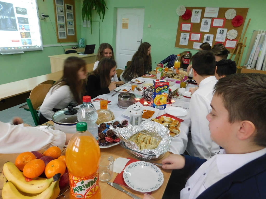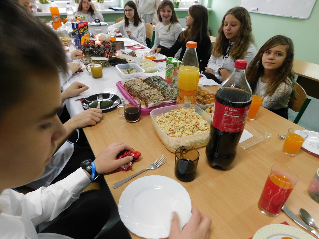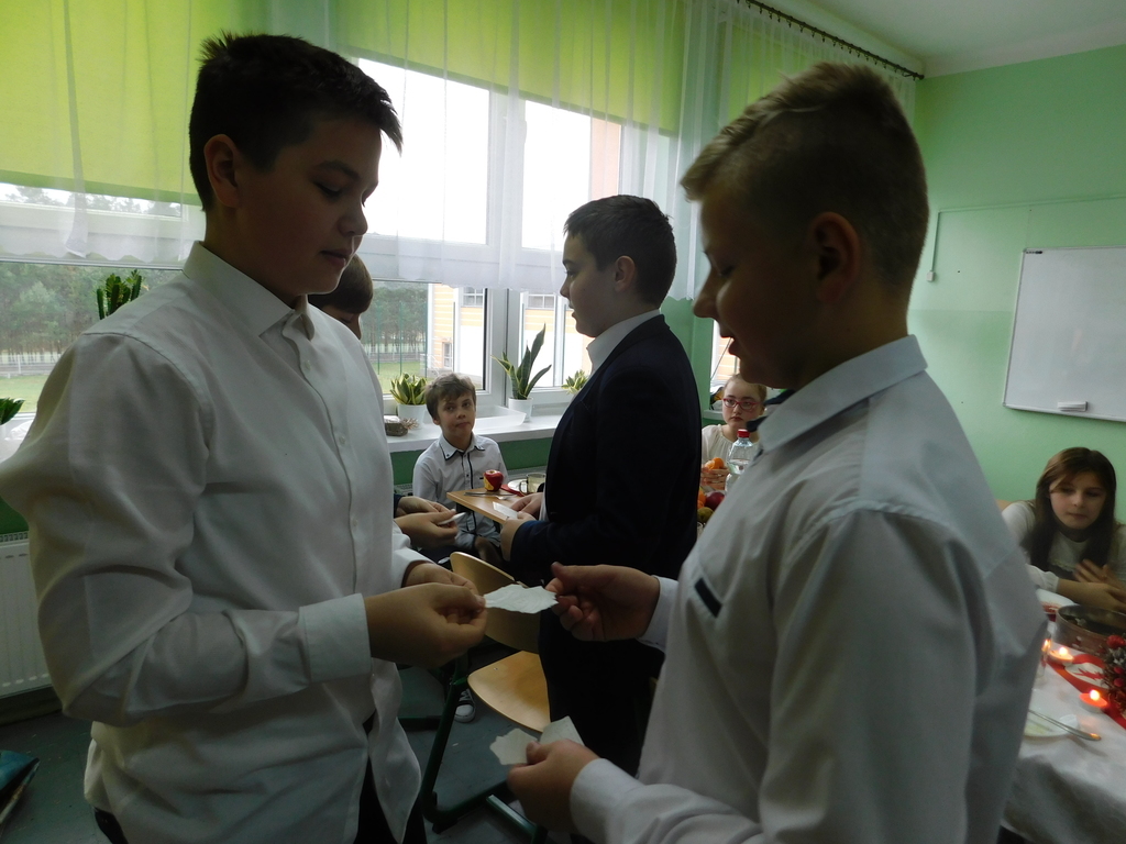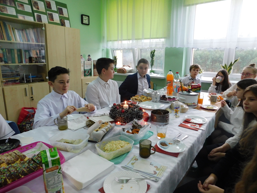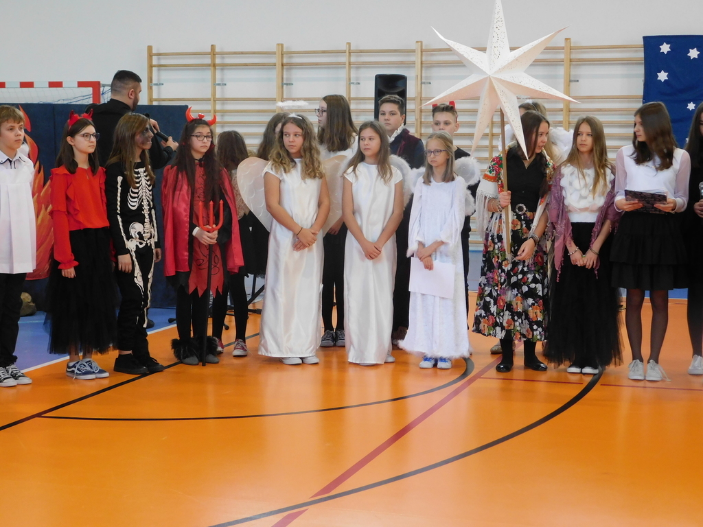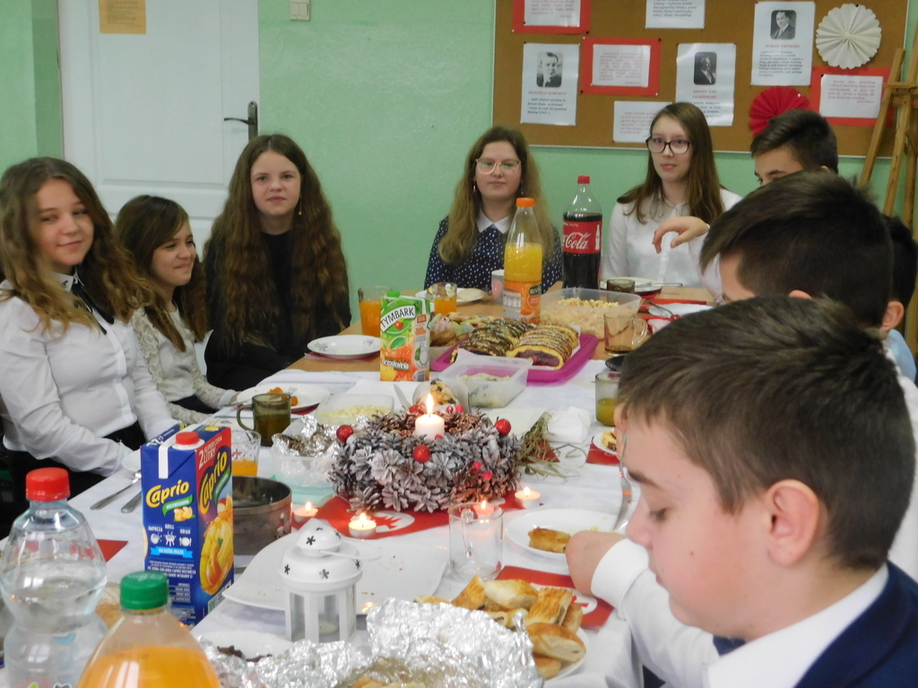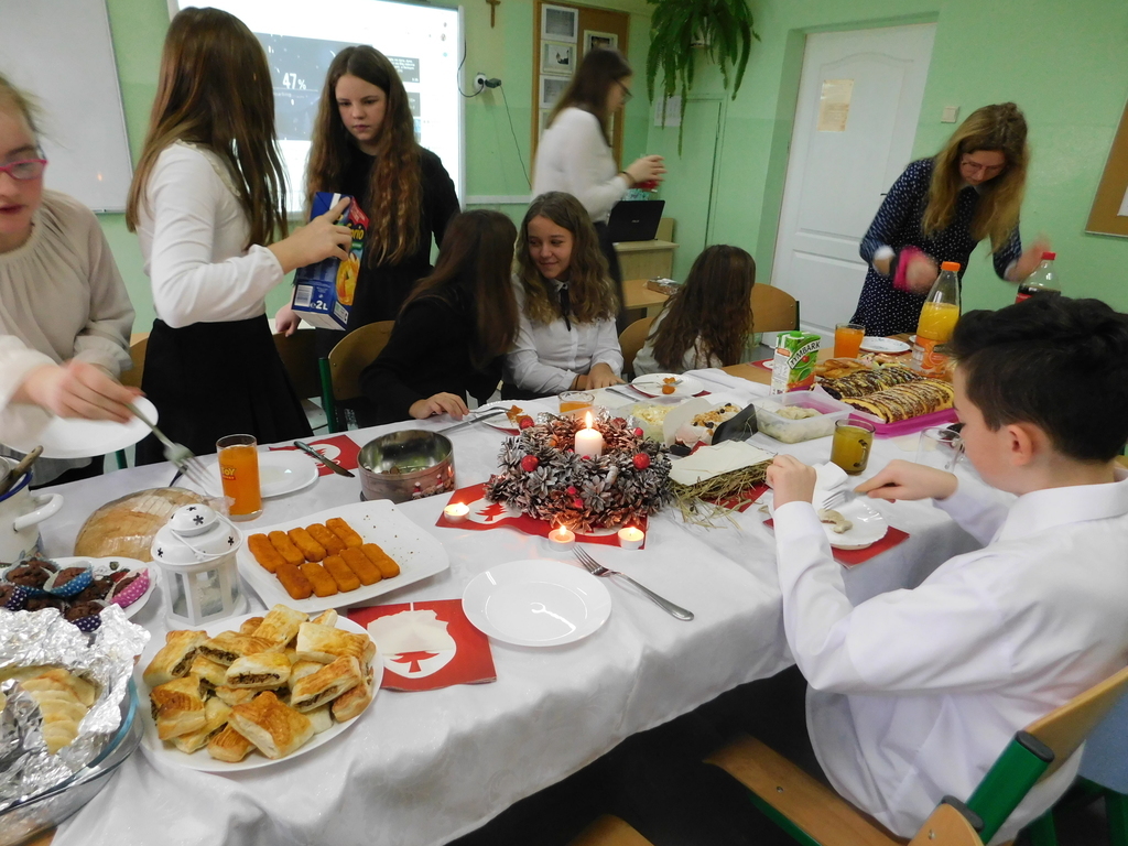 Zgodnie z tradycją naszej szkoły, ostatniego dnia przed zimową przerwą świąteczną, odbyły się Wigilie klasowe oraz przedstawienie jasełkowe. W bieżącym roku na nasze szkolne uroczystości przybyli wyjątkowi goście: pan Kamil Dziewierz Wójt Gminy Jedlińsk, pan Łukasz Kurek Przewodniczący Rady Gminy Jedlińsk, podopieczni DPS w Jedlance wraz z opiekunem oraz członkowie zespołu ludowego „Czerwone Korale”. Świąteczne spotkanie rozpoczęła Dyrektor Szkoły pani Małgorzata Sobień, która serdecznie powitała obecnych. W swoim przemówieniu przypomniała, iż szkolne spotkania wigilijne są wieloletnią tradycją PSP im. Jana Pawła II w Ludwikowie. Na zakończenie swojego wystąpienia złożyła wszystkim najserdeczniejsze życzenia świąteczne oraz noworoczne.
