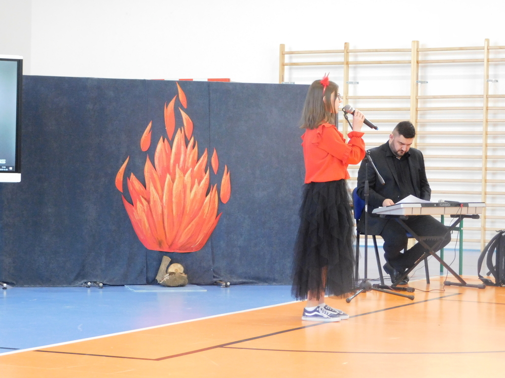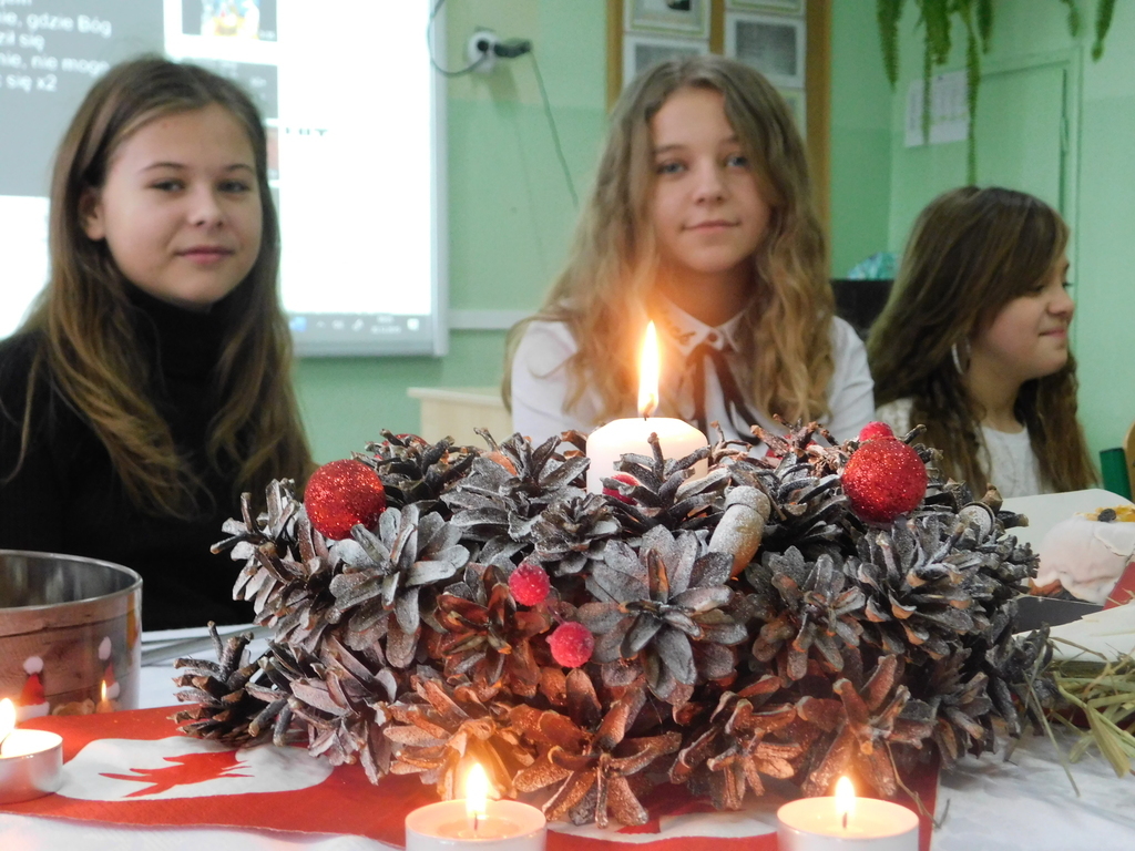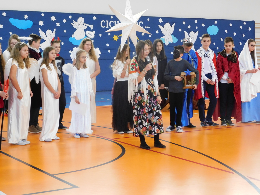 w tym roku zajęła II miejsce w konkursie gminnym „Kolędy i Pastorałki”. Uczennicę do udziału w konkursie przygotował pan Dariusz Makarewicz. Przepiękną dekorację zaprojektowała i wykonała pani Teresa Leśniewska wraz z uczniami klas starszych.