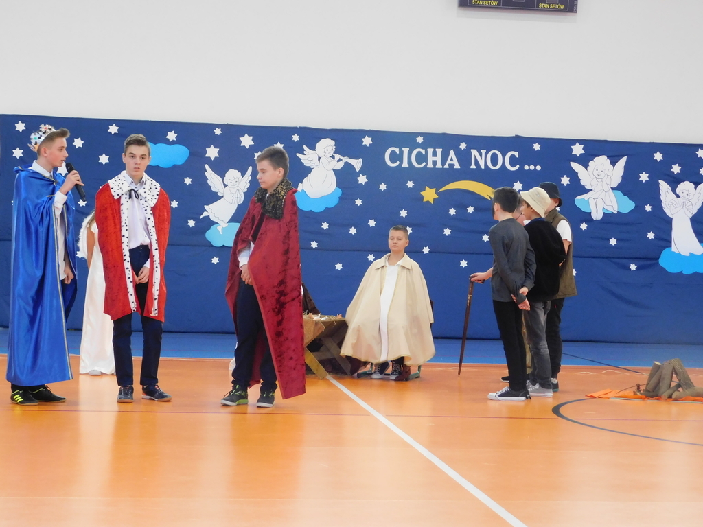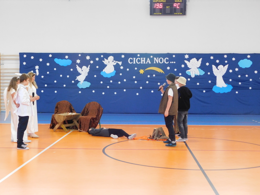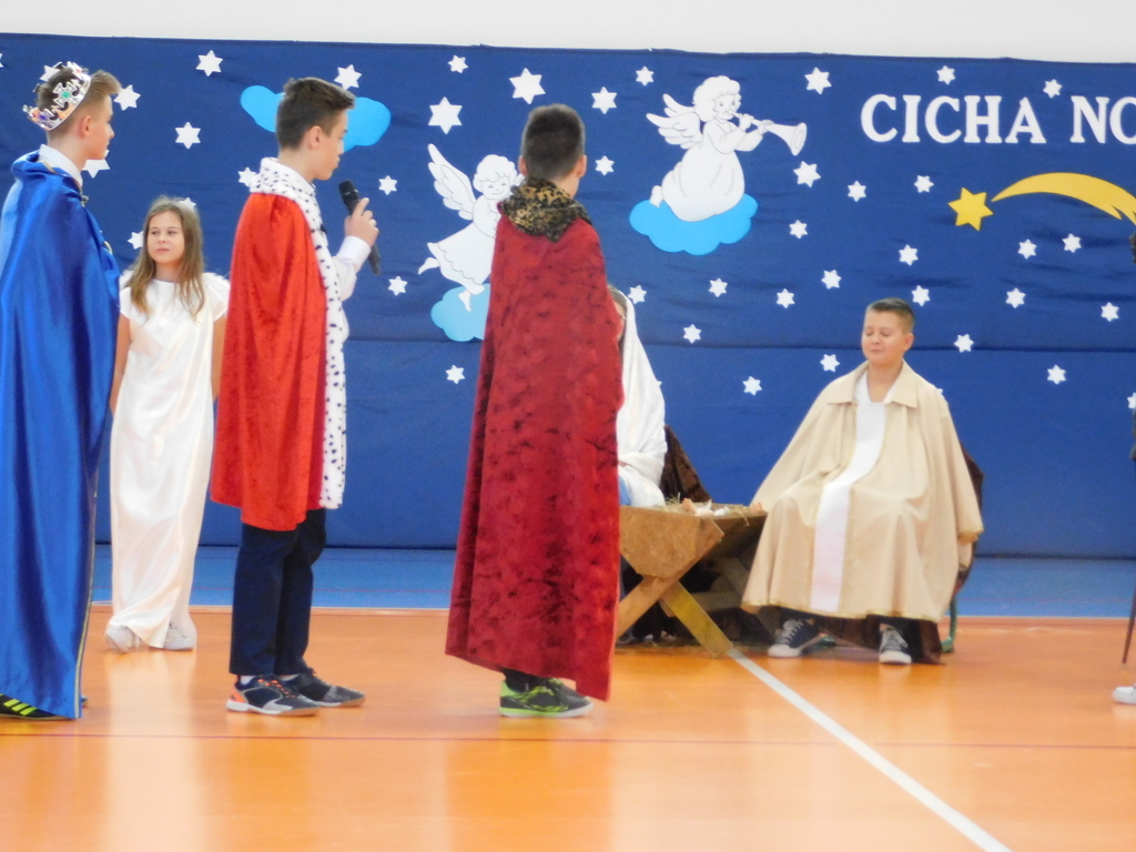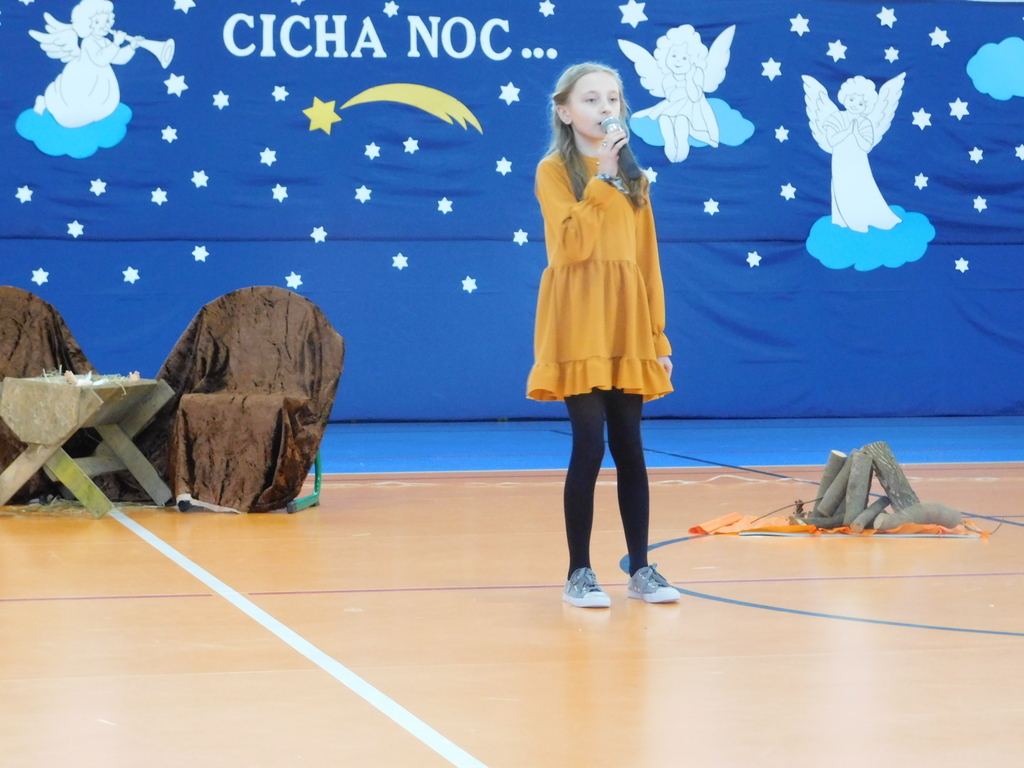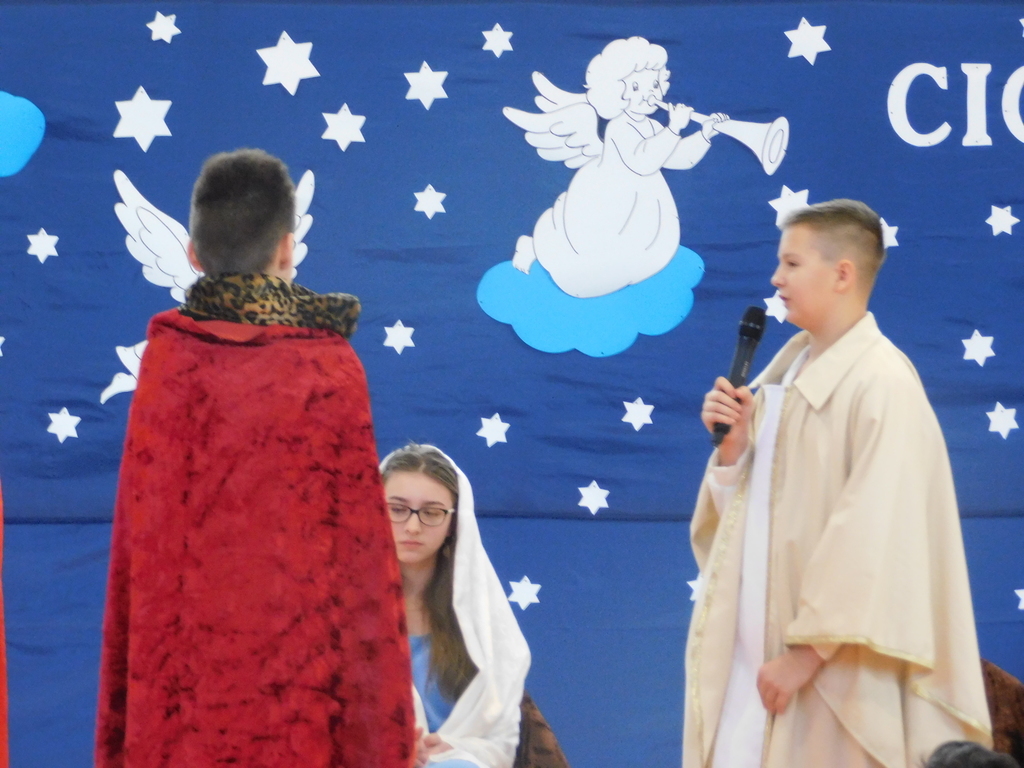 Następnie odbyły się jasełka, które przygotowali uczniowie klas IV, VII i VIII pod kierunkiem pani Beaty Nowak i pana Dariusza Makarewicza. Wzruszającą kolędę „Nie było miejsca dla Ciebie” śpiewała Julia Walczak, która
