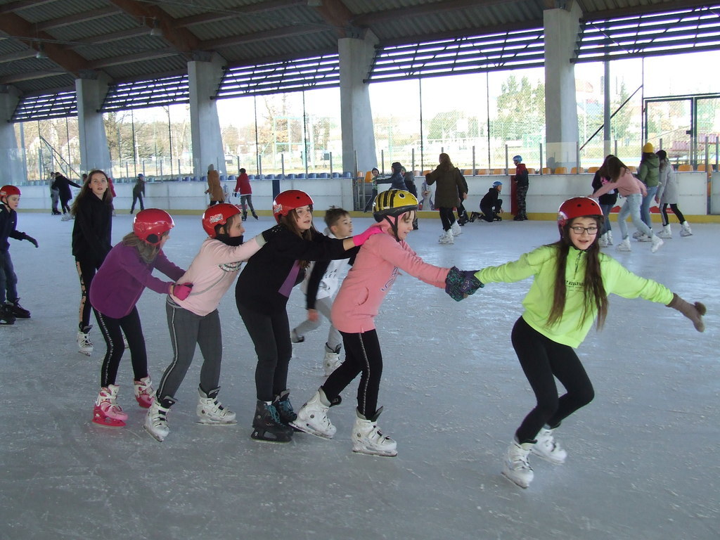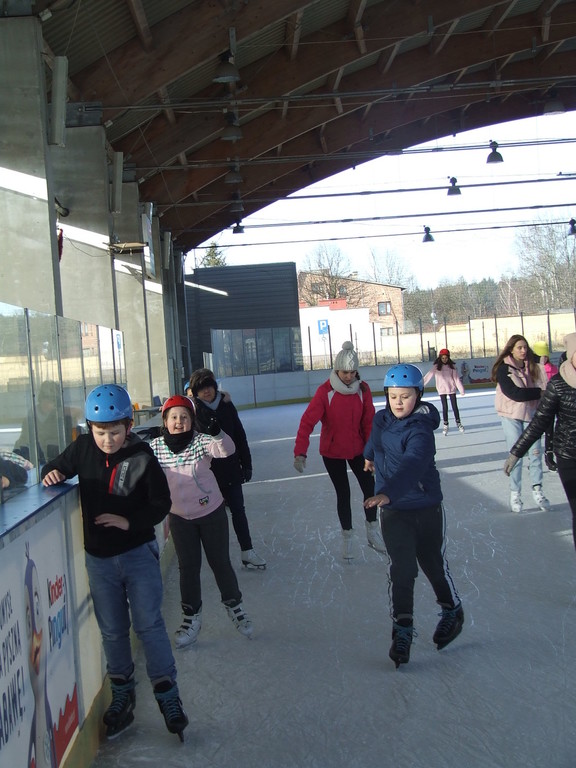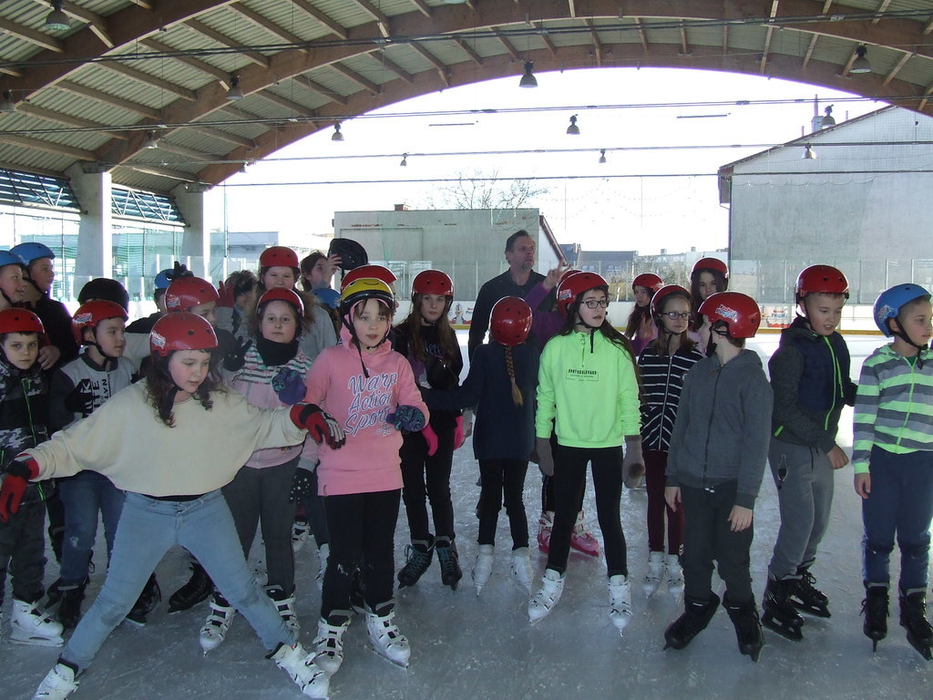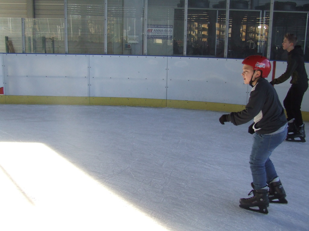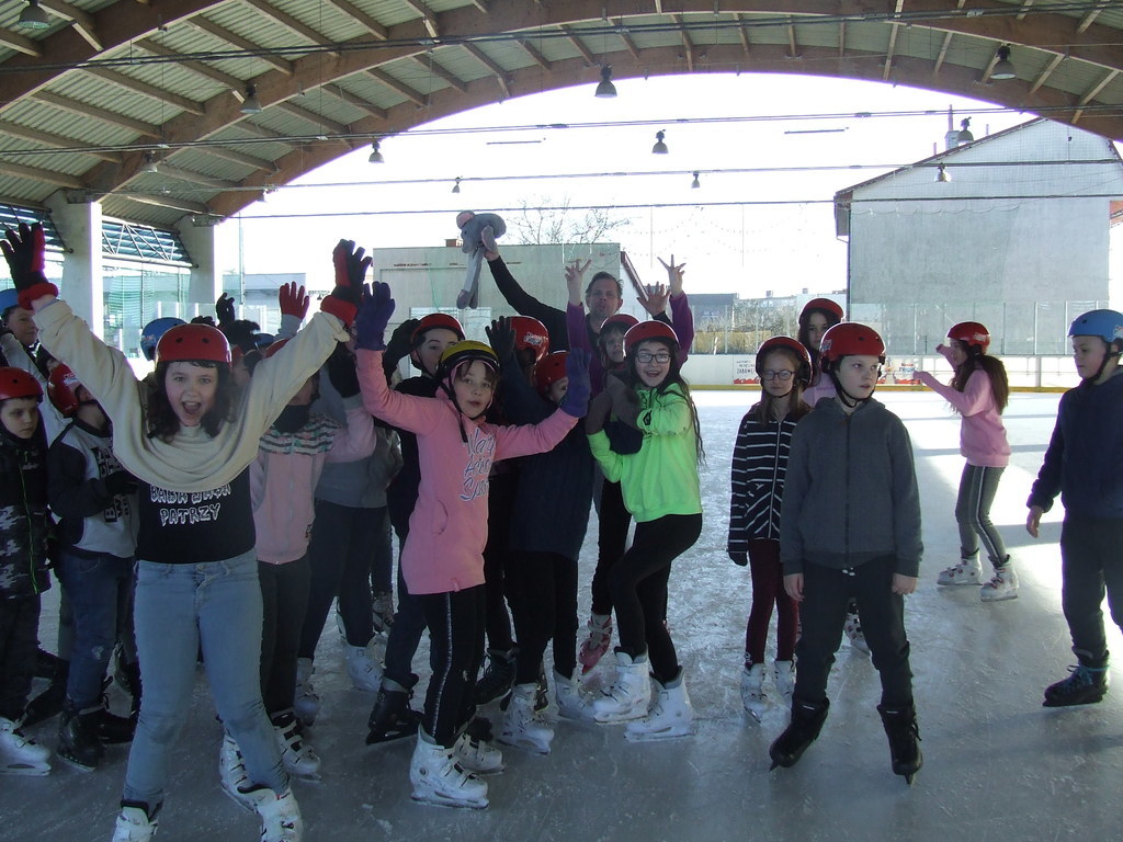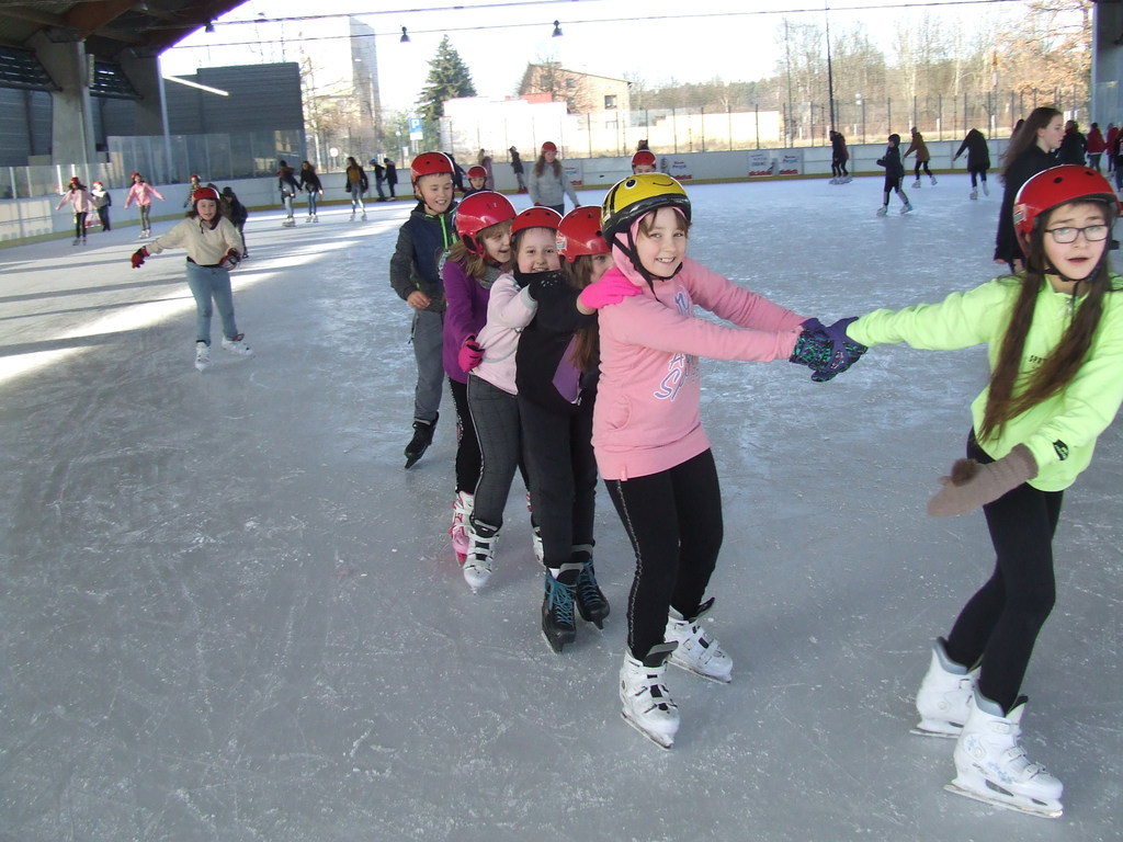 W dniu 15 stycznia 2020 roku uczniowie naszej szkoły z klas: V,VI,VII, pod opieką mgr Barbary Piaseckiej i mgr Pawła Zegarka wyjechali na lodowisko w Skarżysku Kamiennej, w ramach realizacji programu nauczania wychowania fizycznego. Uczniowie naszej szkoły po raz pierwszy zobaczyli lodowisko z prawdziwego zdarzenia, na którym mogli spróbować własnych możliwości. Po fizycznym przygotowaniu – założenie łyżew i kasku – trzeba było zdobyć się na odwagę i jak najszybciej wejść na lód. Przy pomocy opiekunów cała grupa, w krótkim czasie, znalazła się na tafli lodowej. Wszyscy świetnie się bawili. Nawet upadki, które się zdarzały, były elementem dobrej zabawy.