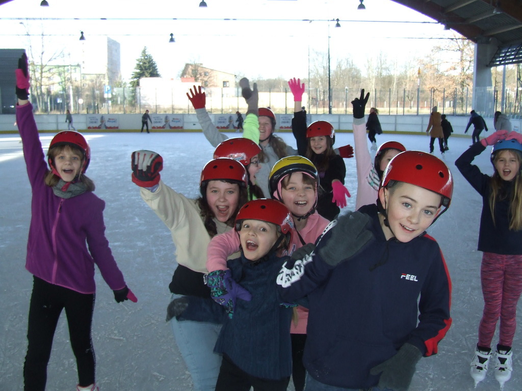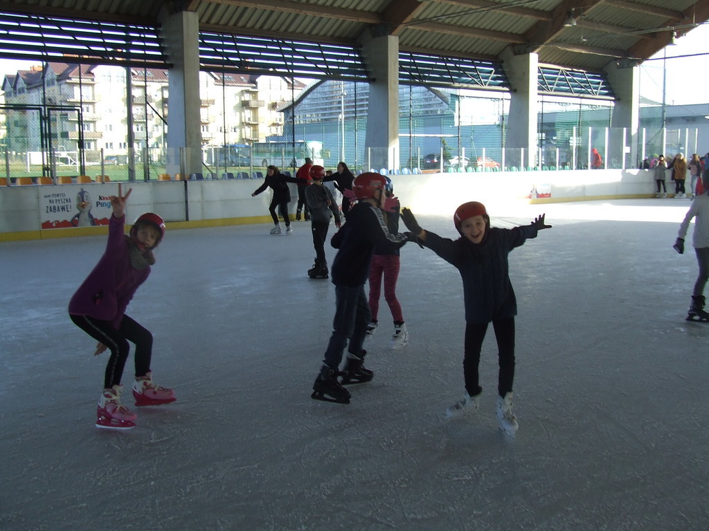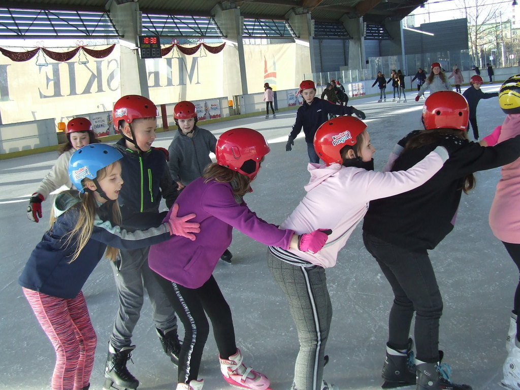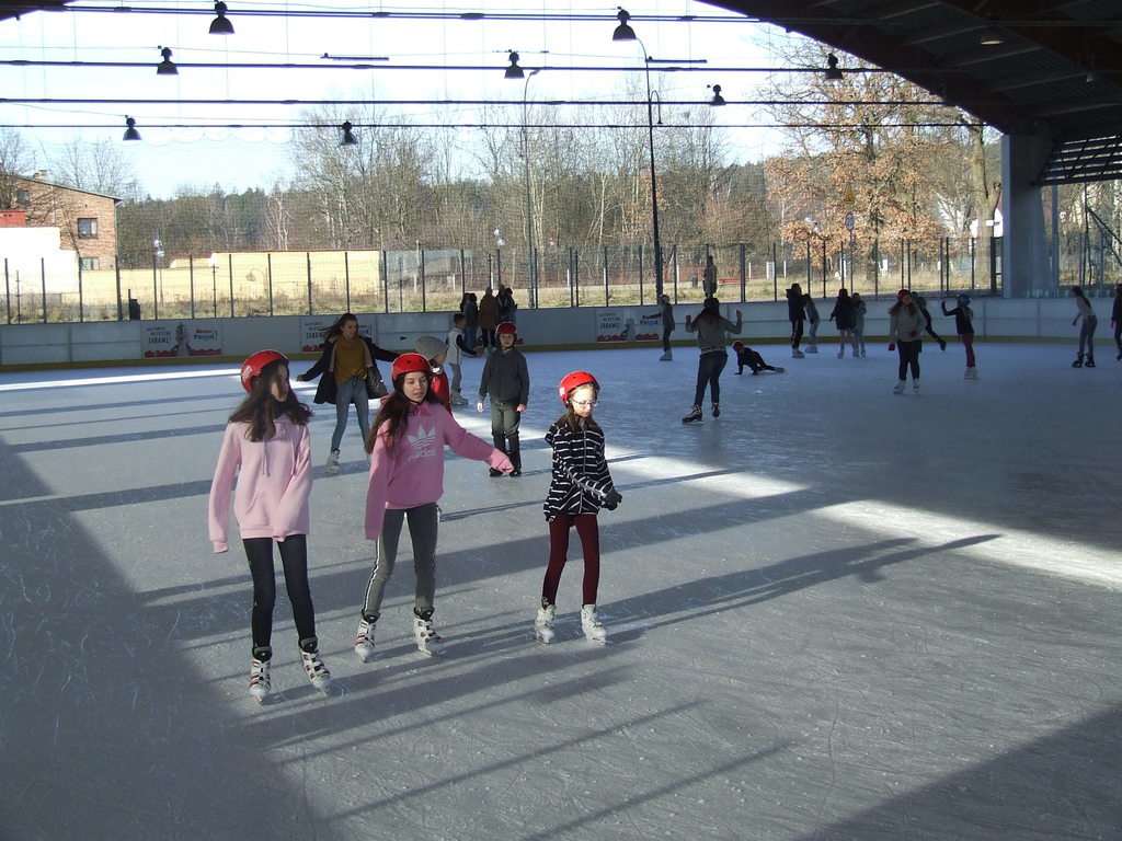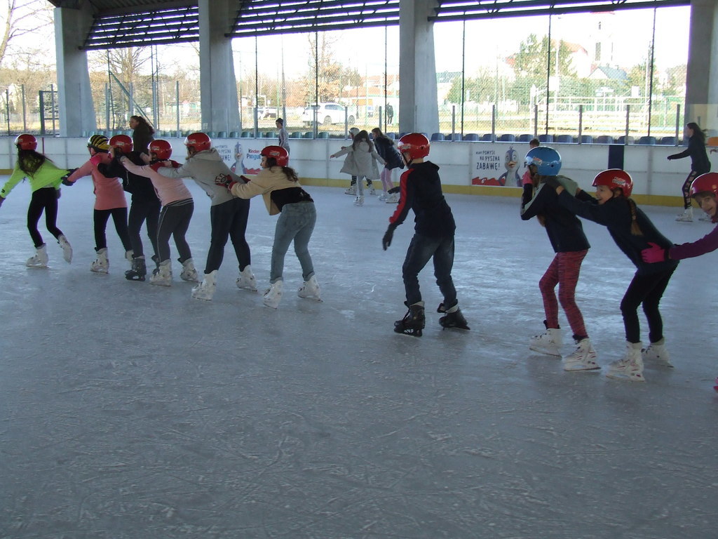W dniu 15 stycznia 2020 roku uczniowie naszej szkoły z klas: V,VI,VII, pod opieką mgr Barbary Piaseckiej i mgr Pawła Zegarka wyjechali na lodowisko w Skarżysku Kamiennej, w ramach realizacji programu nauczania wychowania fizycznego. Uczniowie naszej szkoły po raz pierwszy zobaczyli lodowisko z prawdziwego zdarzenia, na którym mogli spróbować własnych możliwości. Po fizycznym przygotowaniu – założenie łyżew i kasku – trzeba było zdobyć się na odwagę i jak najszybciej wejść na lód. Przy pomocy opiekunów cała grupa, w krótkim czasie, znalazła się na tafli lodowej. Wszyscy świetnie się bawili. Nawet upadki, które się zdarzały, były elementem dobrej zabawy.