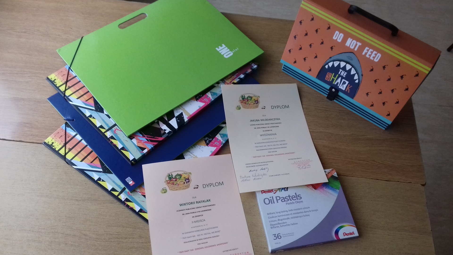 Cieszymy się, że uczniowie z naszej szkoły znaleźli się w gronie nagrodzonych i wyróżnionych w Gminnym Konkursie Plastycznym " Trzy razy nie - nie pij, nie pal, nie bierz" pod hasłem " Trzy razy tak - zdrowo, kolorowo, sportowo" organizowanego przez Publiczną Szkołę Podstawową w Starych Zawadach.