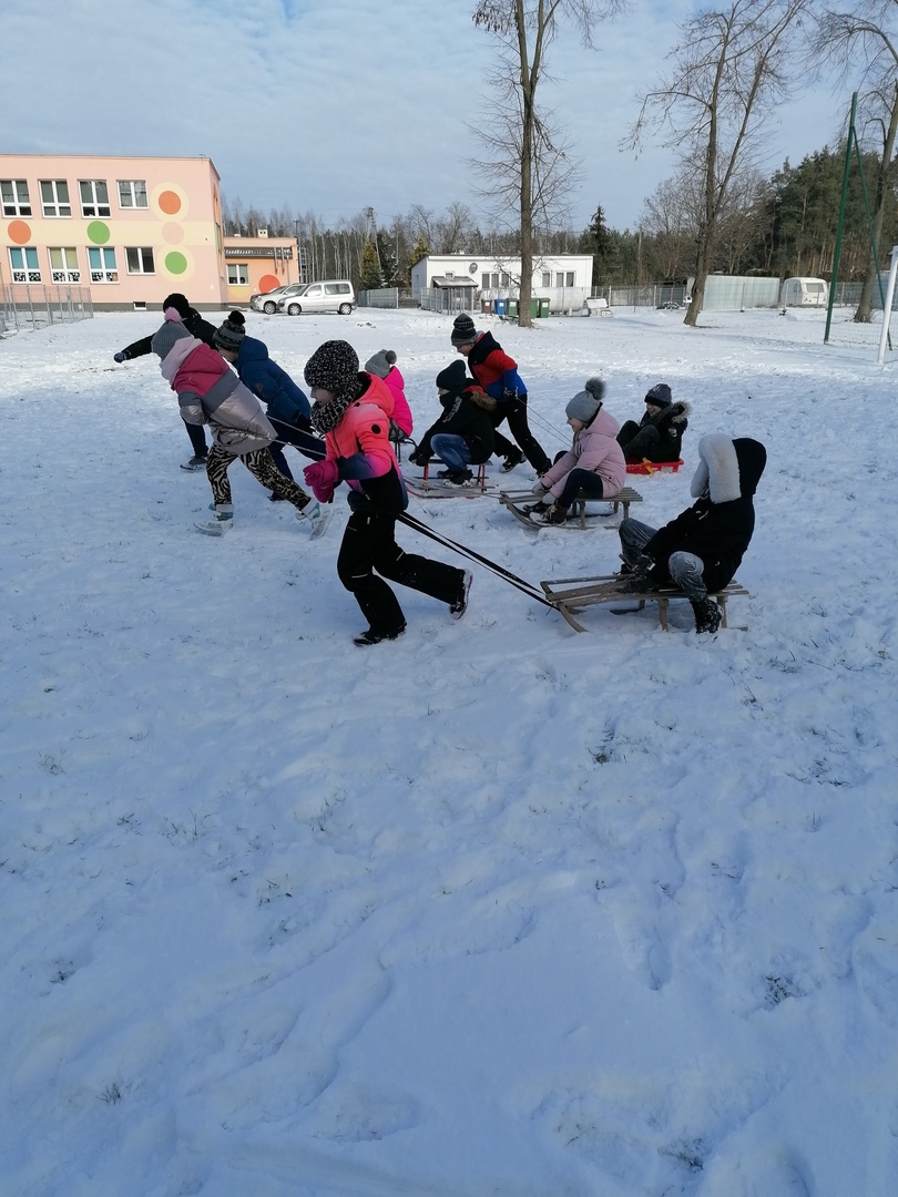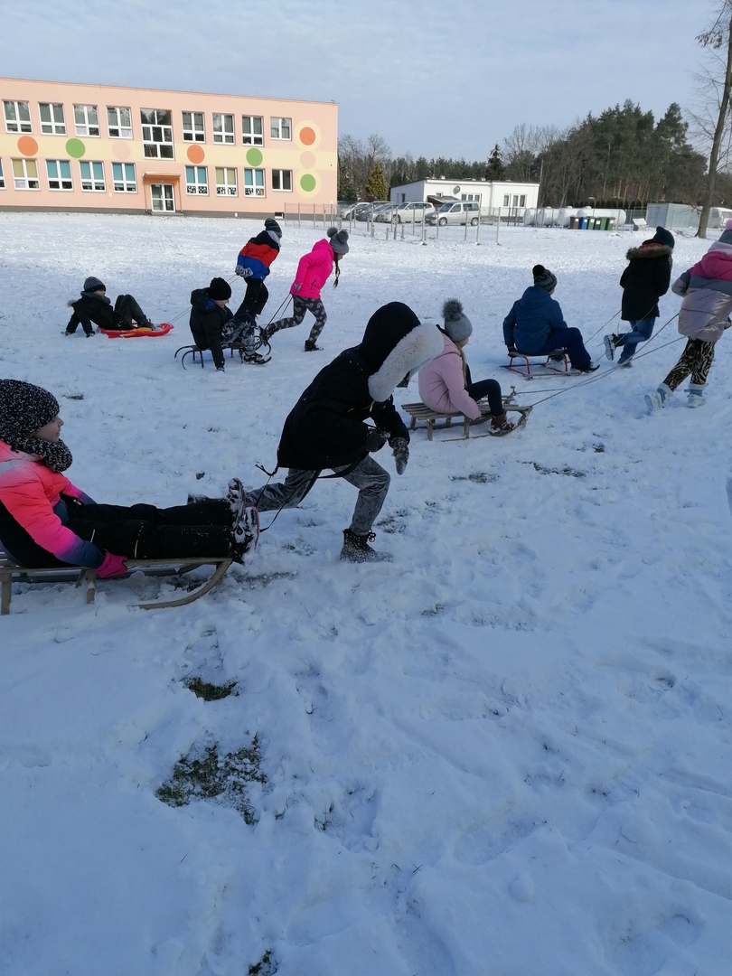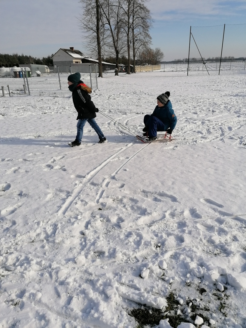 Za oknami zimowa aura i śnieg, który dzieci uwielbiają. To świetna okazja, aby dzieci zażyły ruchu na świeżym powietrzu i świetnie się bawiły. Uczniowie klasy III skorzystali z okazji. Na boisku szkolnym urządzili wyścigi saneczkowe, bitwę na śnieżki, robili aniołki na śniegu oraz lepili bałwany. Było ciekawie i zabawnie.