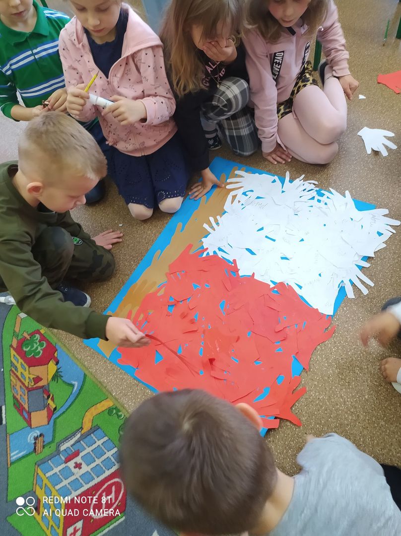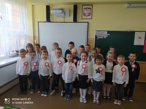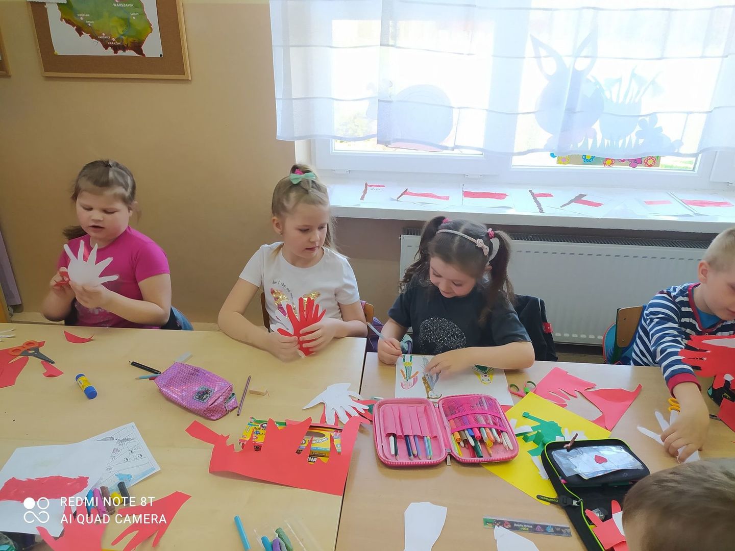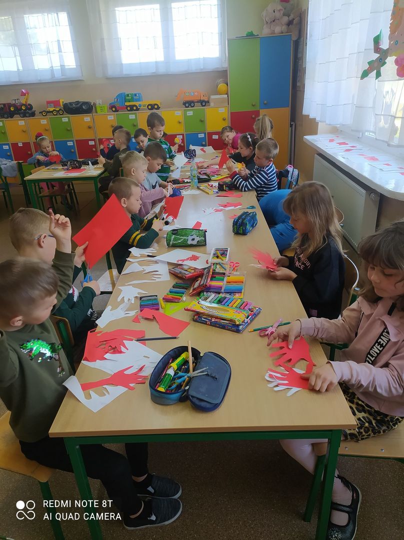 Uroczystym obchodom w każdym oddziale towarzyszyło dekorowanie sal i korytarzy szkoły barwami narodowymi. Dzieci na zajęciach plastycznych wykonały piękne kotyliony i flagi narodowe, które następnie z dumą nosiły.