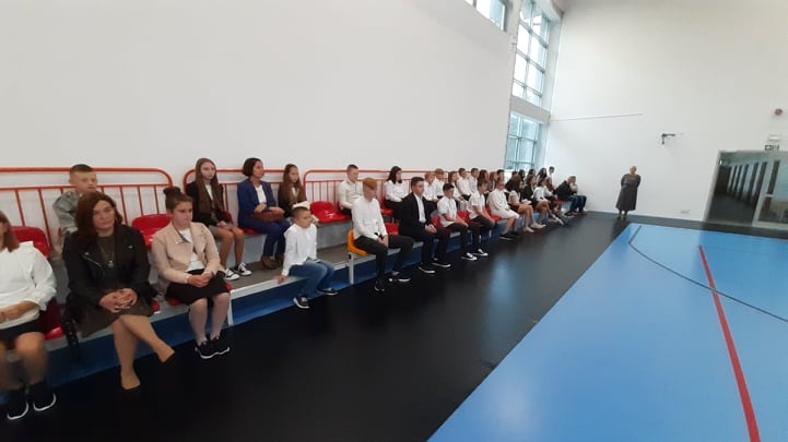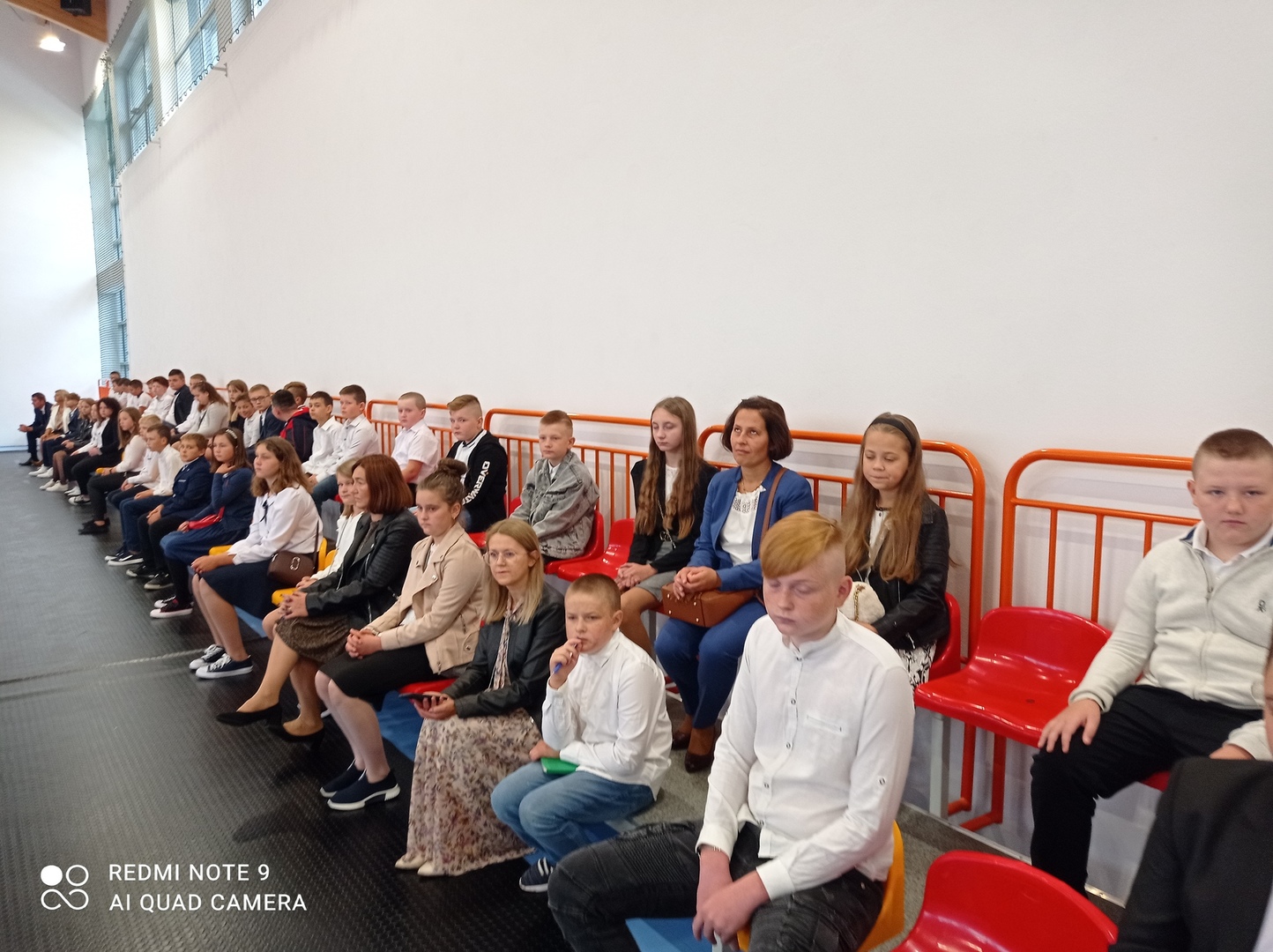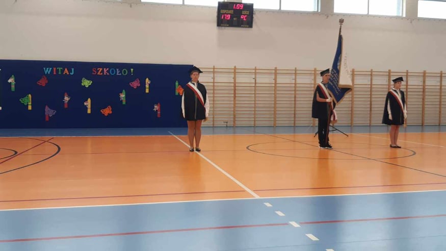 W reżimie sanitarnym rozpoczęliśmy rok szkolny 2021/2022. Ze względu na bezpieczeństwo uczniów, zgodnie z wytycznymi MEiN, GIS, procedurami obowiązującymi w szkole uroczystość rozpoczęcia nowego roku szkolnego podzielona została na trzy, odrębne dla każdego etapu edukacyjnego i oddziałów przedszkolnych, części. Zgodnie z tradycją Publicznej Szkoły Podstawowej im. Jana Pawła II w części oficjalnej, po wprowadzeniu sztandaru szkoły i odśpiewaniu hymnu państwowego, głos zabrała pani dyrektor Małgorzata Sobień. W swoim przemówieniu nawiązała do obowiązujących zasad bezpieczeństwa, wyraziła radość, że rozpoczynamy nowy rok szkolny w trybie stacjonarnym, życzyła uczniom i pracownikom szkoły wielu sukcesów. W części poświęconej obchodom 82 rocznicy napaści III Rzeszy na Polskę uczniowie obejrzeli prezentację multimedialną "A więc wojna..." i wysłuchali krótkiego wystąpienia nauczyciela historii. Następnie wychowawcy klas spotkali się ze swoimi wychowankami w salach lekcyjnych.