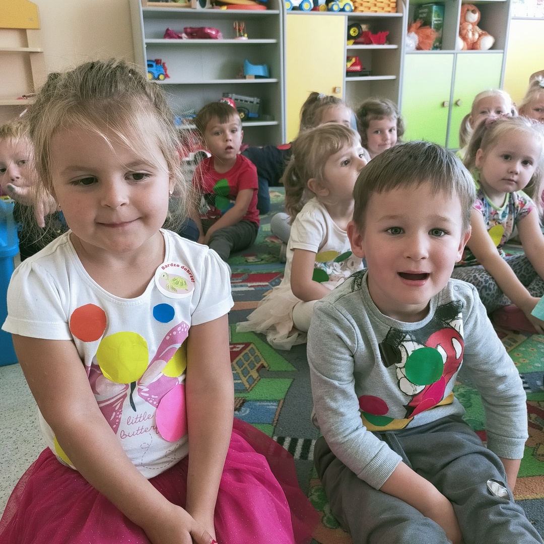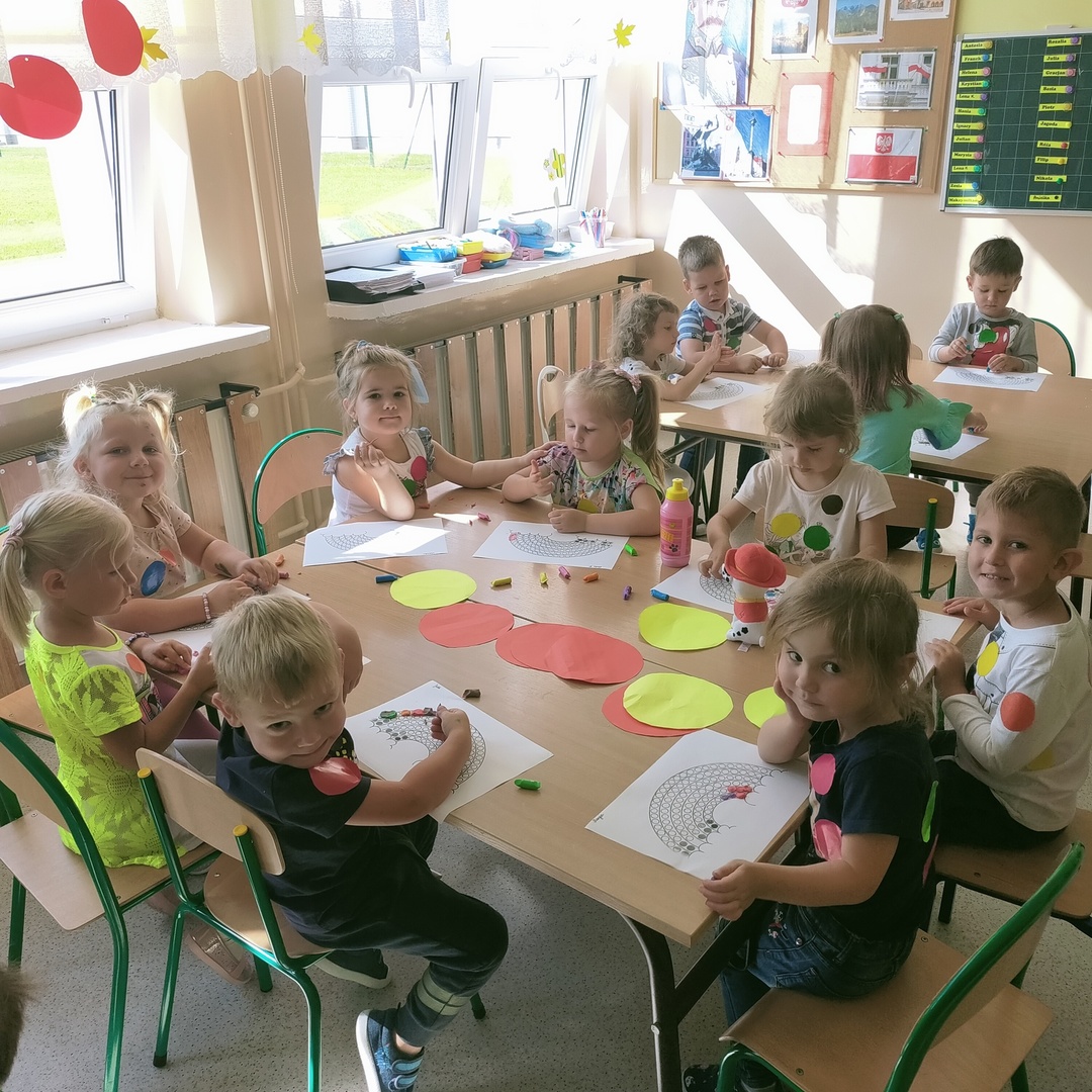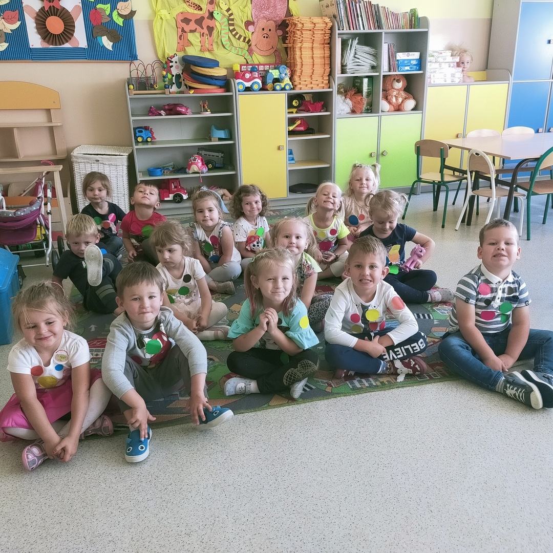 W dniu 15 września 2021 roku w naszych oddziałach przedszkolnych świętowaliśmy Międzynarodowy Dzień Kropki. Jest to święto kreatywności, którego inspiracją stała się książka Petera H. Reynoldsa pt."Kropka". Książka opowiada o małej dziewczynce Vashti, która nie chciała rysować, bo nie wierzyła w swoje umiejętności. Zachęcona przez nauczycielkę namalowała na kartce kropkę, po czym podpisała swój obrazek i pospiesznie opuściła salę. Następnego dnia Vashti ze zdumieniem zauważyła, że jej praca jest oprawiona w piękną ramkę i wisi na honorowym miejscu tuż nad biurkiem nauczycielki. Poczuła się bardzo szczęśliwa , że jej praca się spodobała i wisi w miejscu, w którym wszyscy mogą ją podziwiać. Pomyślała, że potrafi namalować jeszcze piękniejsze kropki i z ochotą zabrała się do pracy.
